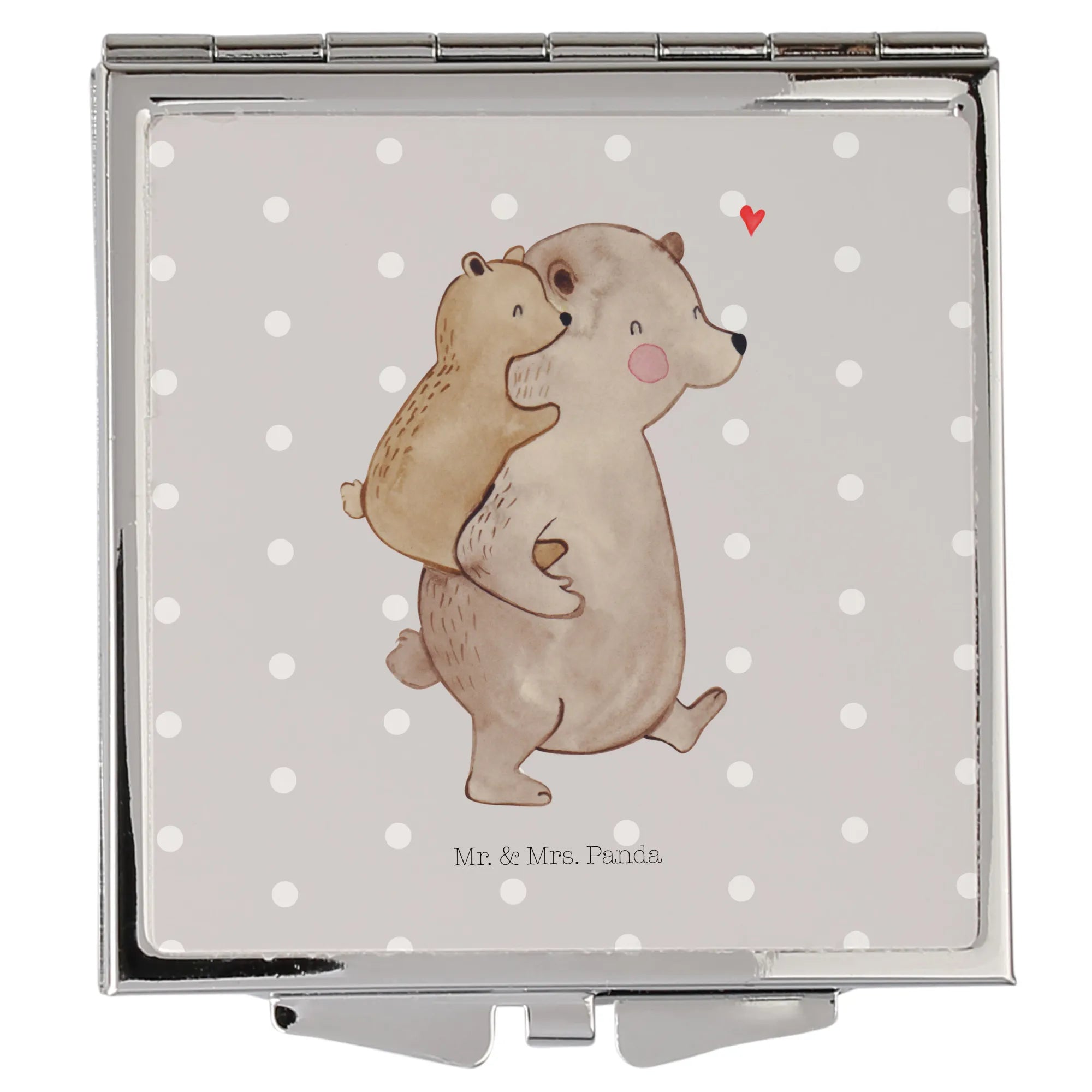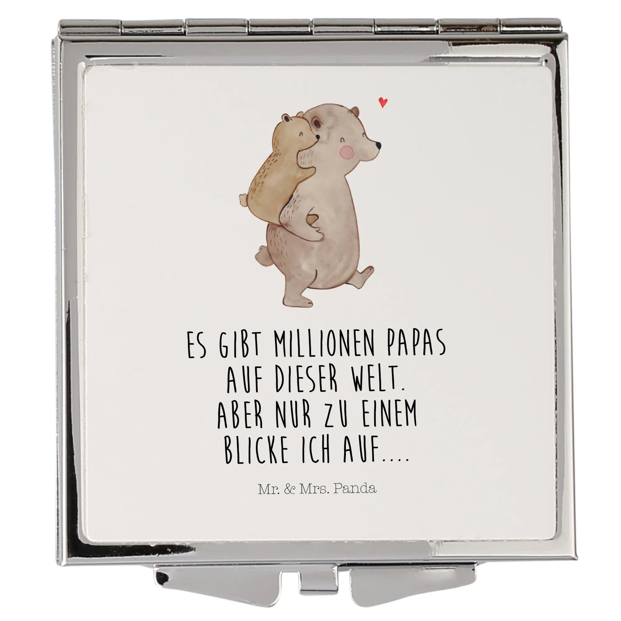Handtaschenspiegel quadratisch Papa Bär - mit Spruch - Weiß