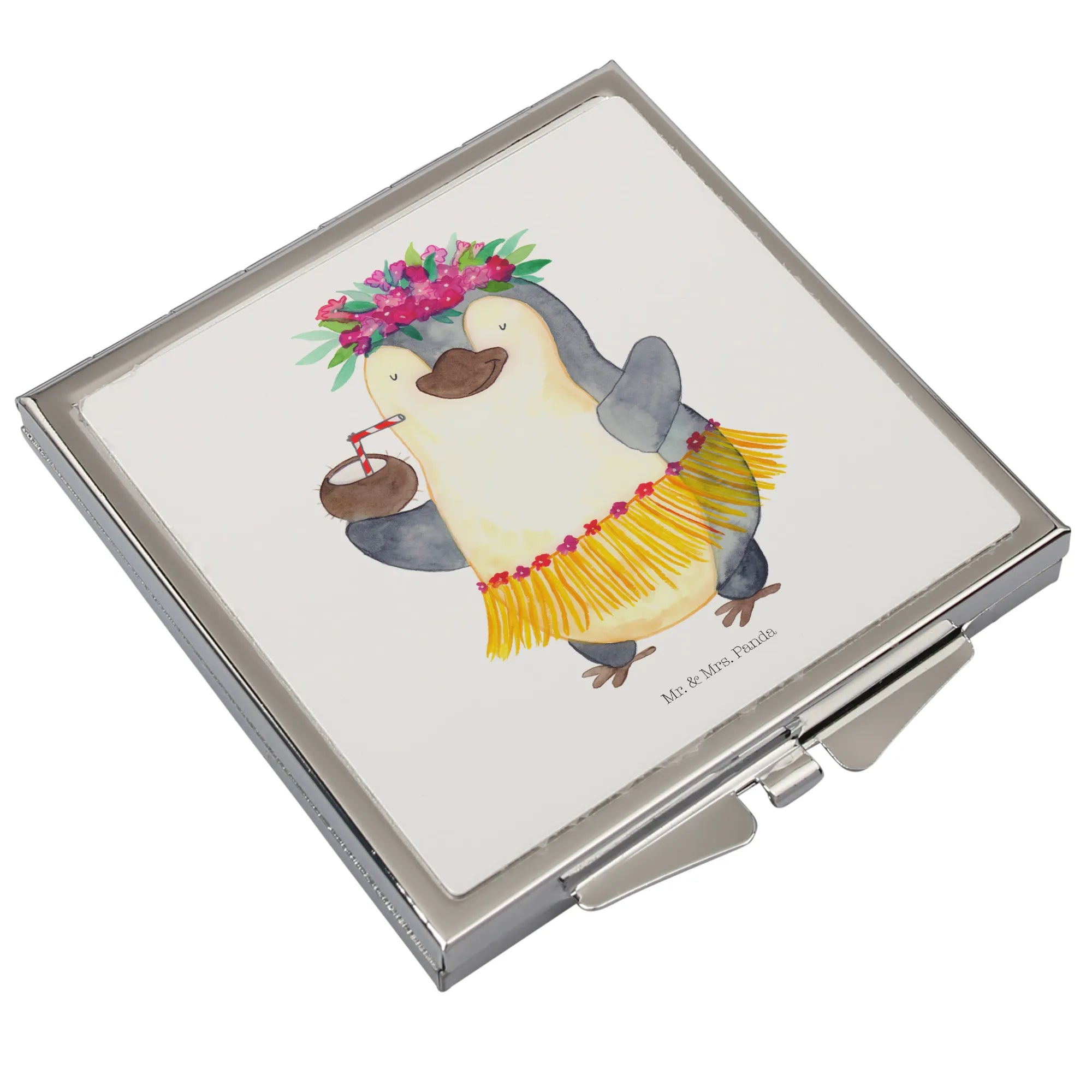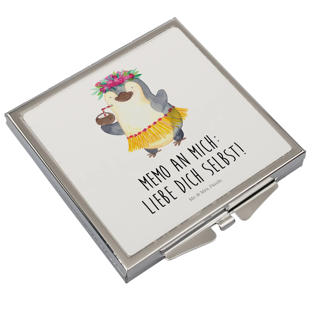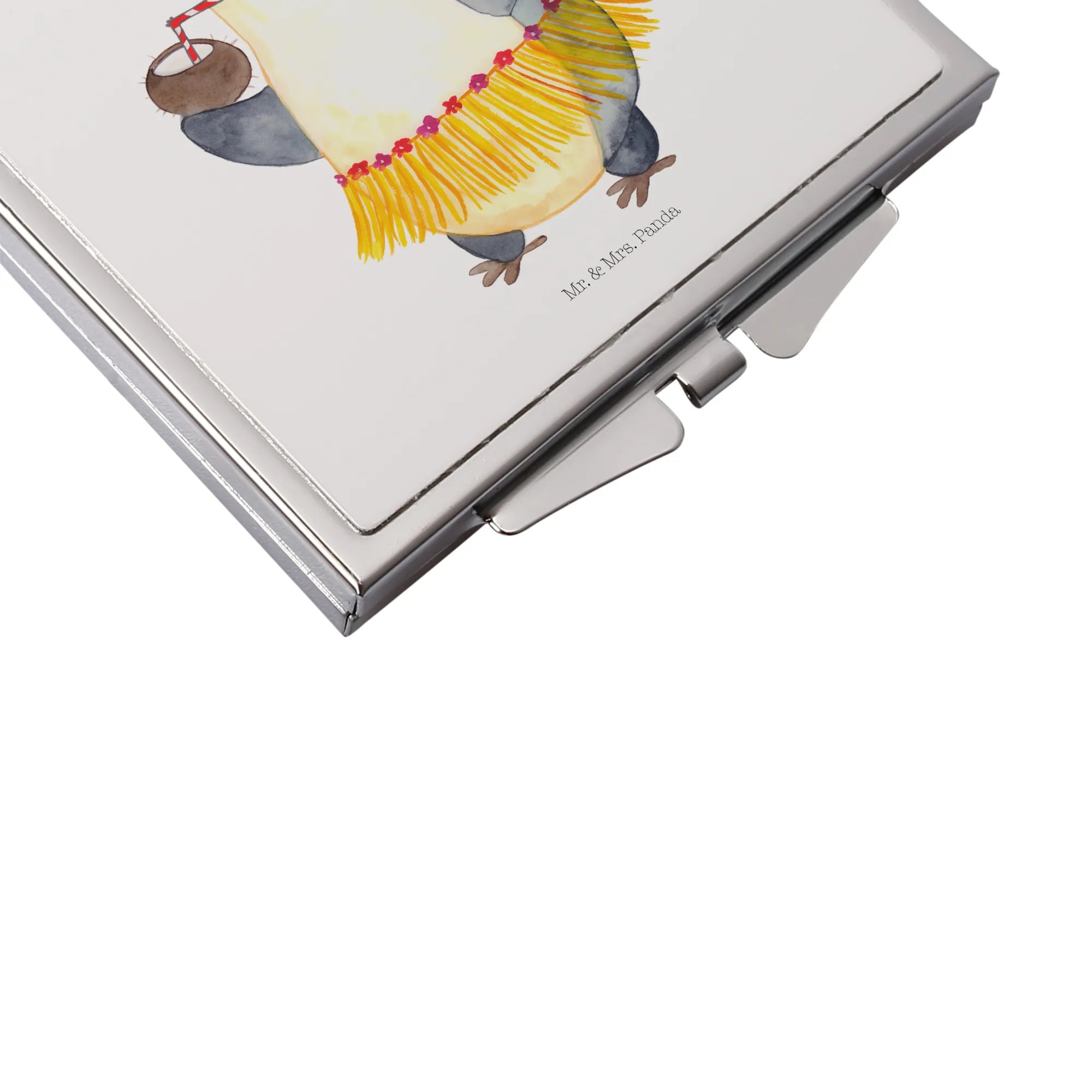 Handtaschenspiegel quadratisch Pinguin Kokosnuss - mit Spruch - Weiß