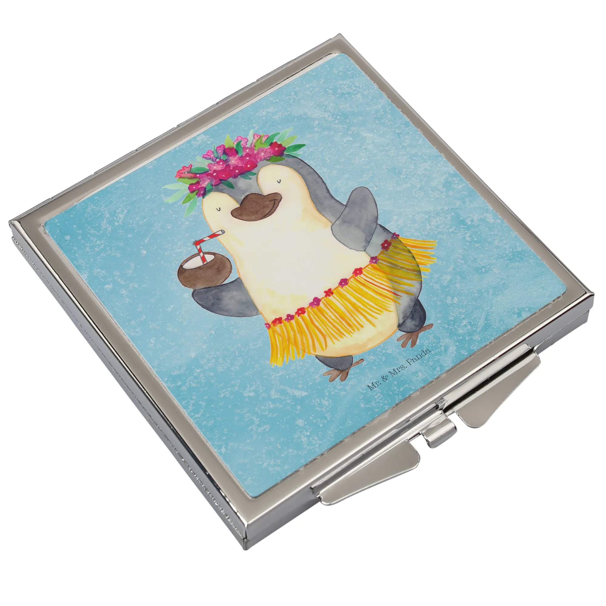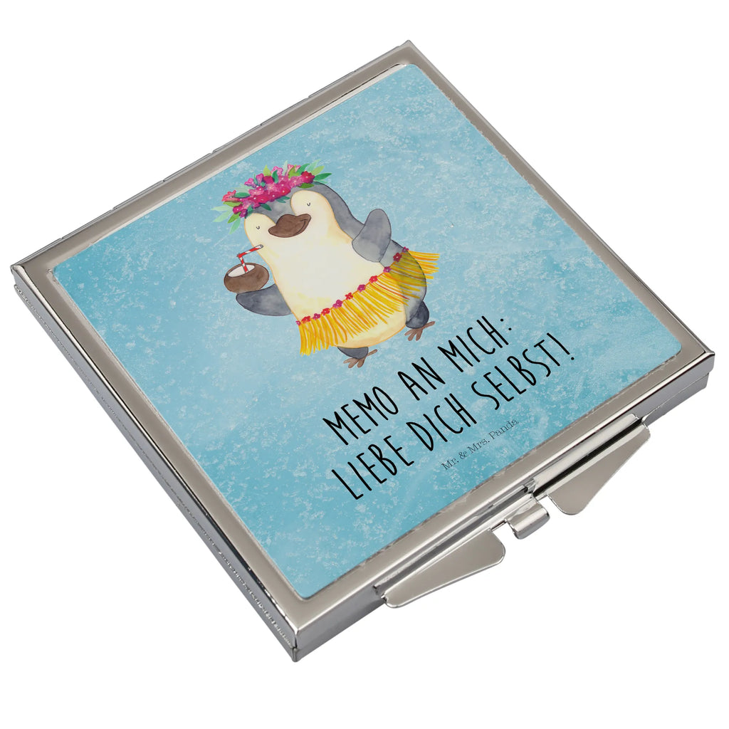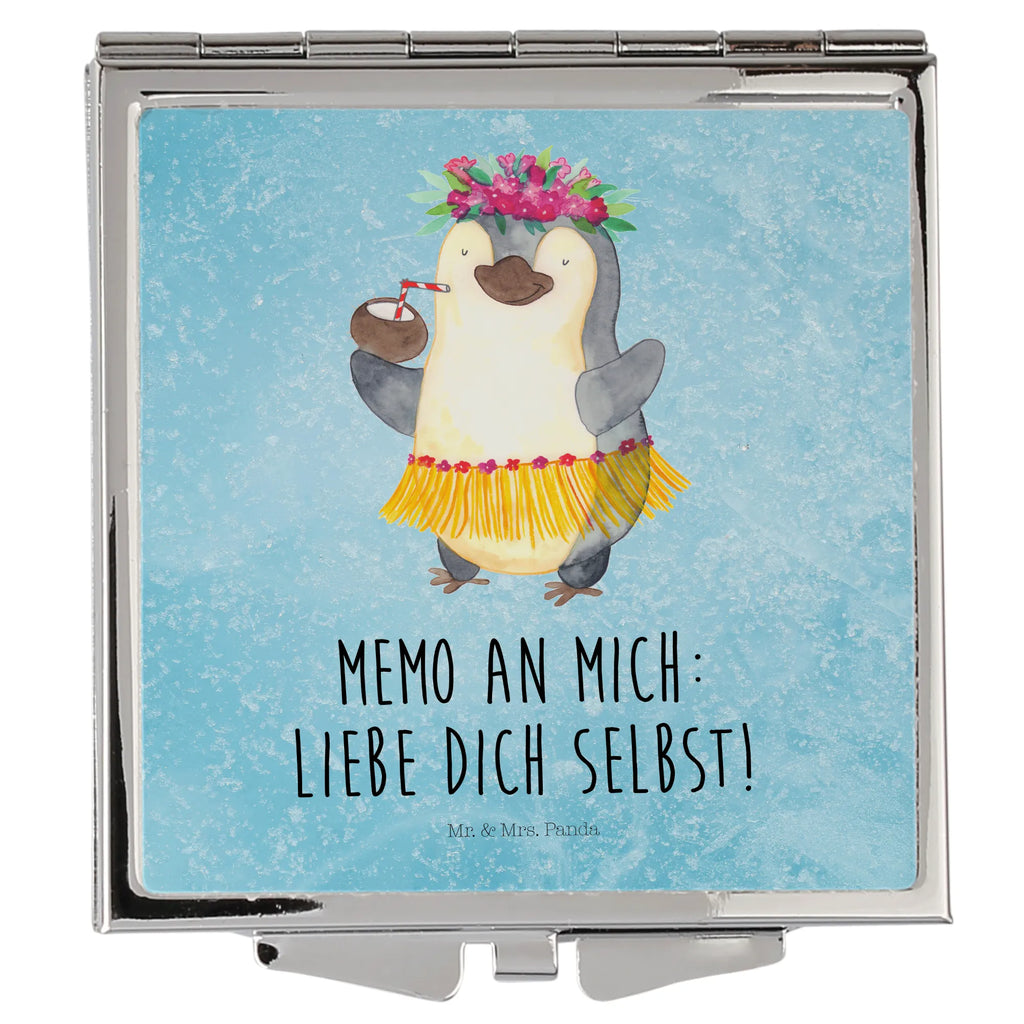 Handtaschenspiegel quadratisch Pinguin Kokosnuss - mit Spruch - Weiß