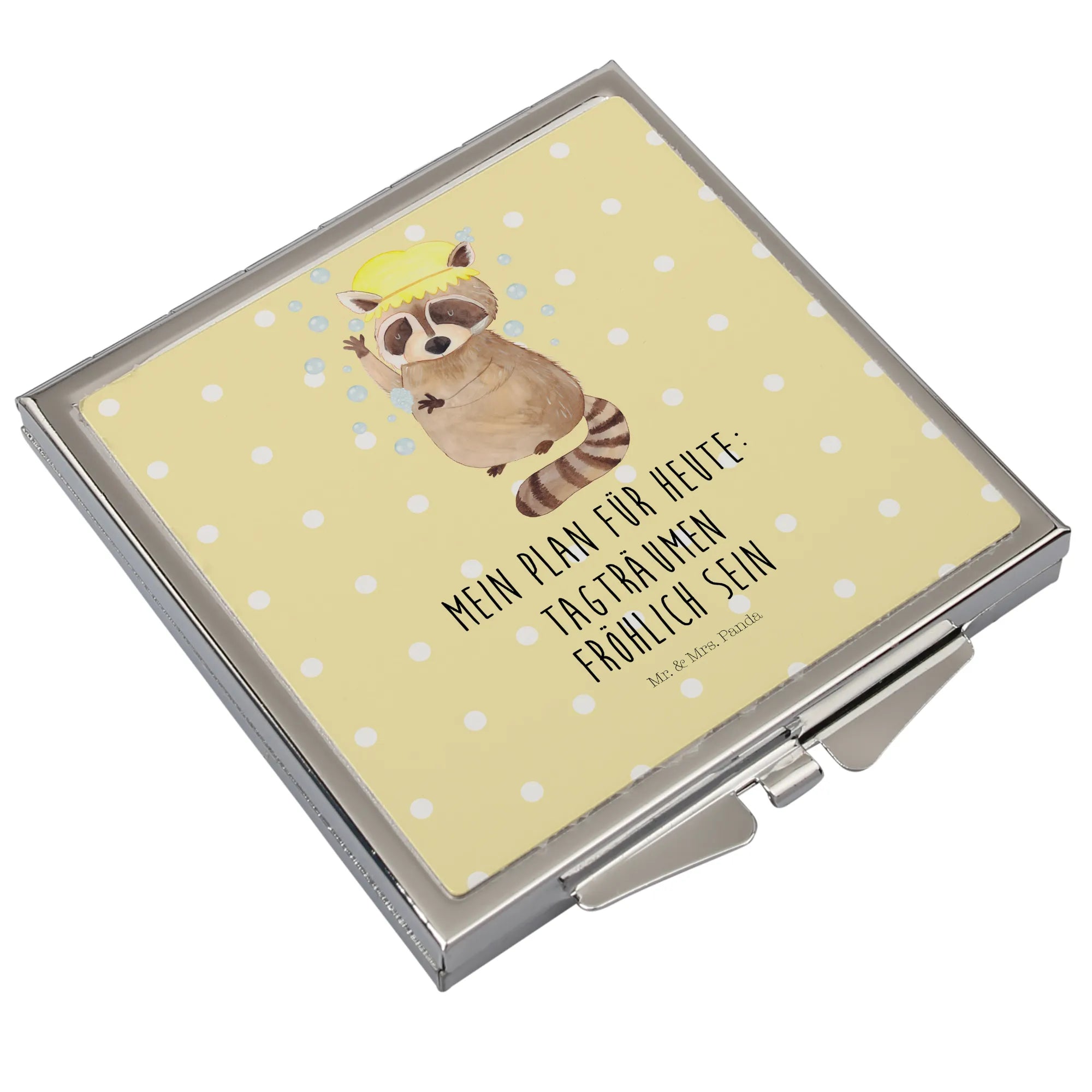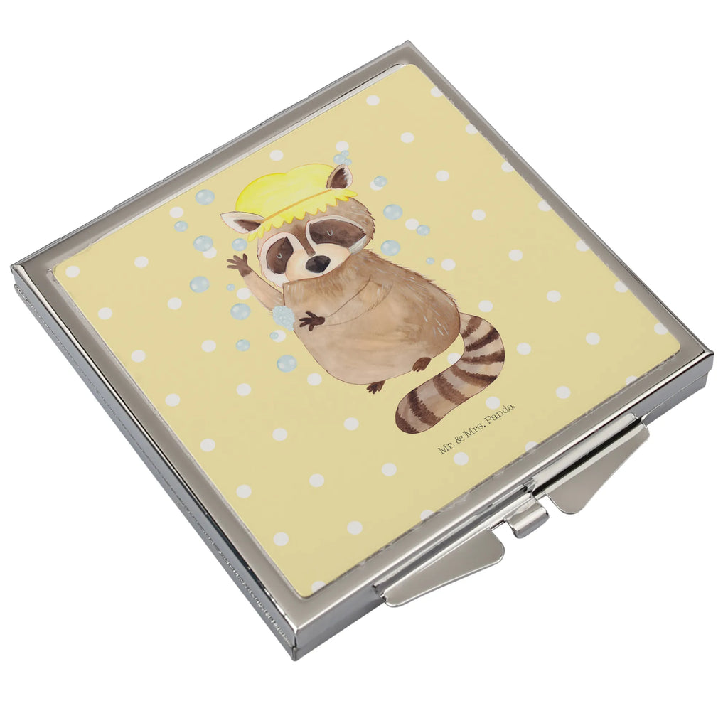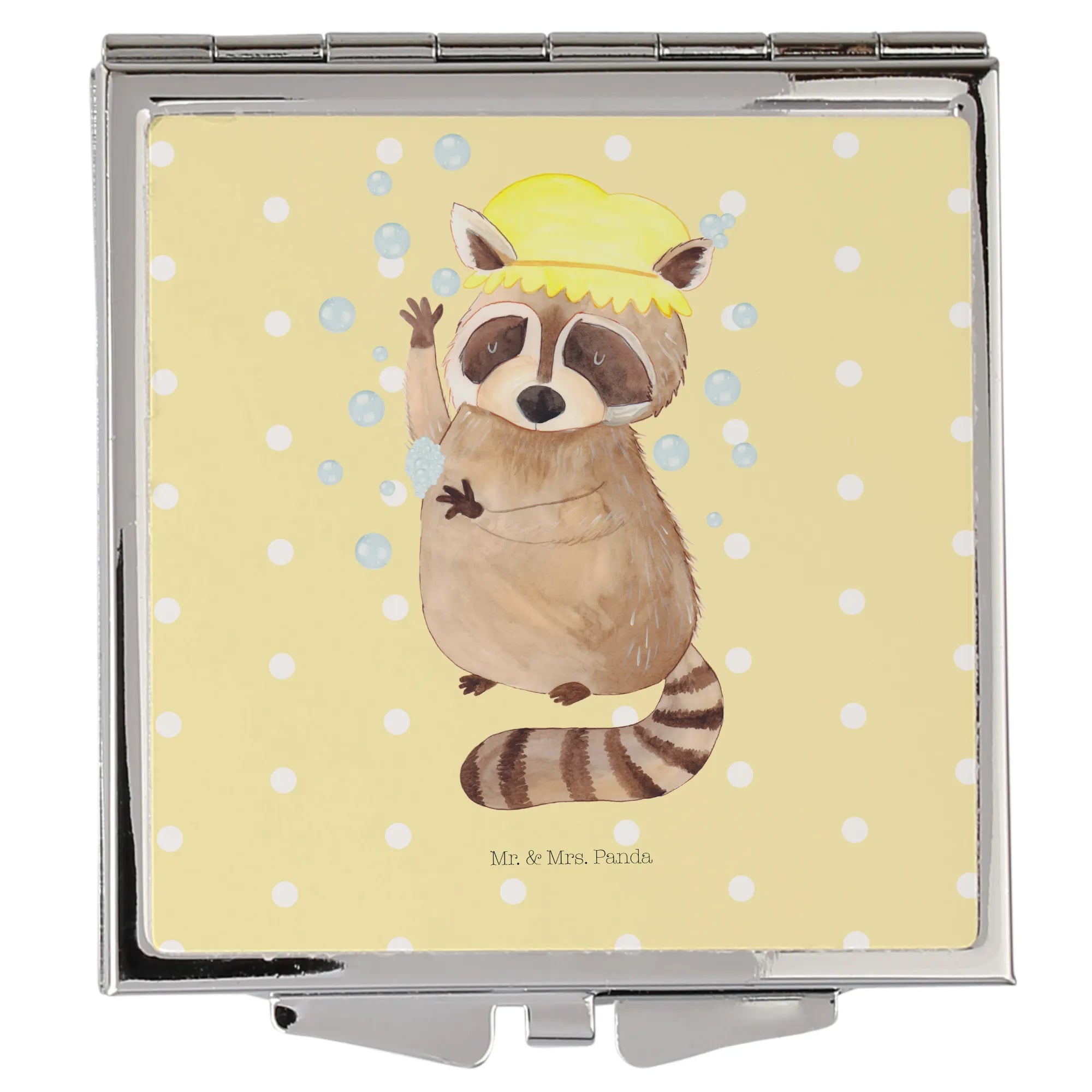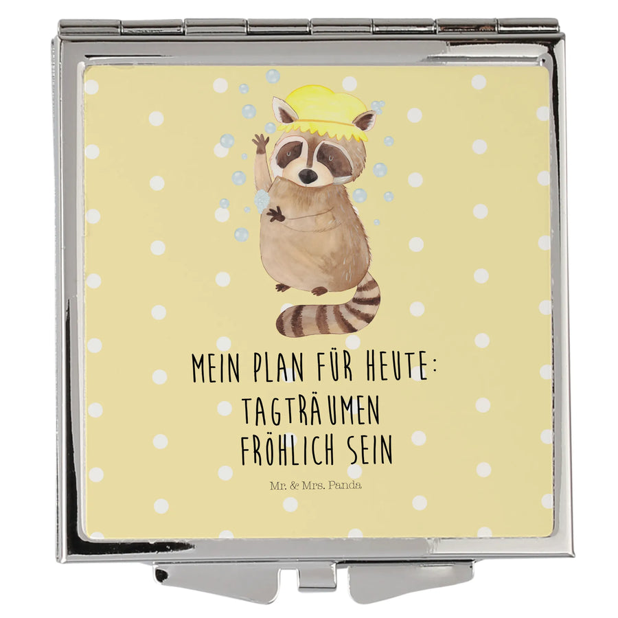 Handtaschenspiegel quadratisch Waschbär - mit Spruch - Gelb Pastell
