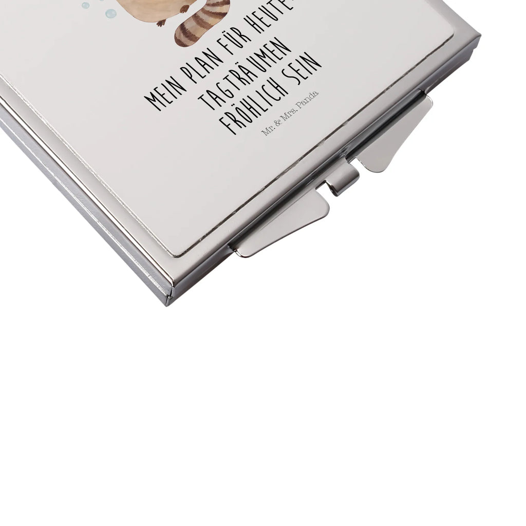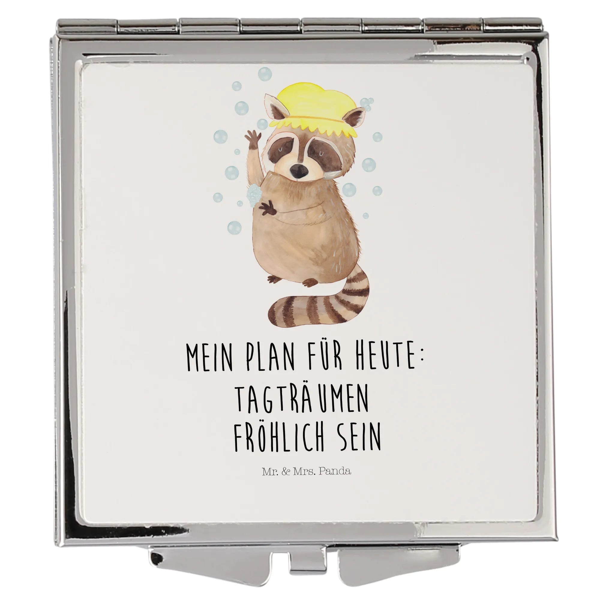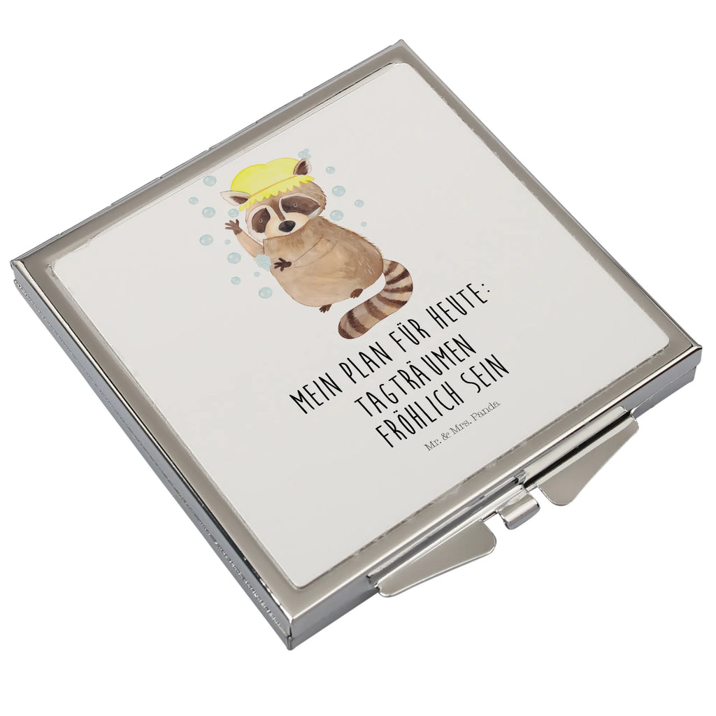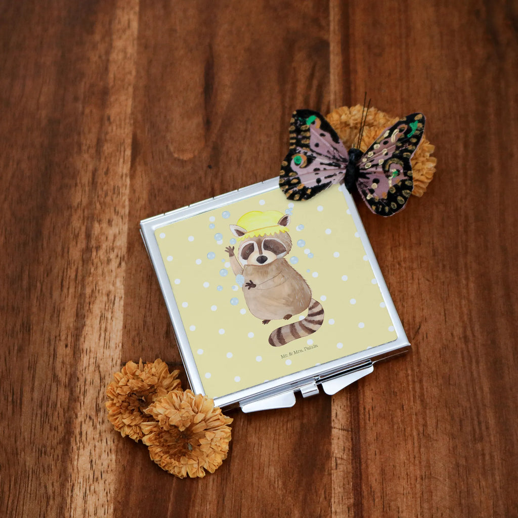 Handtaschenspiegel quadratisch Waschbär - mit Spruch - Gelb Pastell