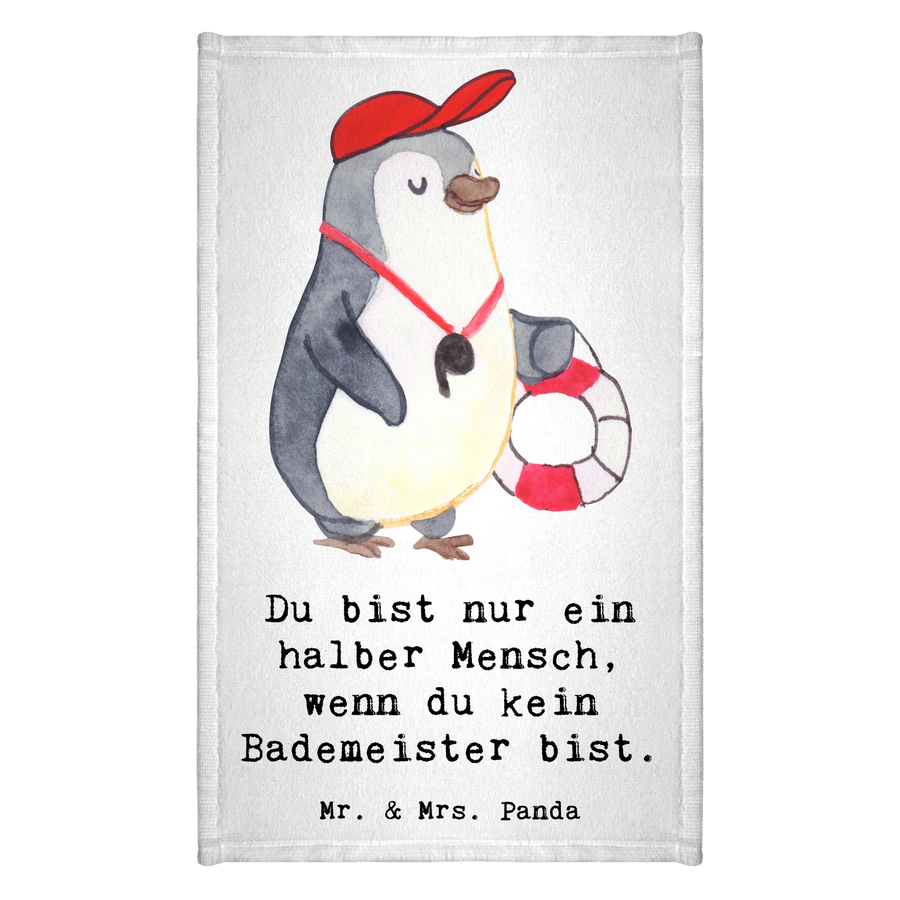 Der süße Pinguin auf dem Handtuch hält stolz seinen Rettungsring und trägt seine Trillerpfeife um den Hals - er zeigt, dass Bademeister nicht nur aufzupassen wissen, sondern auch die Sonne und die fröhlichen Menschen um sich herum genießen. Mit dem Spruch "Du bist nur ein halber Mensch, wenn du kein Bademeister bist" setzt unser Handtuch ein lustiges und gleichzeitig anerkennendes Zeichen.