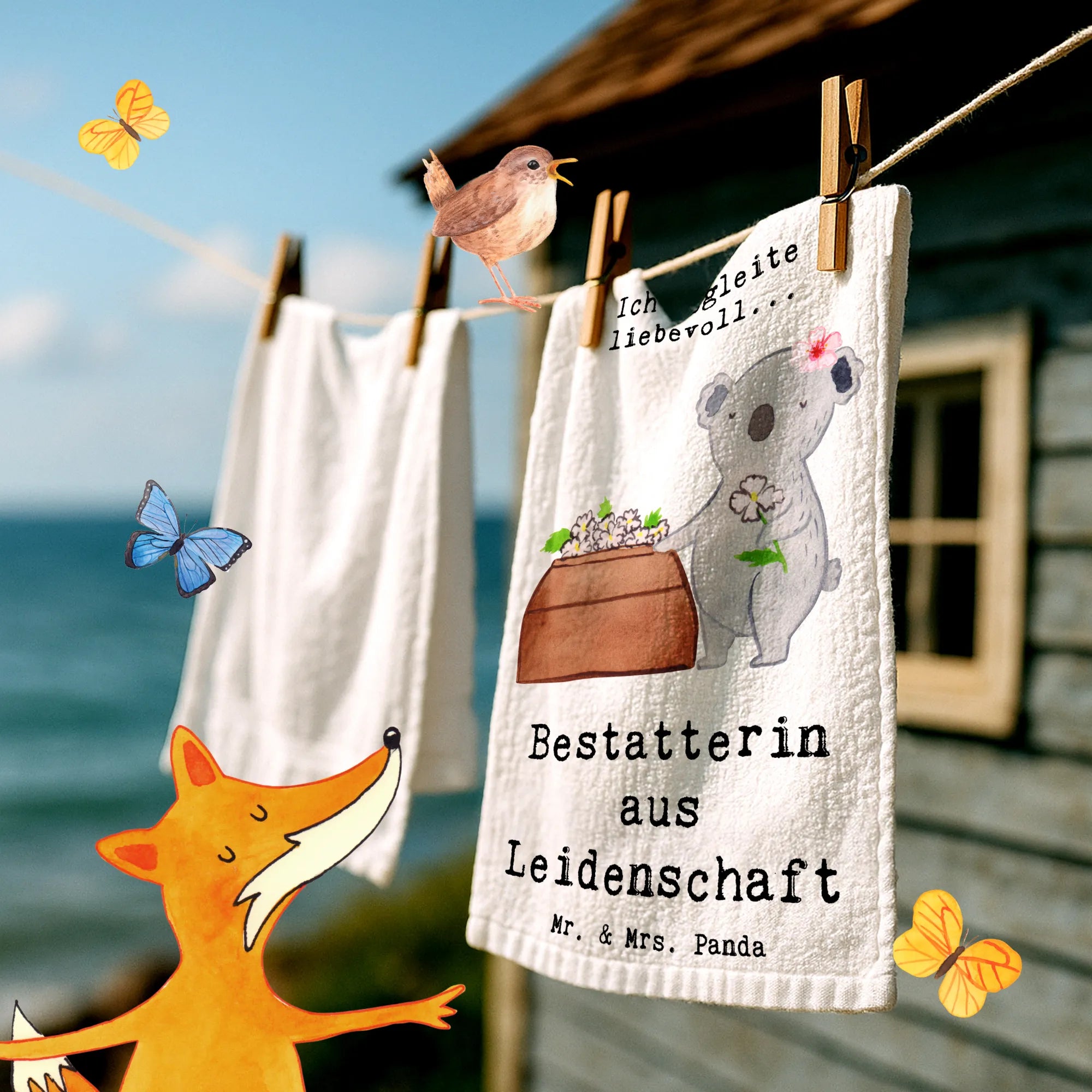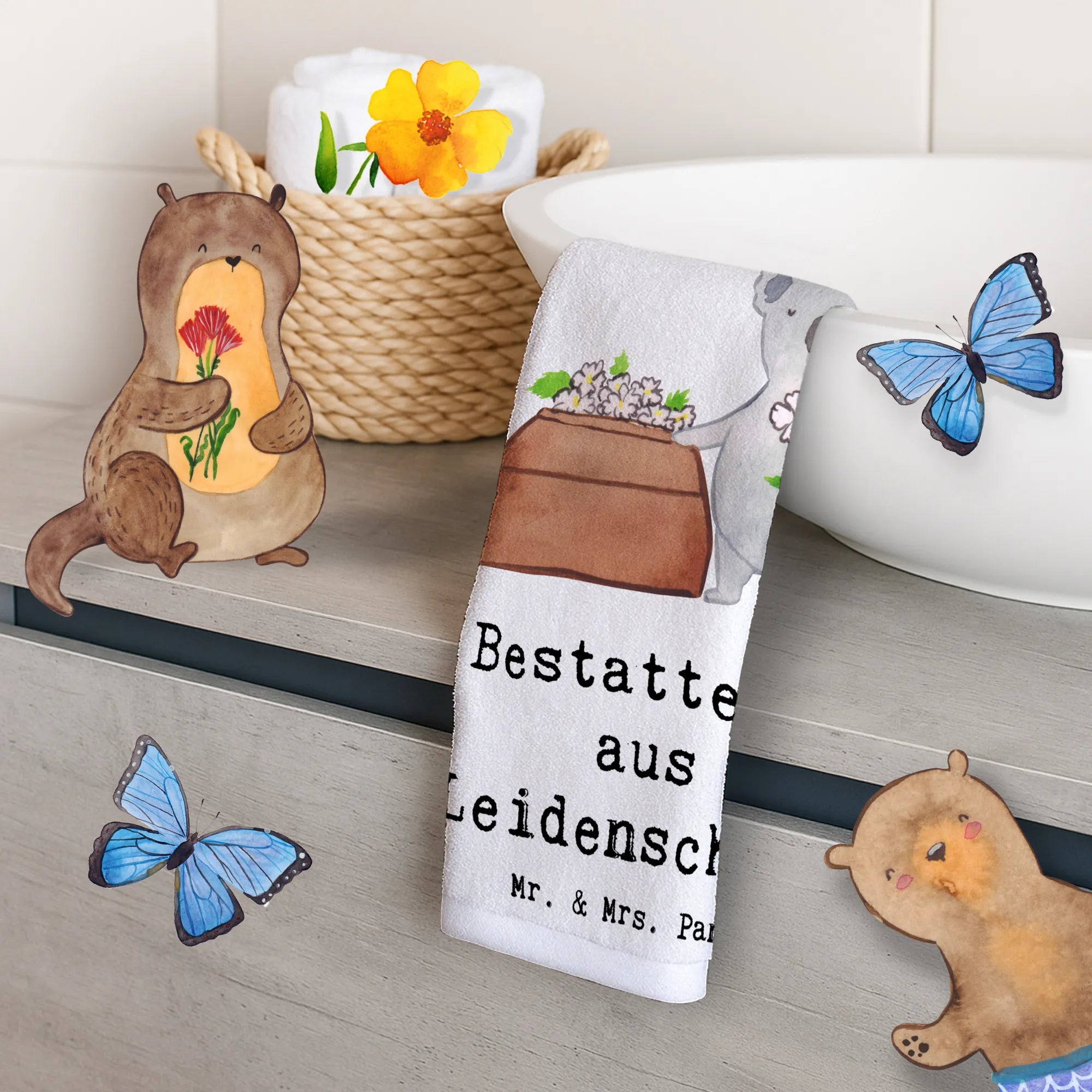Das Gästehandtuch 'Bestatterin aus Leidenschaft' von Mr. & Mrs. Panda ist das perfekte Geschenk für alle, die im Trauerbereich arbeiten oder ihren Beruf mit Begeisterung ausüben. Mit einem liebenswerten Motiv, das einen Koala zeigt, der ehrfürchtig vor einem mit Blumen geschmückten Sack steht, bringt dieses Handtuch eine charmante Note in jedes Badezimmer. Es ist nicht nur ein praktischer Begleiter, sondern auch eine wunderbare Möglichkeit, Wertschätzung zu zeigen – sei es für eine Kollegin, die in den Ruhestand geht, oder für einen Mitarbeiter, der eine berufliche Veränderung anstrebt.