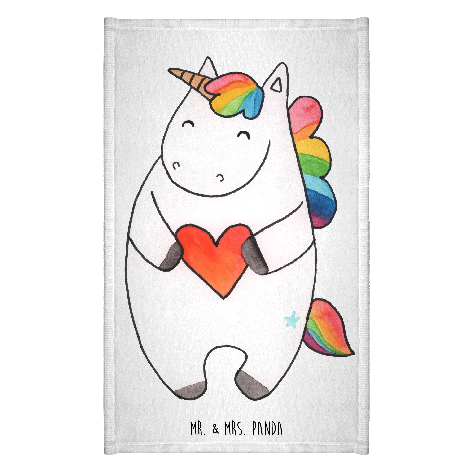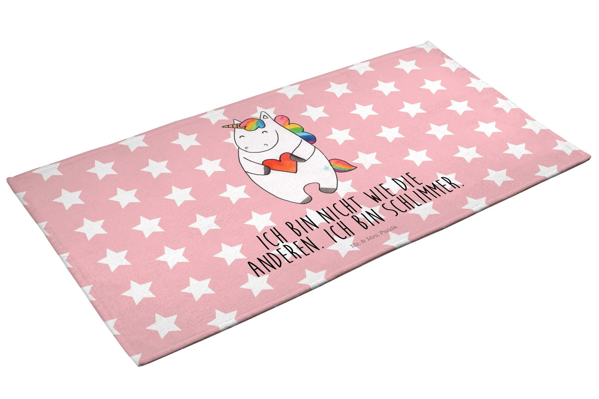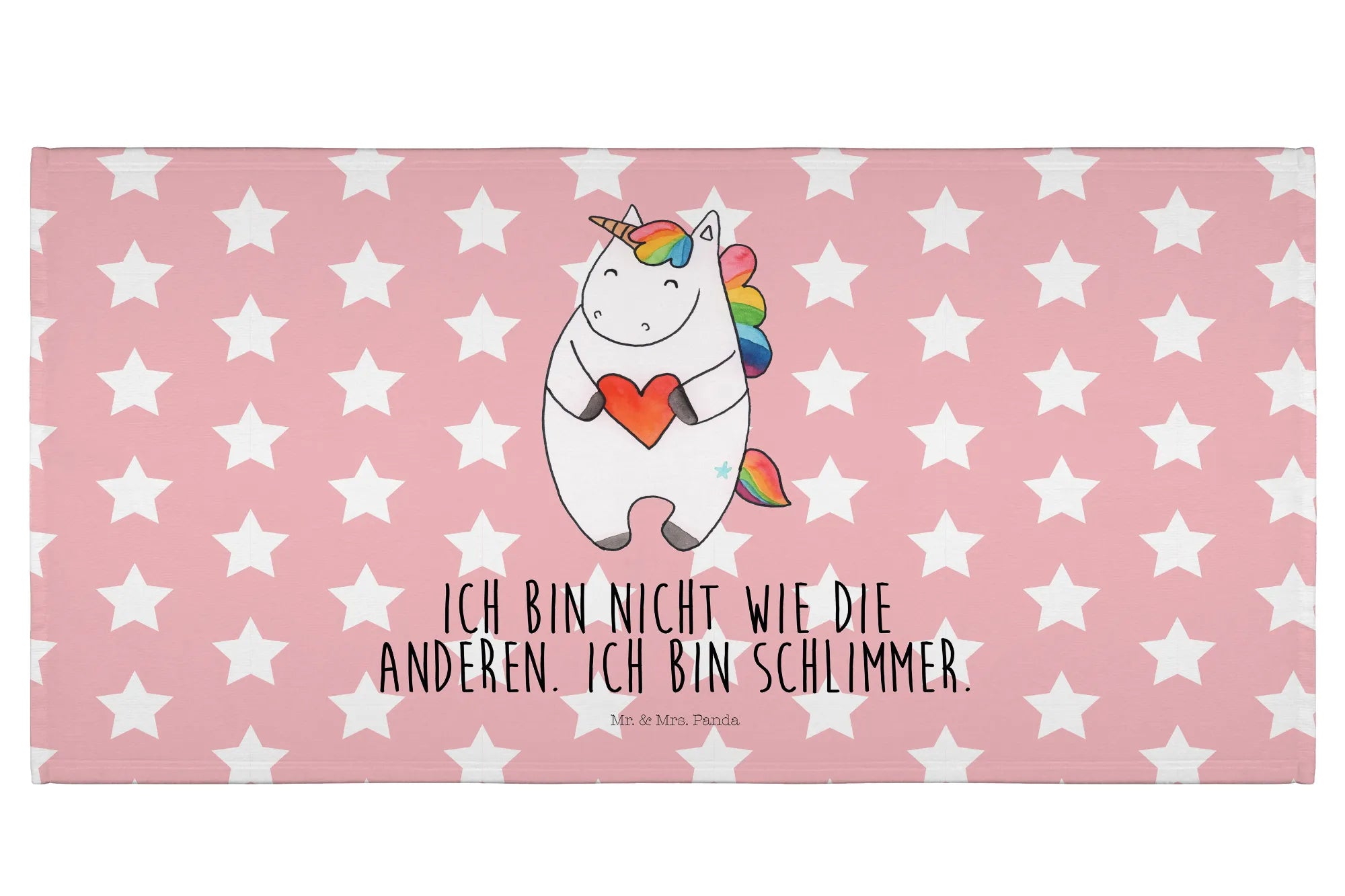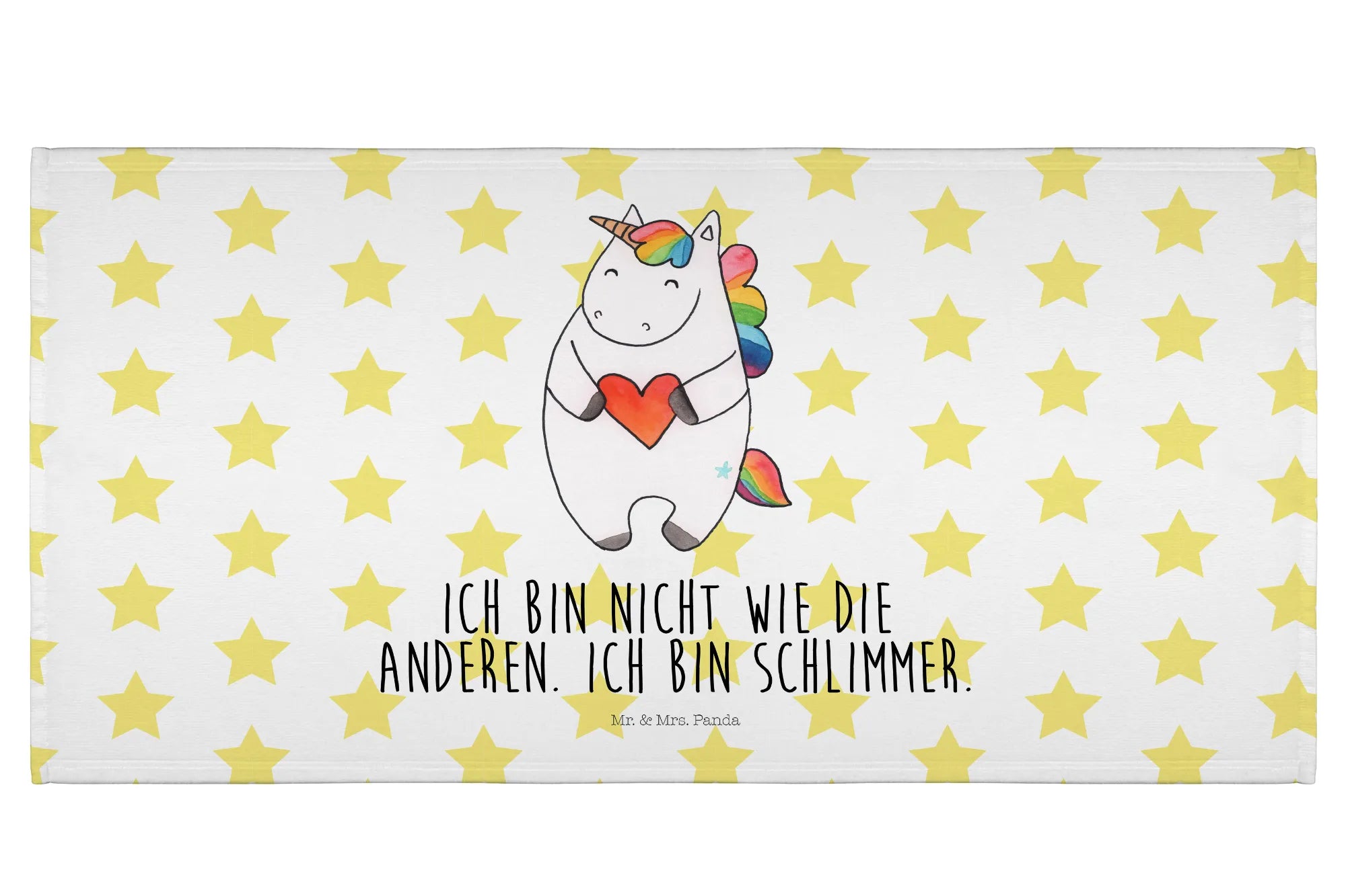 Das 50 x 100 Handtuch mit dem witzigen Einhorn Herz Motiv von Mr. & Mrs. Panda ist das perfekte Geschenk für zahlreiche Anlässe und Personen in Deinem Umfeld.