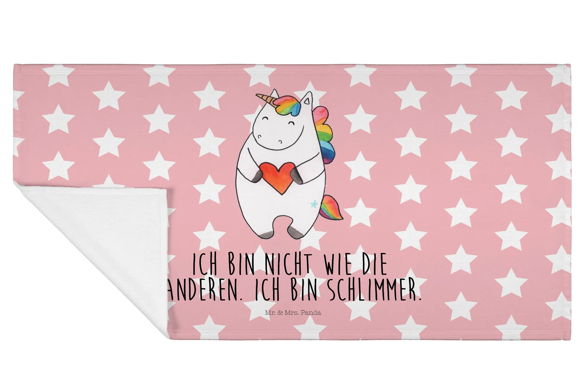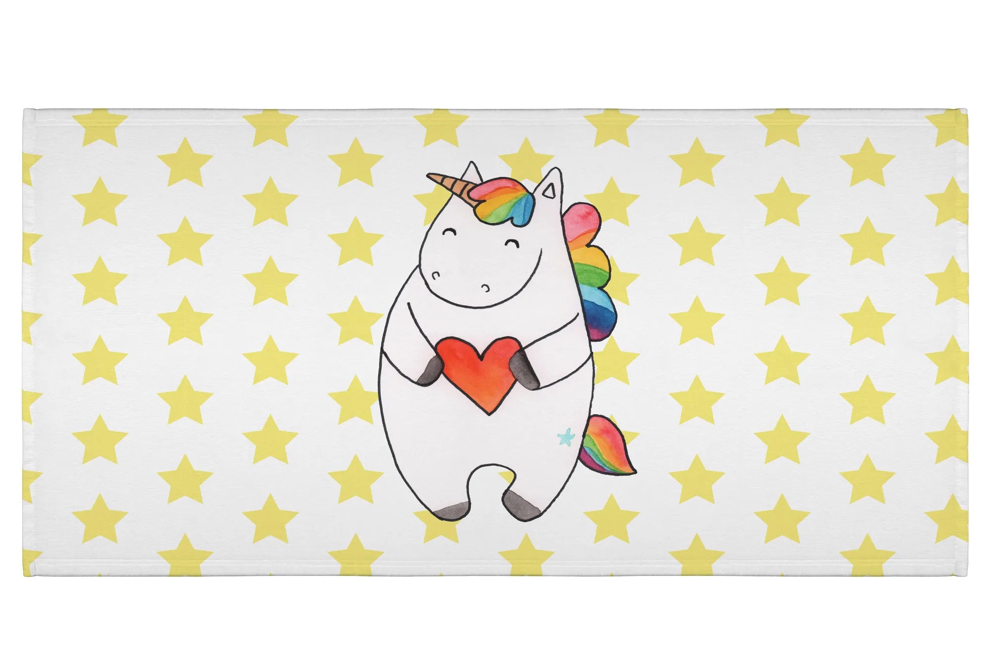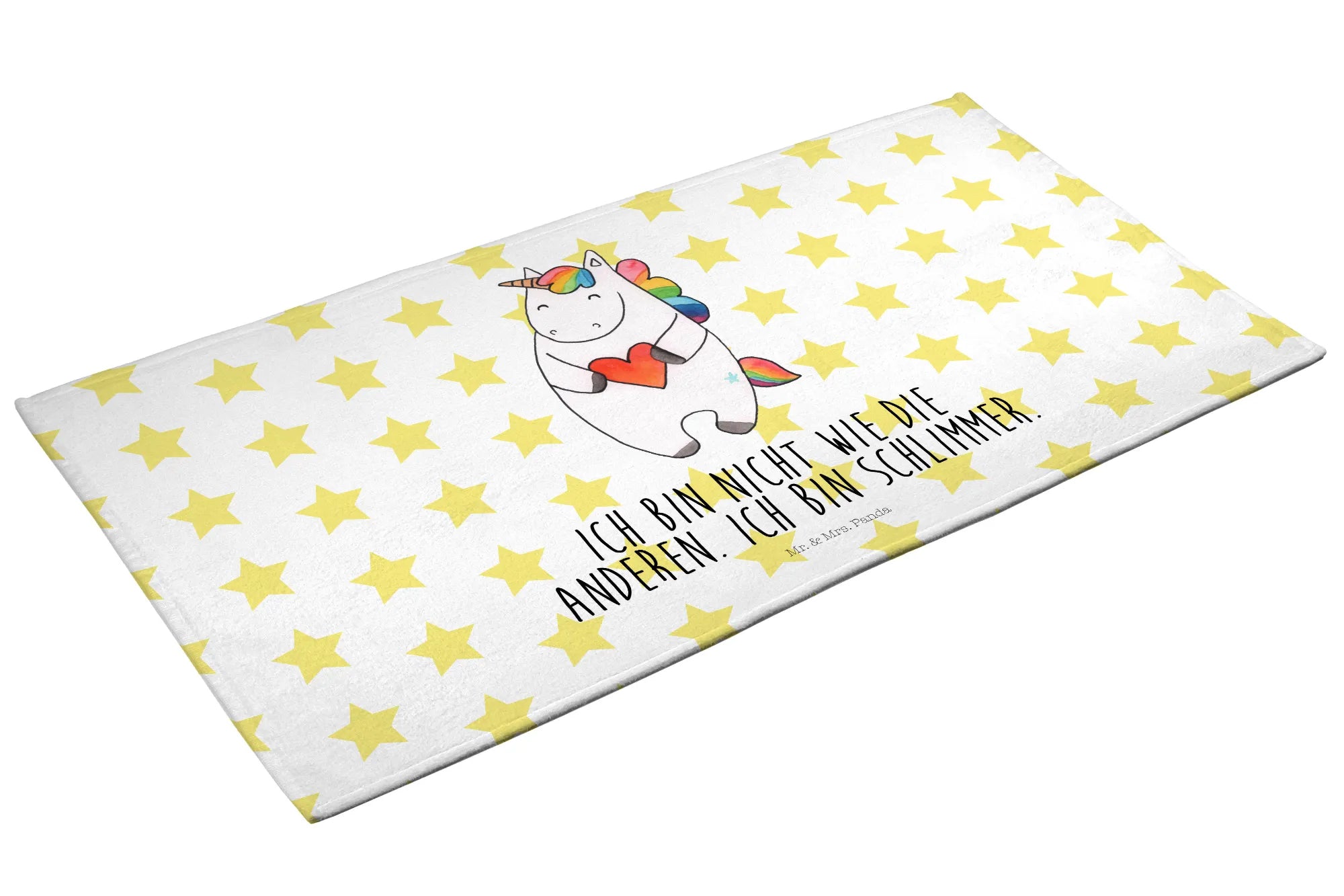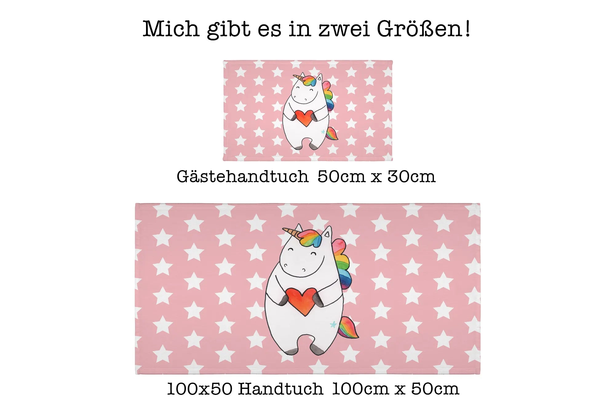 Das 50 x 100 Handtuch mit dem witzigen Einhorn Herz Motiv von Mr. & Mrs. Panda ist das perfekte Geschenk für zahlreiche Anlässe und Personen in Deinem Umfeld.