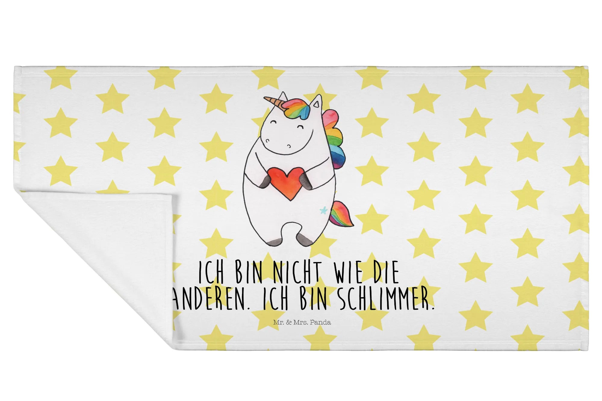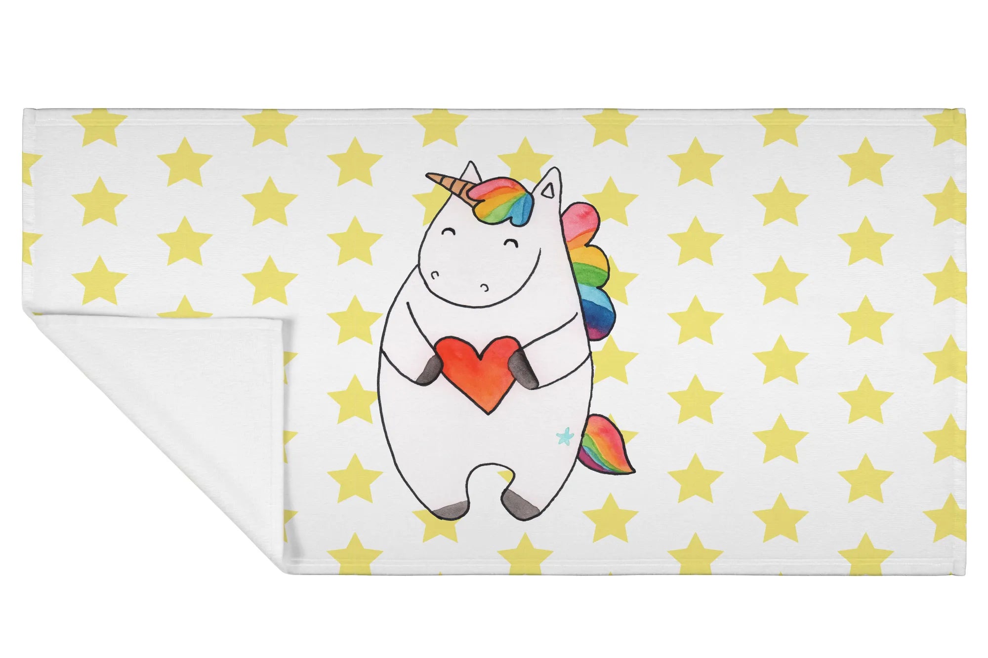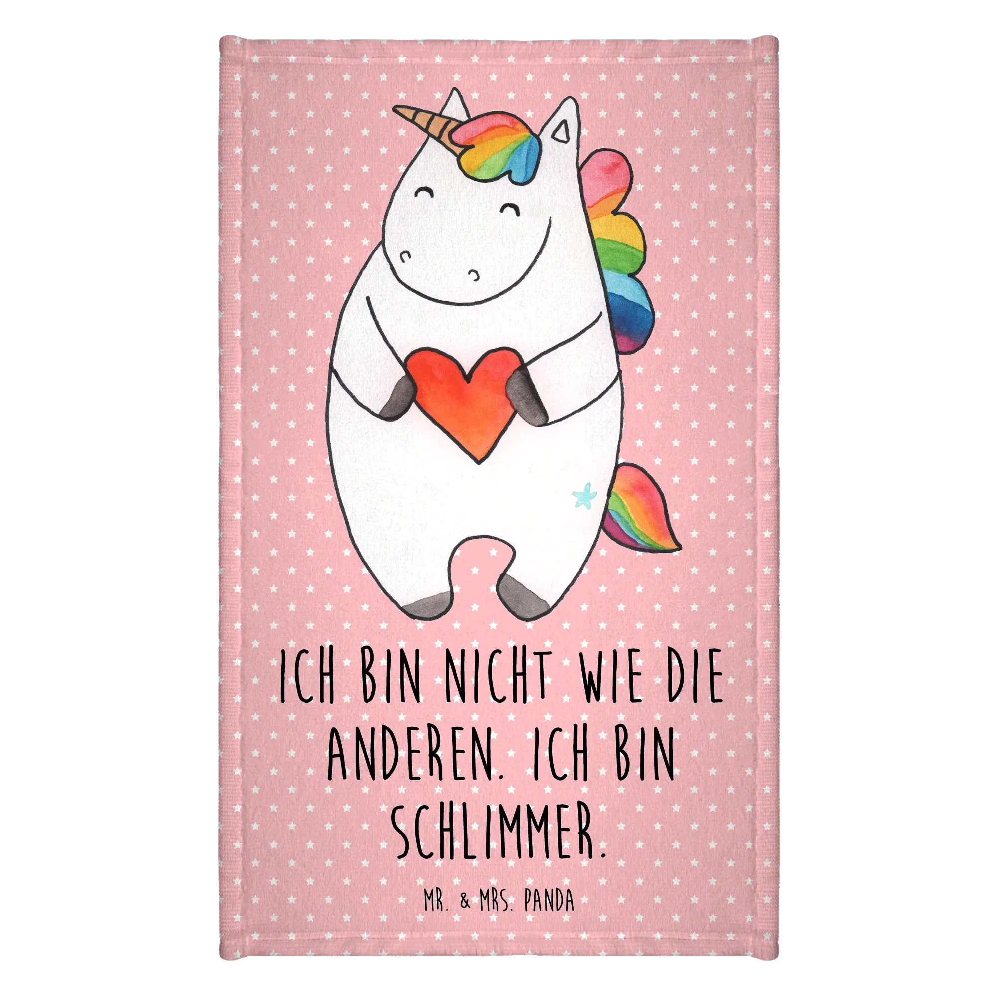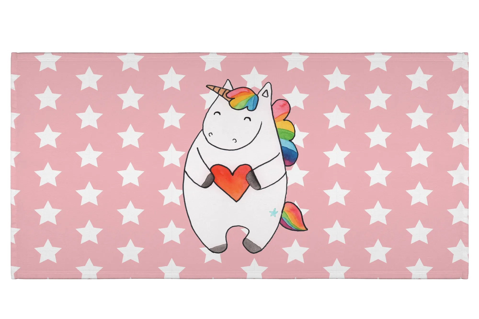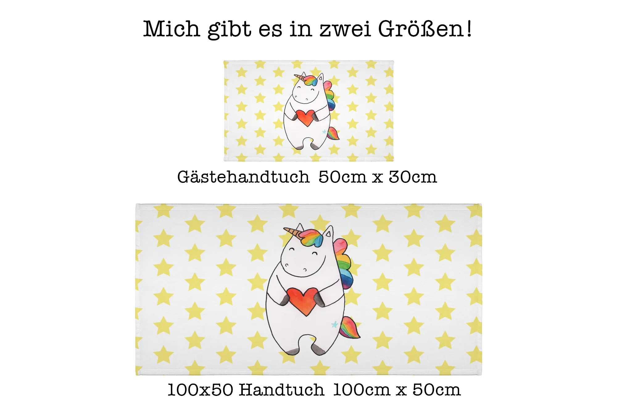 Das 50 x 100 Handtuch mit dem witzigen Einhorn Herz Motiv von Mr. & Mrs. Panda ist das perfekte Geschenk für zahlreiche Anlässe und Personen in Deinem Umfeld.