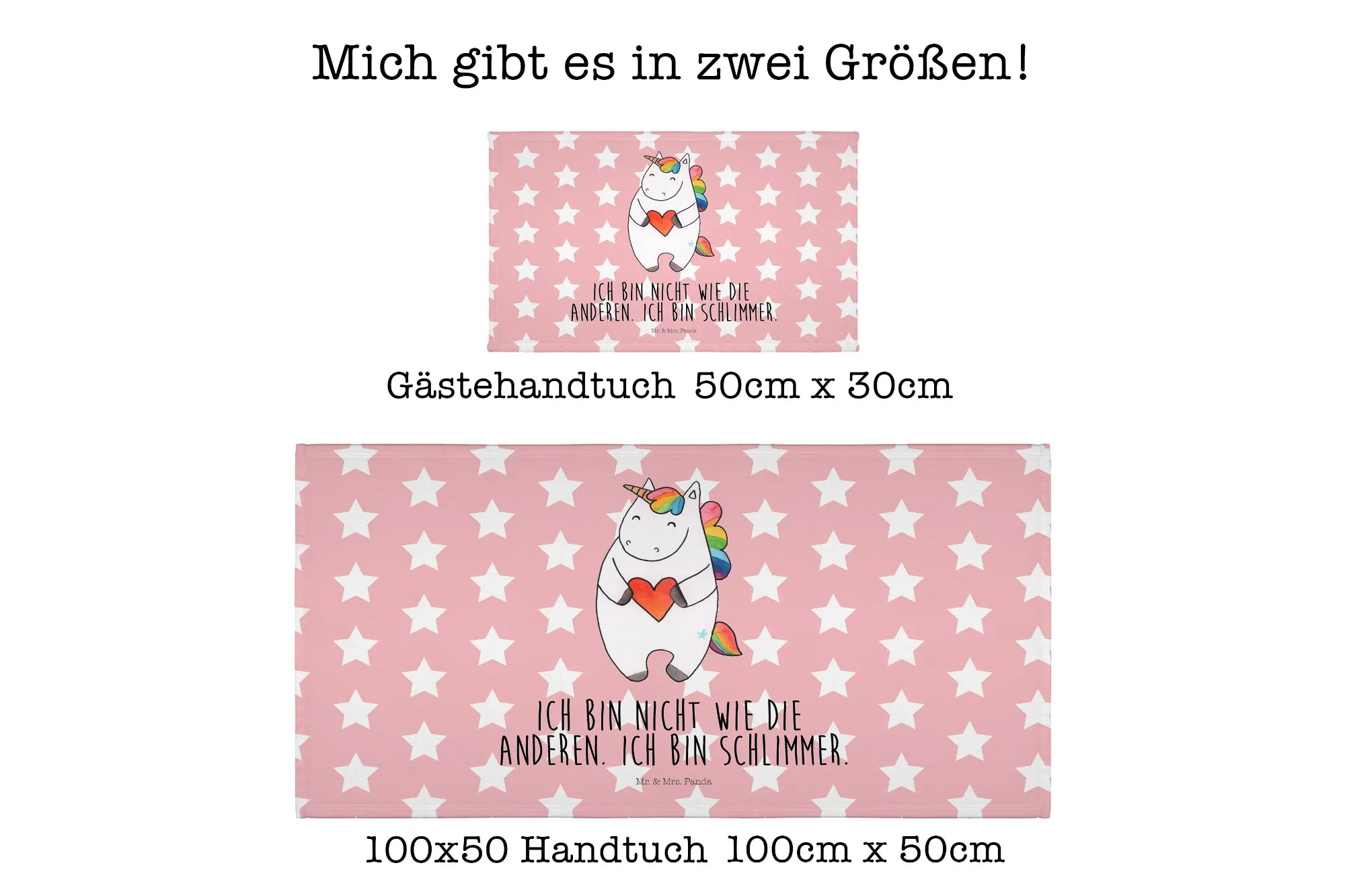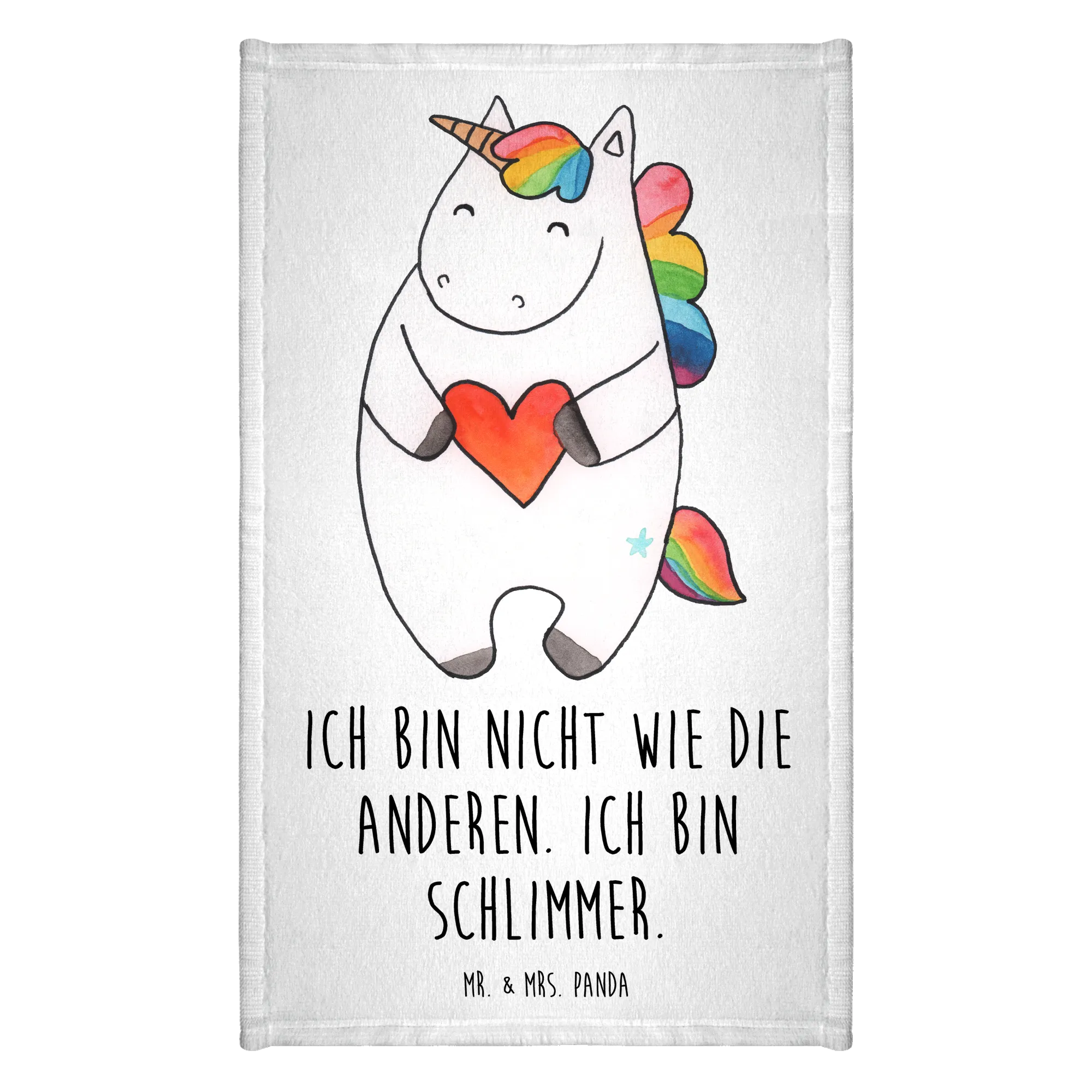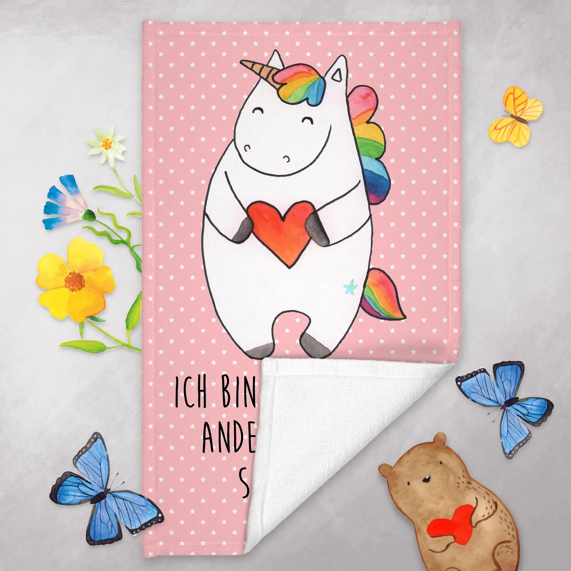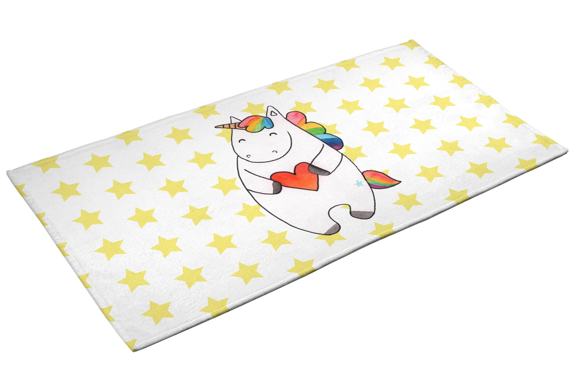Das 50 x 100 Handtuch mit dem witzigen Einhorn Herz Motiv von Mr. & Mrs. Panda ist das perfekte Geschenk für zahlreiche Anlässe und Personen in Deinem Umfeld.