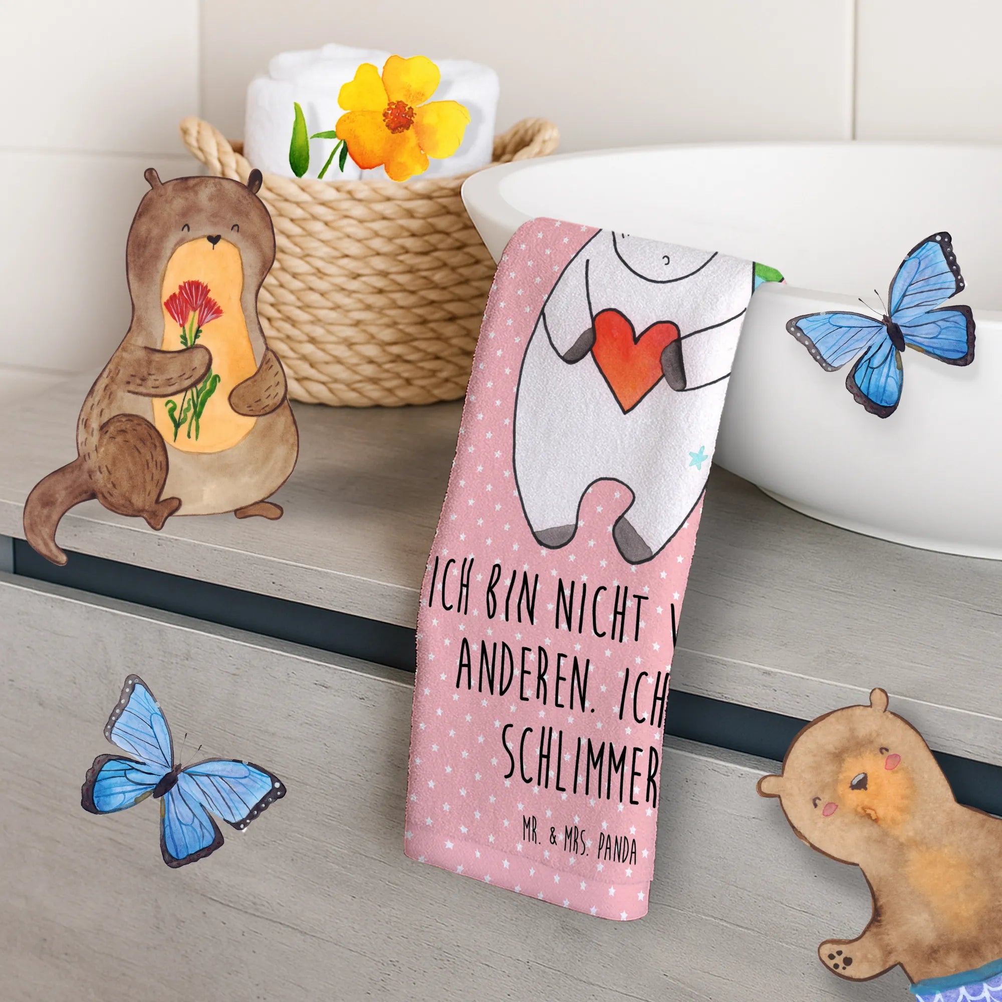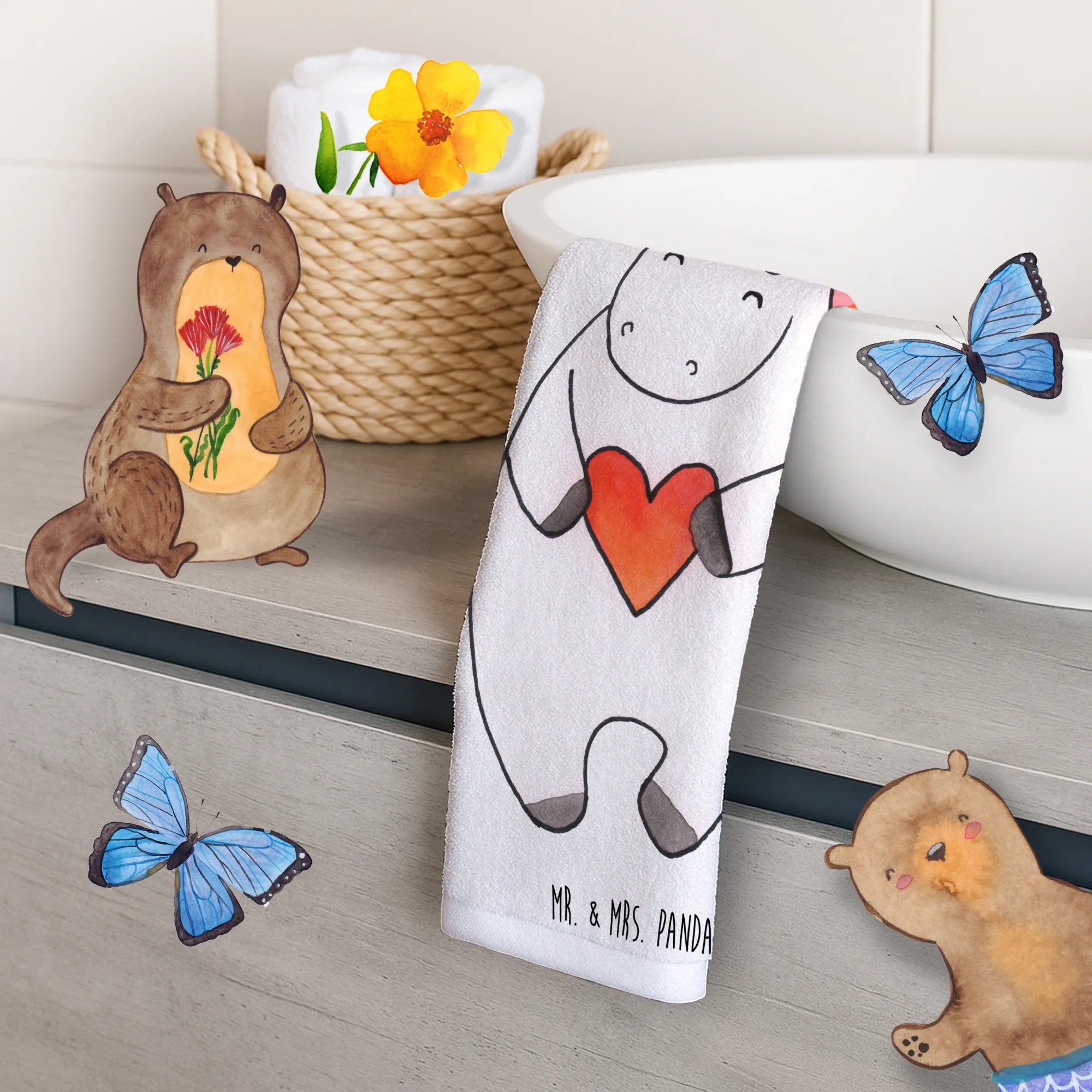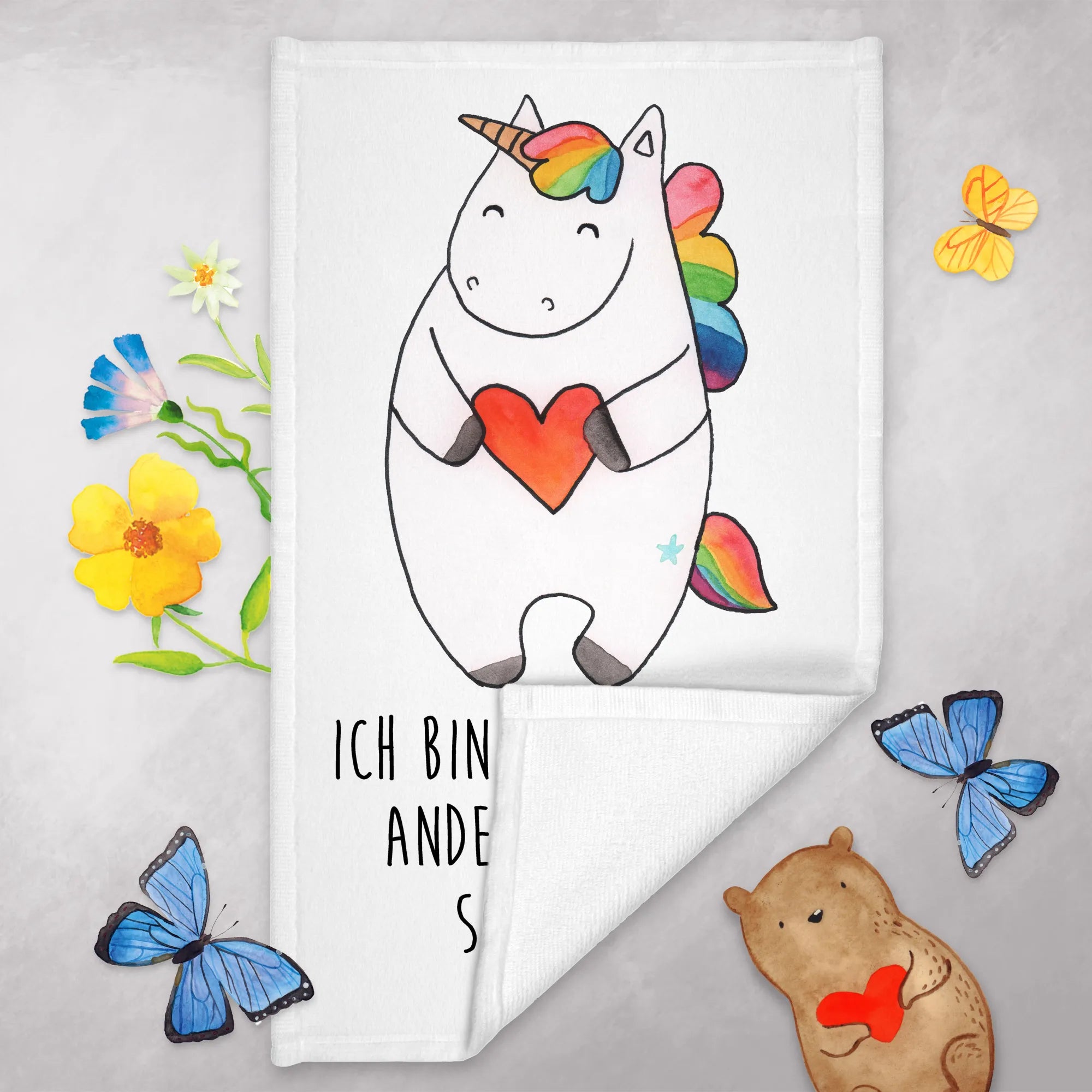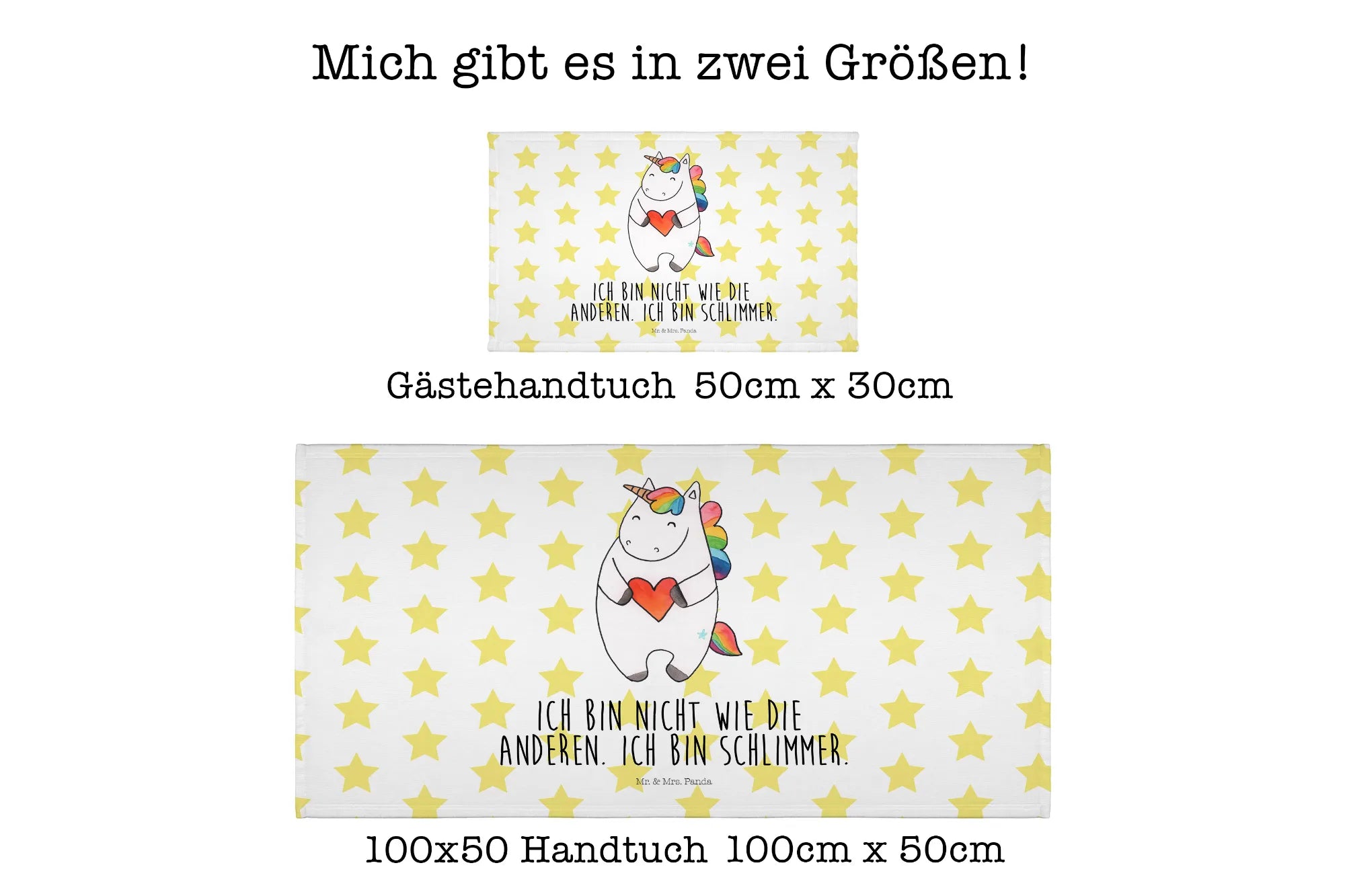 Das 50 x 100 Handtuch mit dem witzigen Einhorn Herz Motiv von Mr. & Mrs. Panda ist das perfekte Geschenk für zahlreiche Anlässe und Personen in Deinem Umfeld.