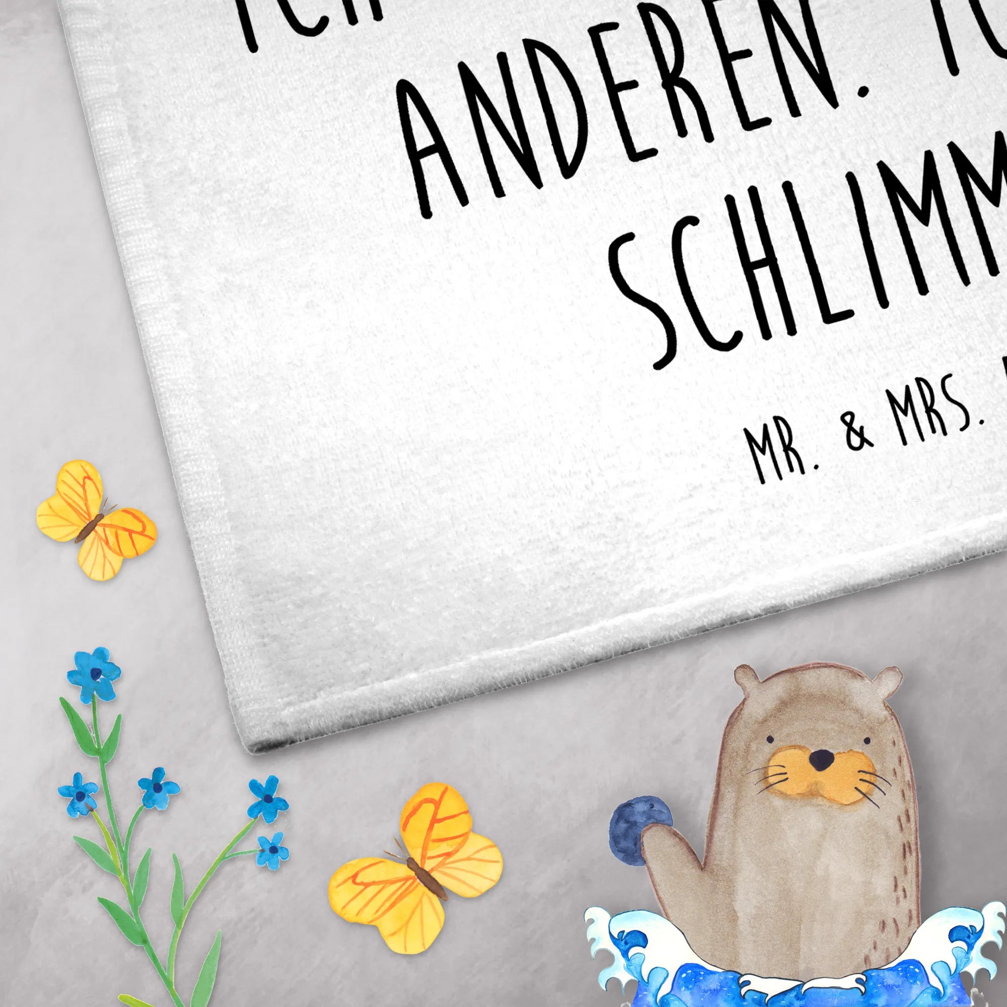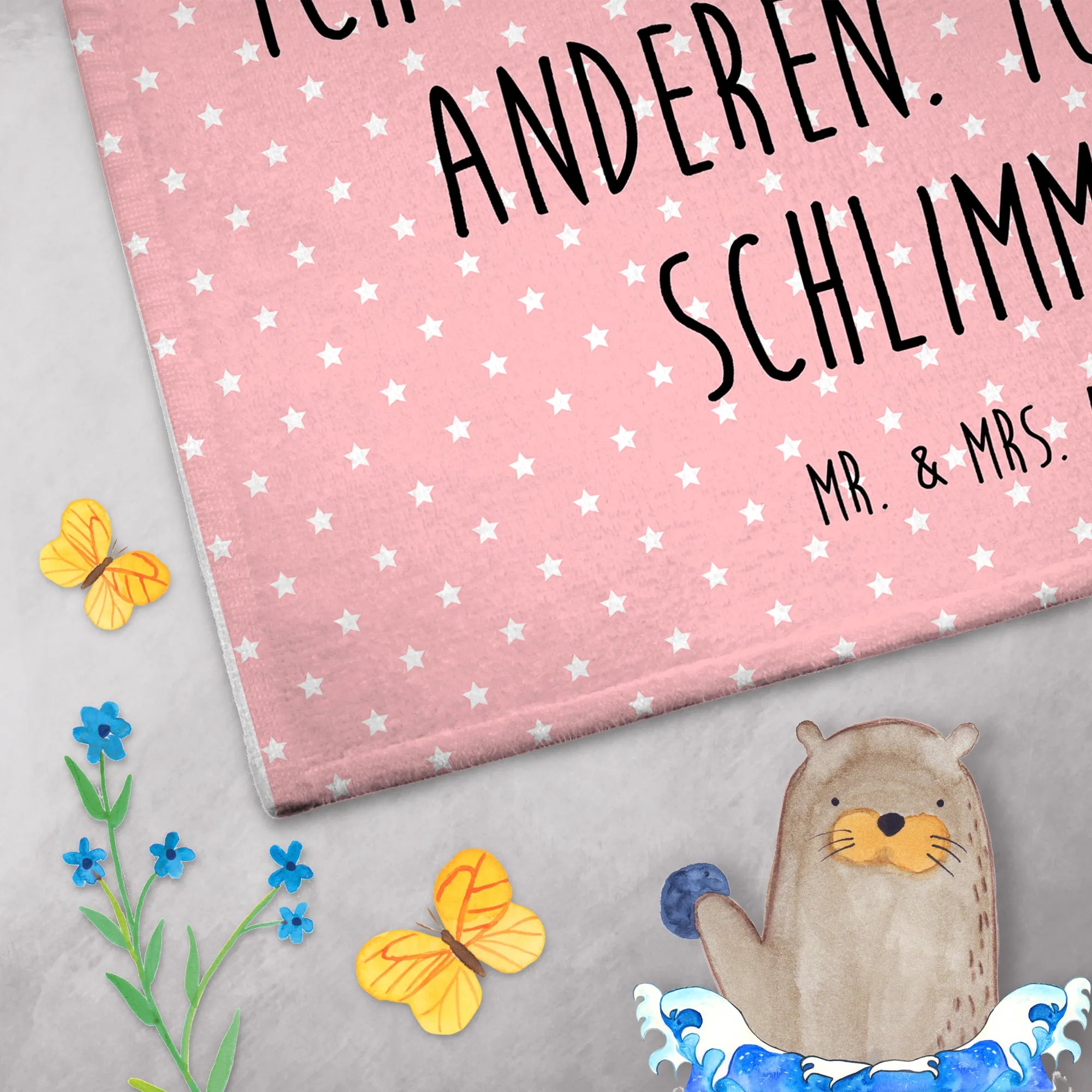 Das Handtuch ist mit dem witzigen Spruch "Ich bin nicht wie die Anderen. Ich bin schlimmer." versehen, was es zu einem ganz besonderen Accessoire macht. Es ist ein tolles Geschenk für die beste Freundin oder als Dekoration für das eigene Zimmer, das jedem Raum eine persönliche Note verleiht.