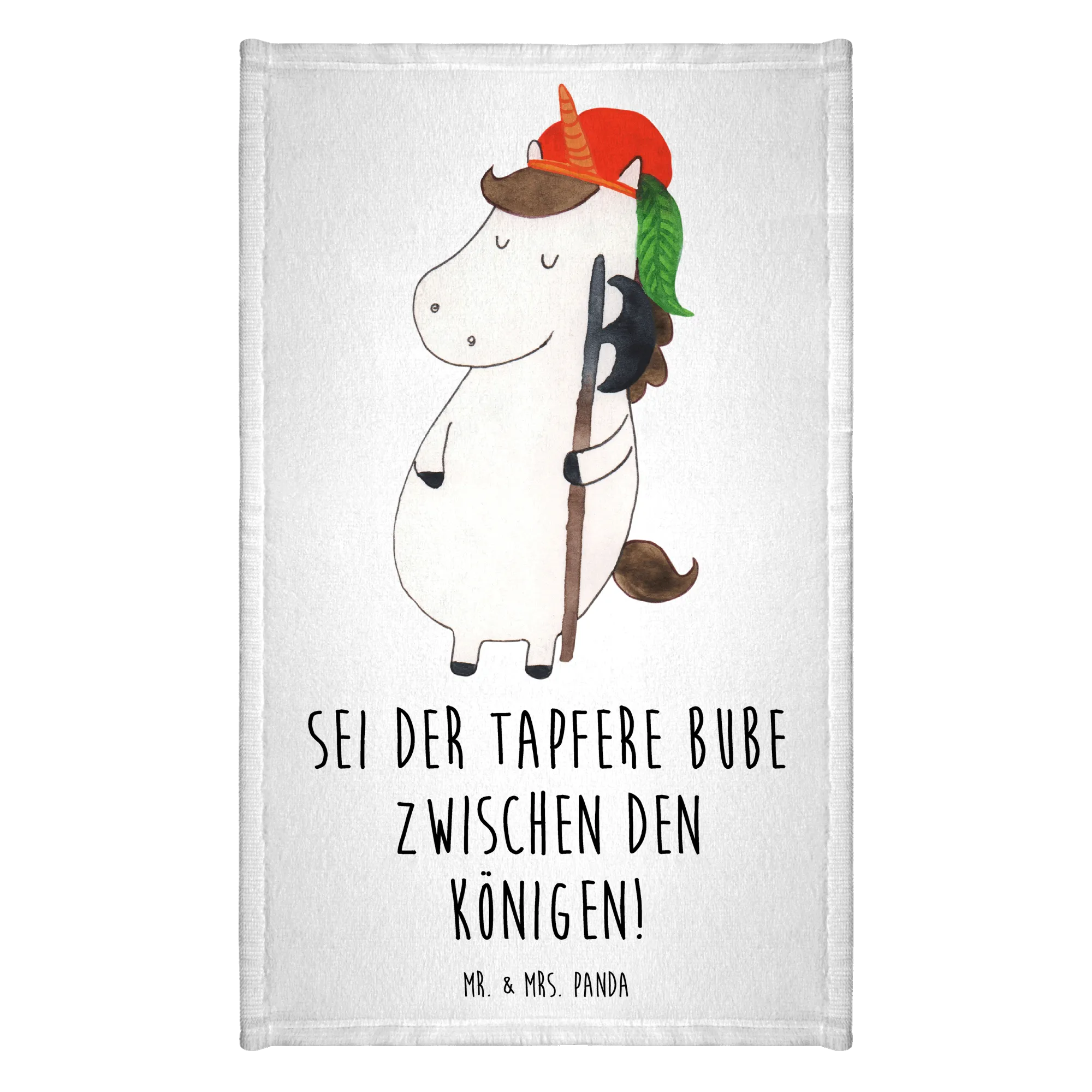 Das 50 x 100 Handtuch "Einhorn Bube" von Mr. & Mrs. Panda ist das perfekte Geschenk für alle Einhornliebhaber! Mit seinem einzigartigen, handgezeichneten Motiv eines freundlichen Einhorns, das als mutiger Bube mit Helm auftritt, bringt es Freude ins Badezimmer.