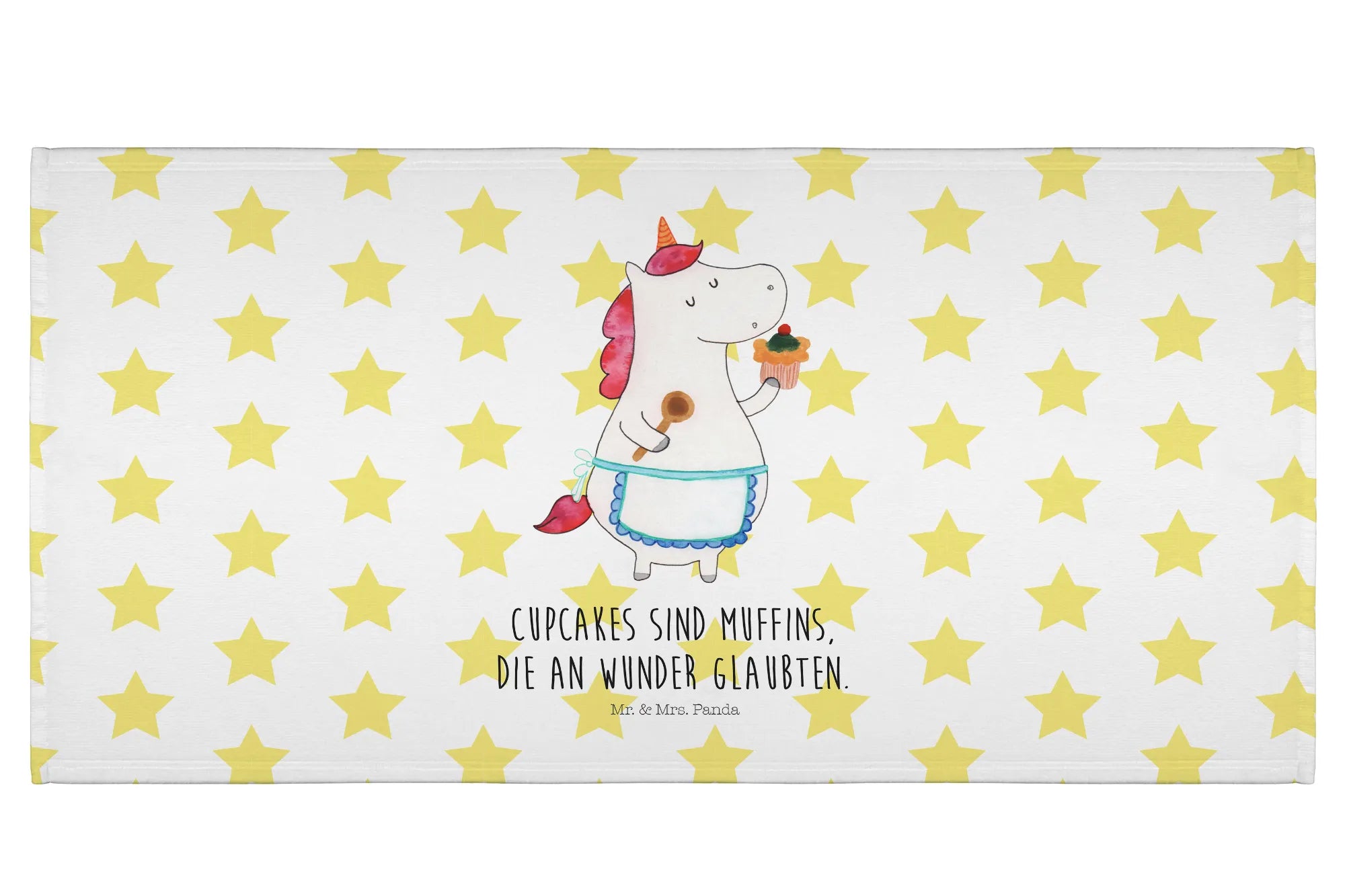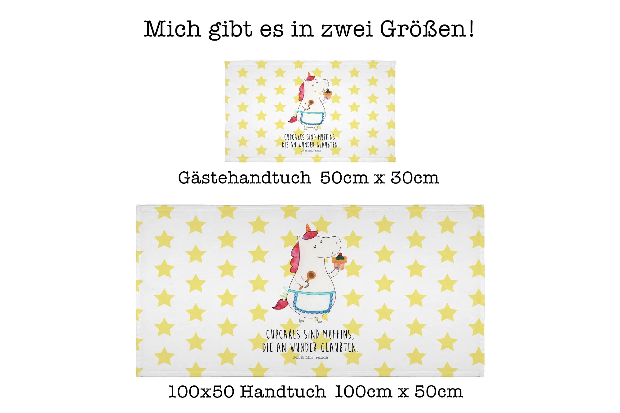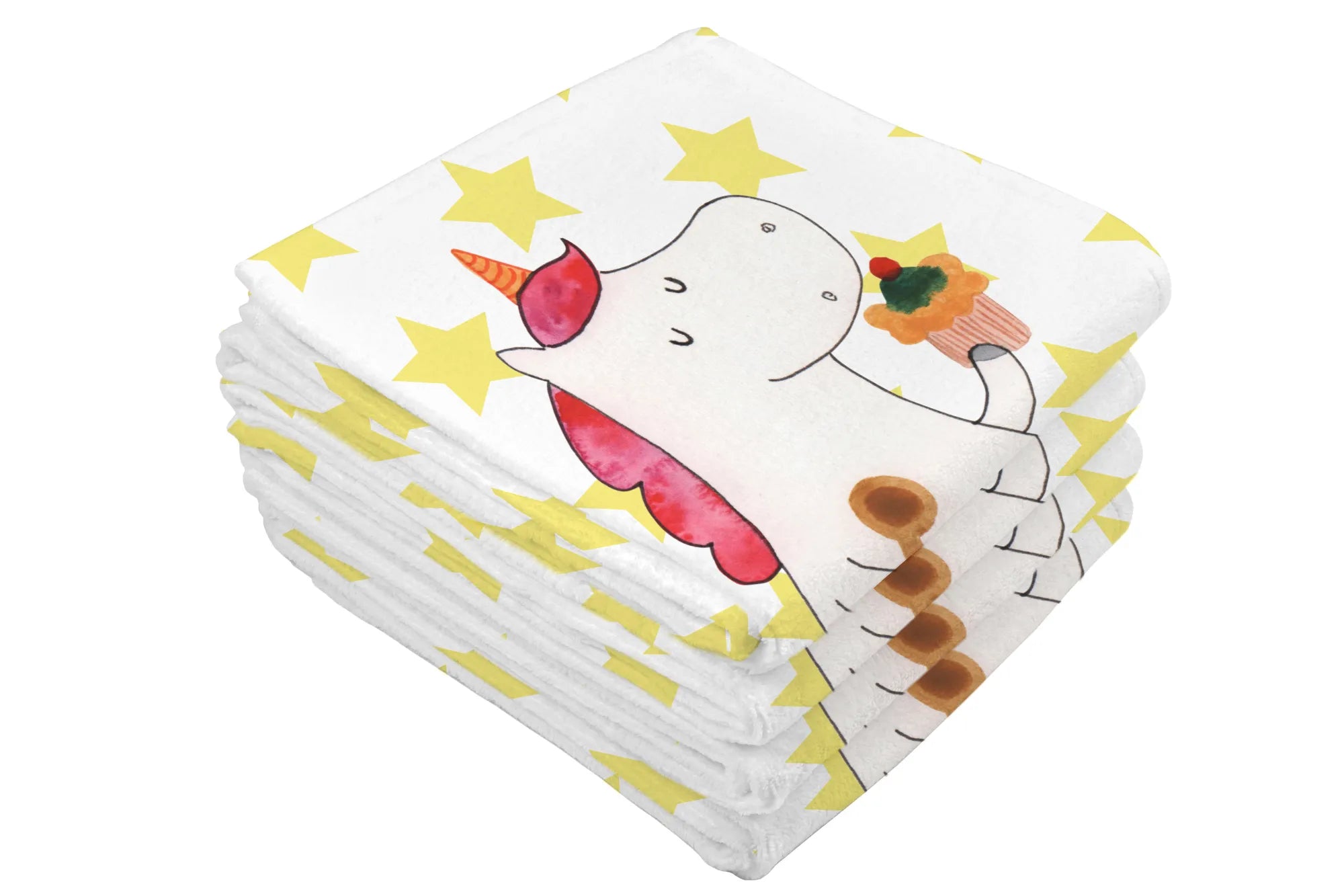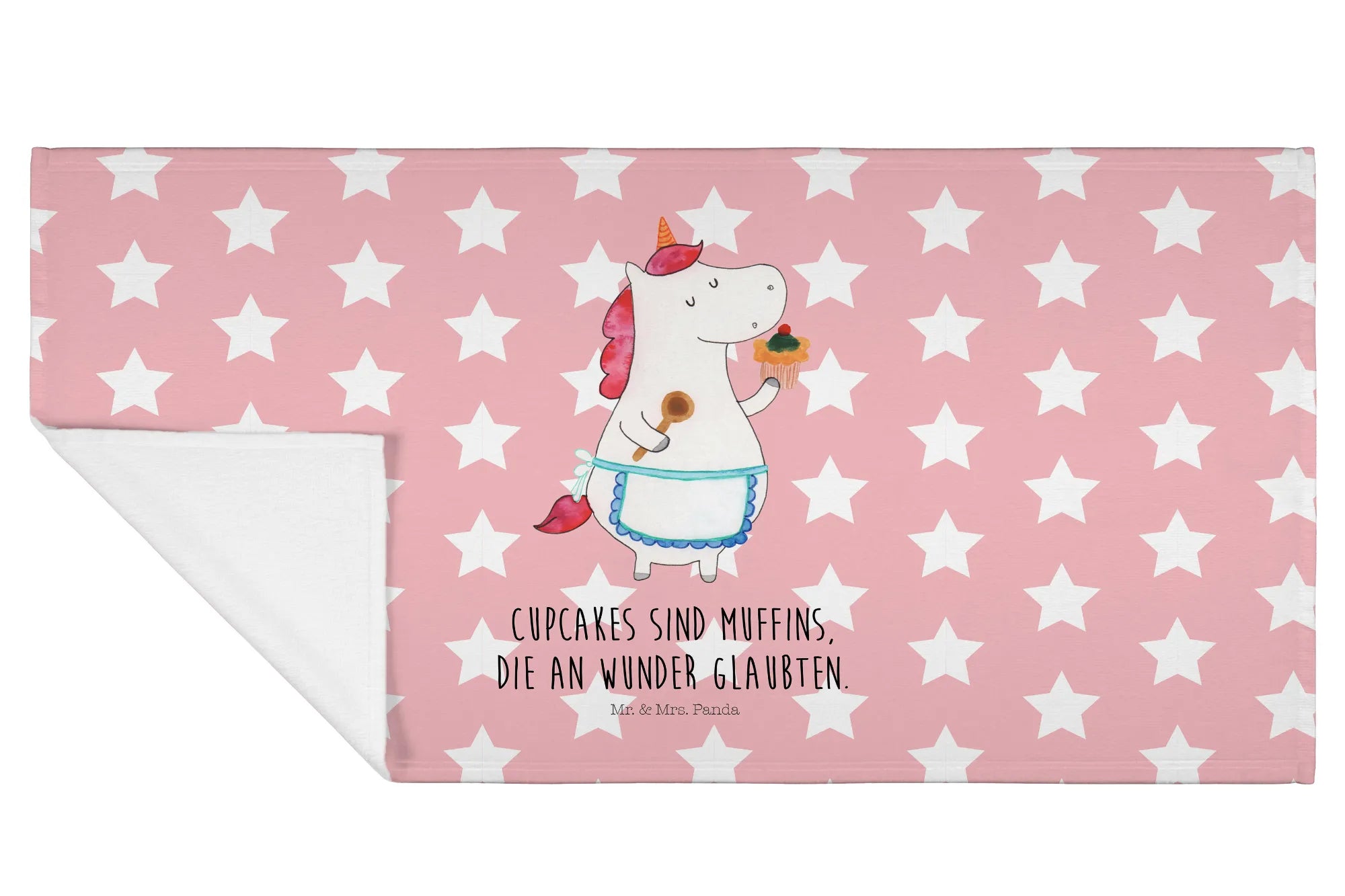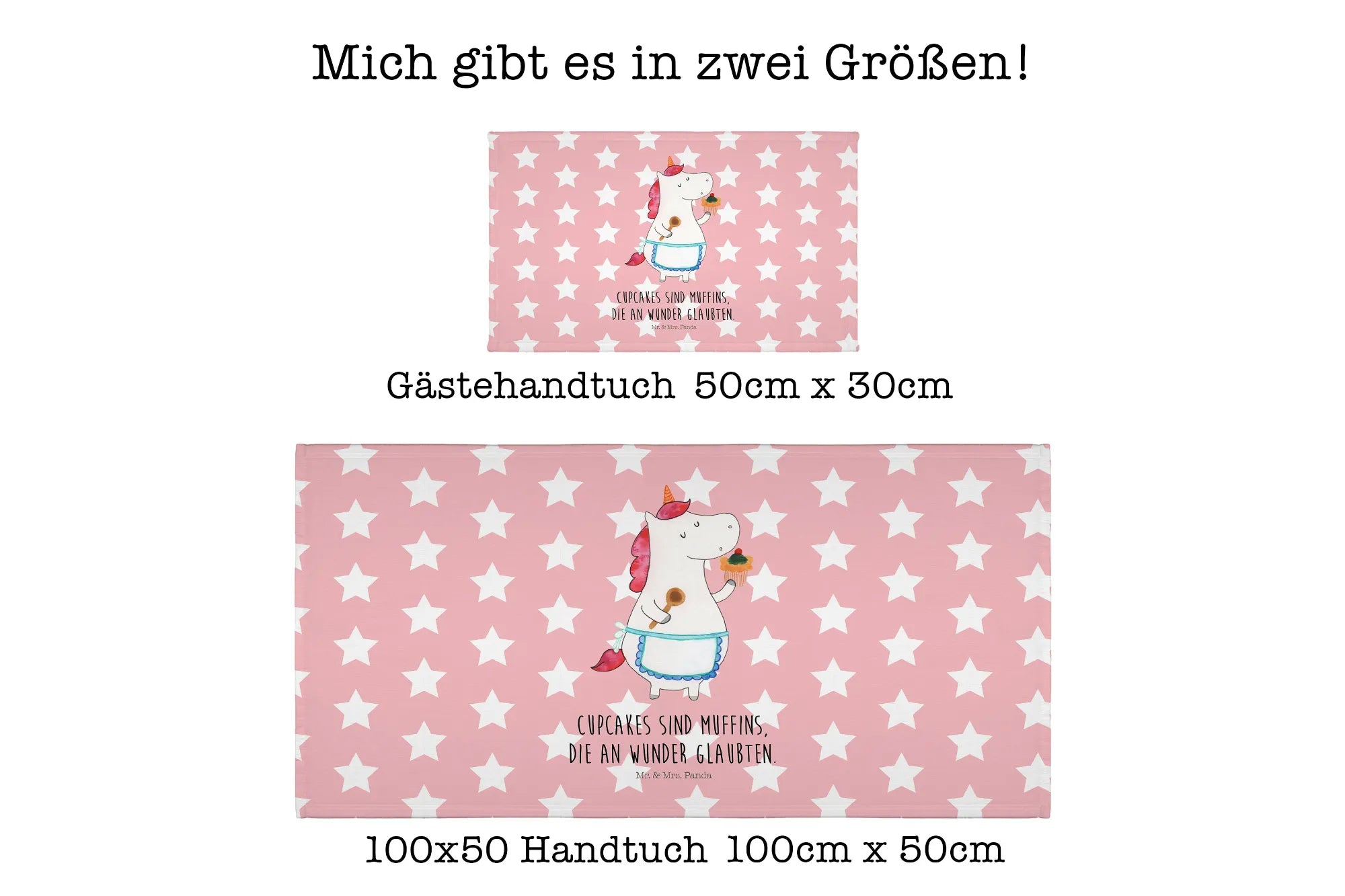 Das Einhorn Küchenfee Gästehandtuch von Mr. & Mrs. Panda ist der perfekte Begleiter für alle, die die zauberhafte Welt der Einhörner lieben. Mit seinem fröhlichen Design und dem zauberhaften Spruch "Cupcakes sind Muffins, die an Wunder glaubten" bringt es einen Hauch von Magie in jedes Badezimmer oder Gästebad.