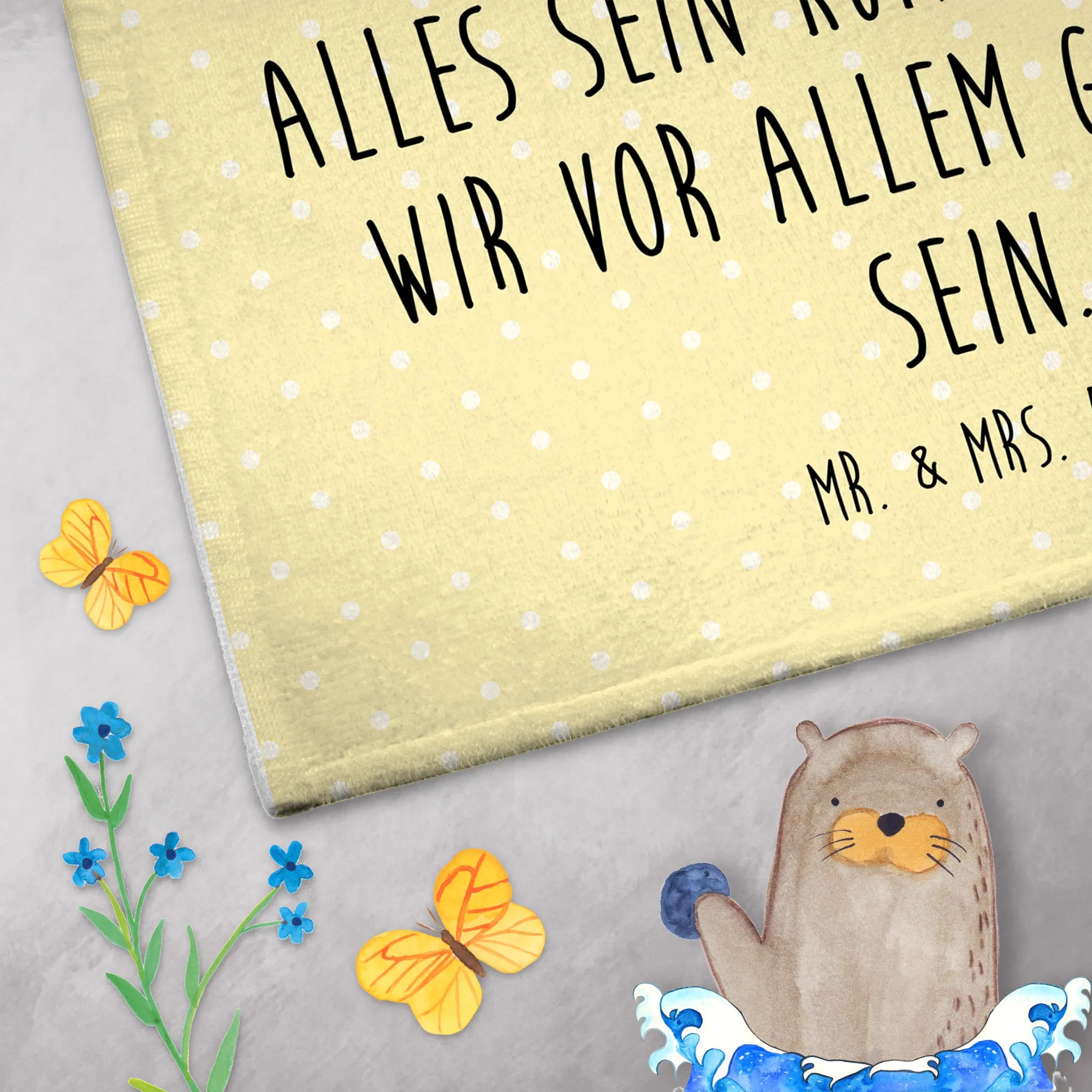 Verschenke Freude, Farbe und ein Stückchen Magie mit diesem Handtuch aus der Small World Kollektion von Mr. & Mrs. Panda! Es ist mehr als nur ein Handtuch; es ist eine Erinnerung daran, wie wichtig es ist, das Leben mit einem Lächeln zu genießen.
