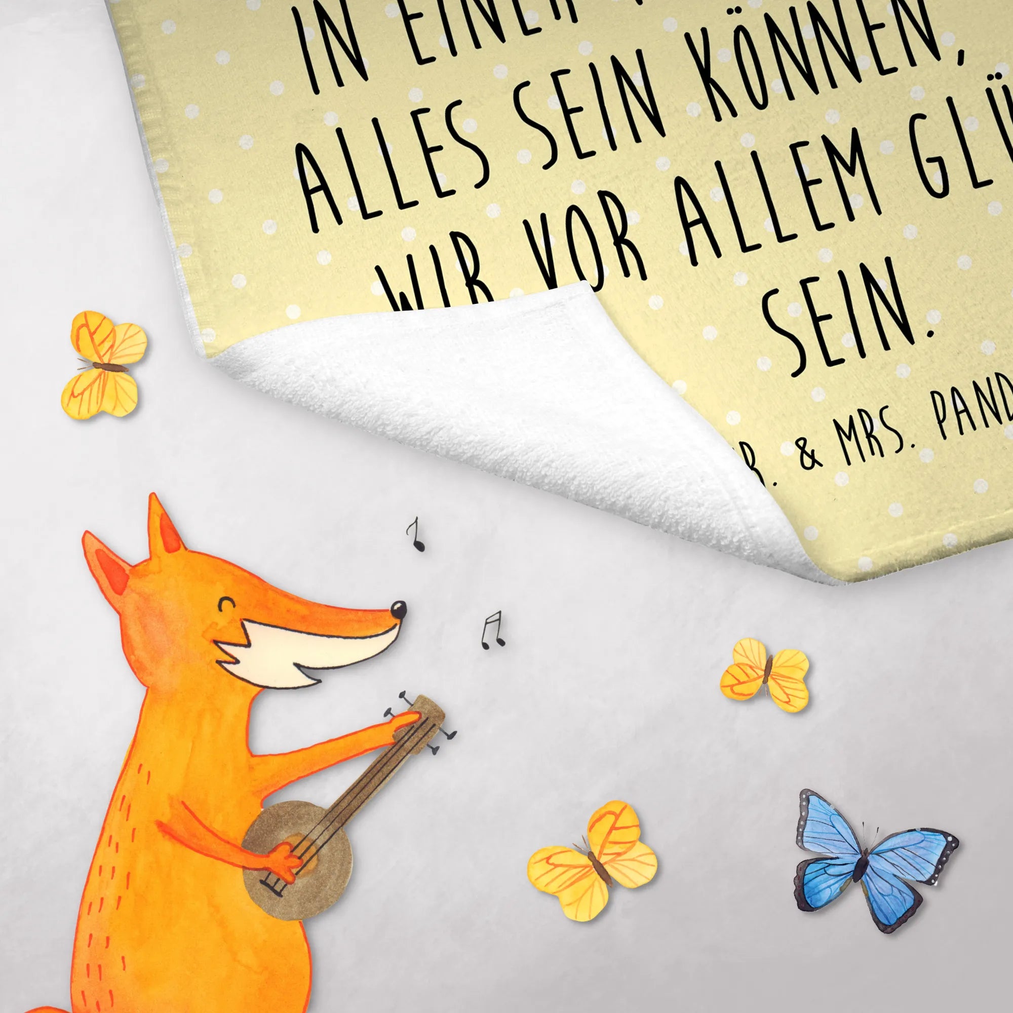 Zudem ist das Gästehandtuch pflegeleicht: Es kann unkompliziert bei 30°C in der Waschmaschine gewaschen werden und ist im Trockner auf niedrigen Temperaturen einsetzbar. Alle unsere Produkte sind hochwertig bedruckt mit den süßen Motiven und Sprüchen von Mr. & Mrs. Panda.