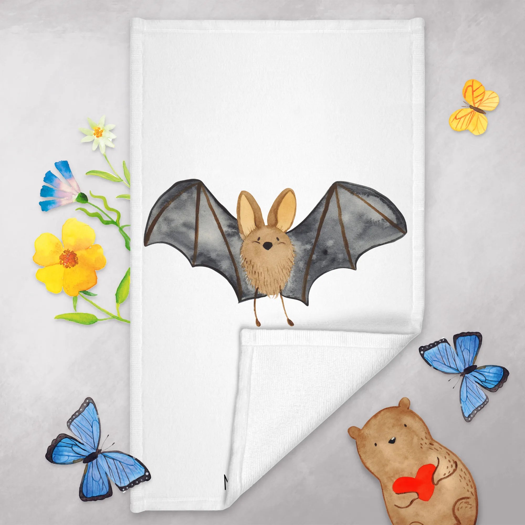 Die Small World Kollektion von Mr. & Mrs. Panda ist bekannt für ihre liebevollen, handgezeichneten Aquarell-Motive. Jedes Produkt dieser Kollektion ist ein Unikat und bringt ein Stück Magie in deinen Alltag. Mit der niedlichen Fledermaus auf deinem Handtuch wird jeder Tag ein bisschen heller. Also, lass die gute Laune in dein Badezimmer einziehen und genieße das Leben mit einem Lächeln!