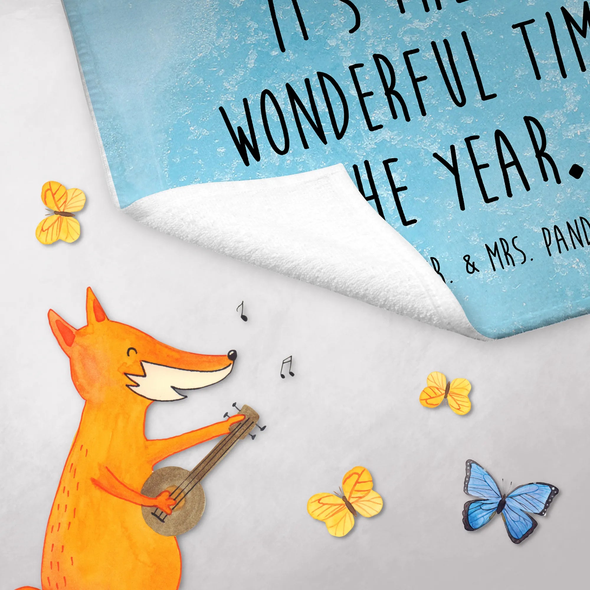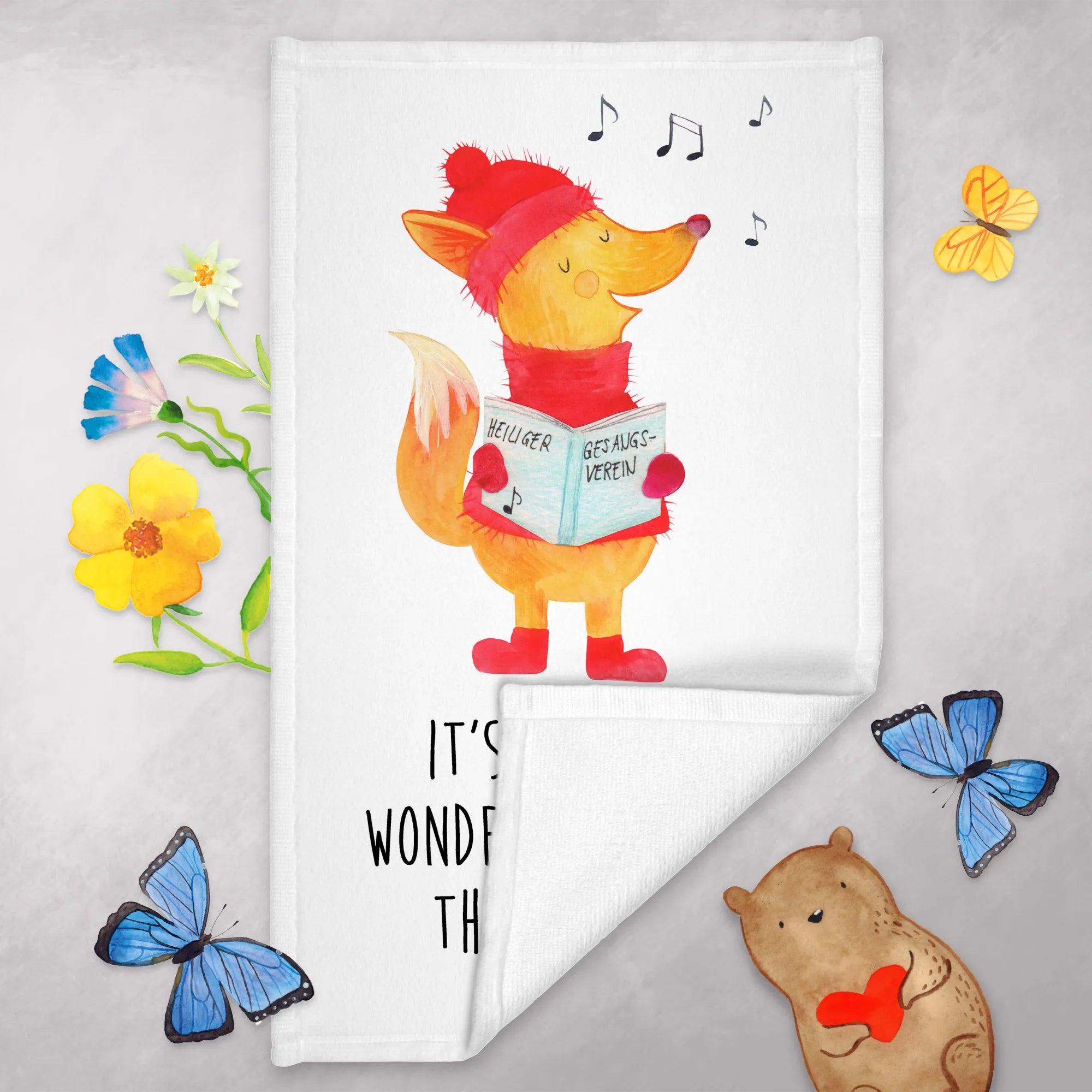 Verschenke Freude und Wärme – das Handtuch "Fuchs Sänger" von Mr. & Mrs. Panda wird mit Sicherheit ein Lächeln auf die Gesichter der Beschenkten zaubern. Mach die Weihnachtszeit noch schöner mit diesem zauberhaften Geschenk!