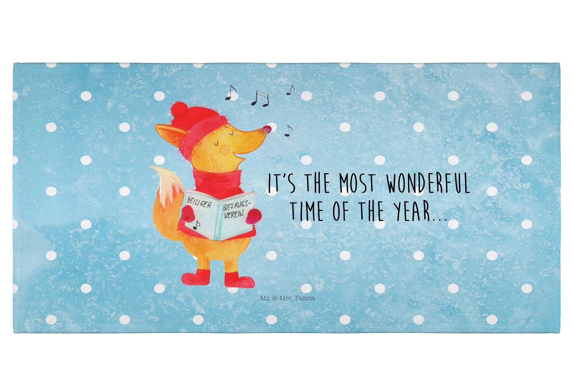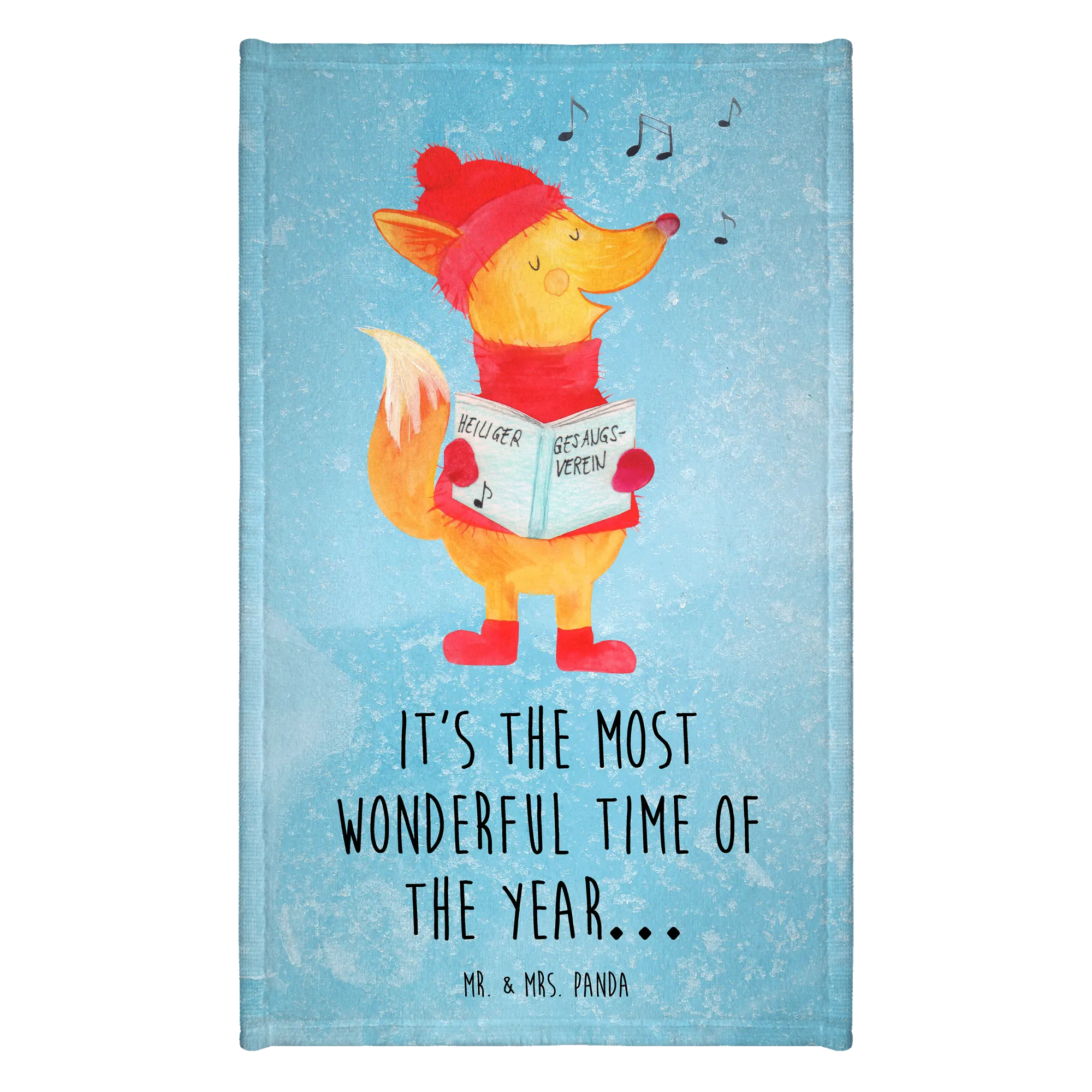 Entdecke das zauberhafte 50 x 100 Handtuch mit dem fröhlichen Fuchs Sänger von der Winter Kollektion von Mr. & Mrs. Panda! Dieses samtweiche Handtuch ist nicht nur ein praktisches Accessoire für dein Badezimmer, sondern auch ein echter Hingucker mit seinem wunderbaren winterlichen Motiv, das mit strahlenden Farben bedruckt ist. Der liebe Fuchs in seiner roten Mütze und Schal singt fröhlich, während musikalische Noten um ihn herum schweben und er in sein Liederbuch schaut. Der Slogan „It's the most wonderful time of the year…“ umgibt ihn und versprüht festliche Vorfreude. Perfekt geeignet für die besinnliche Weihnachtszeit!