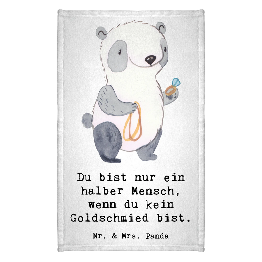 Die hochwertig bedruckte Baumwollmischung sorgt dafür, dass das Handtuch extra weich und saugfähig ist. Zudem hat unser süßer Panda einen ganz besonderen Slogan dazu: "Du bist nur ein halber Mensch, wenn du kein Goldschmied bist." Dies macht das Gästehandtuch zu einem witzigen und besonderen Geschenk.