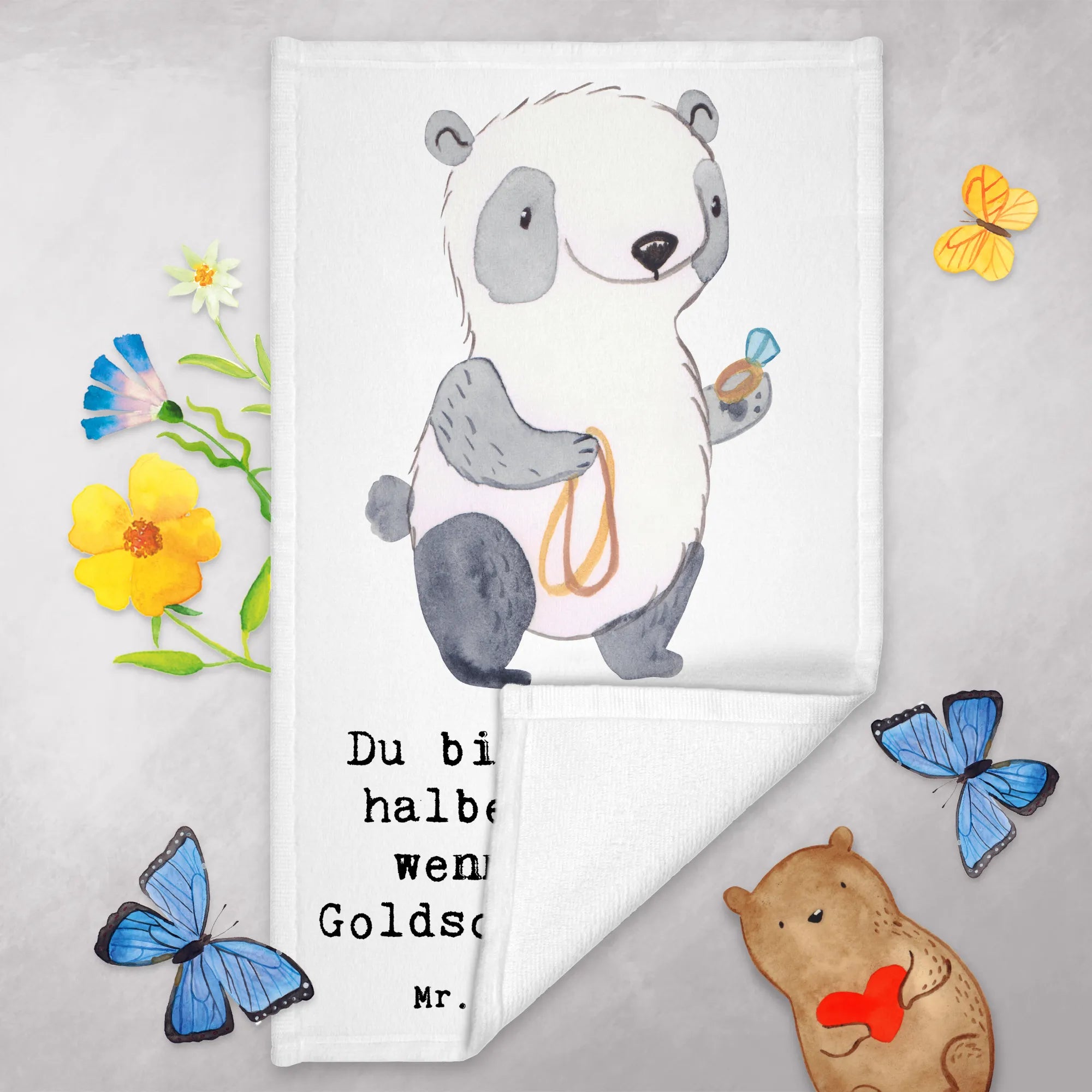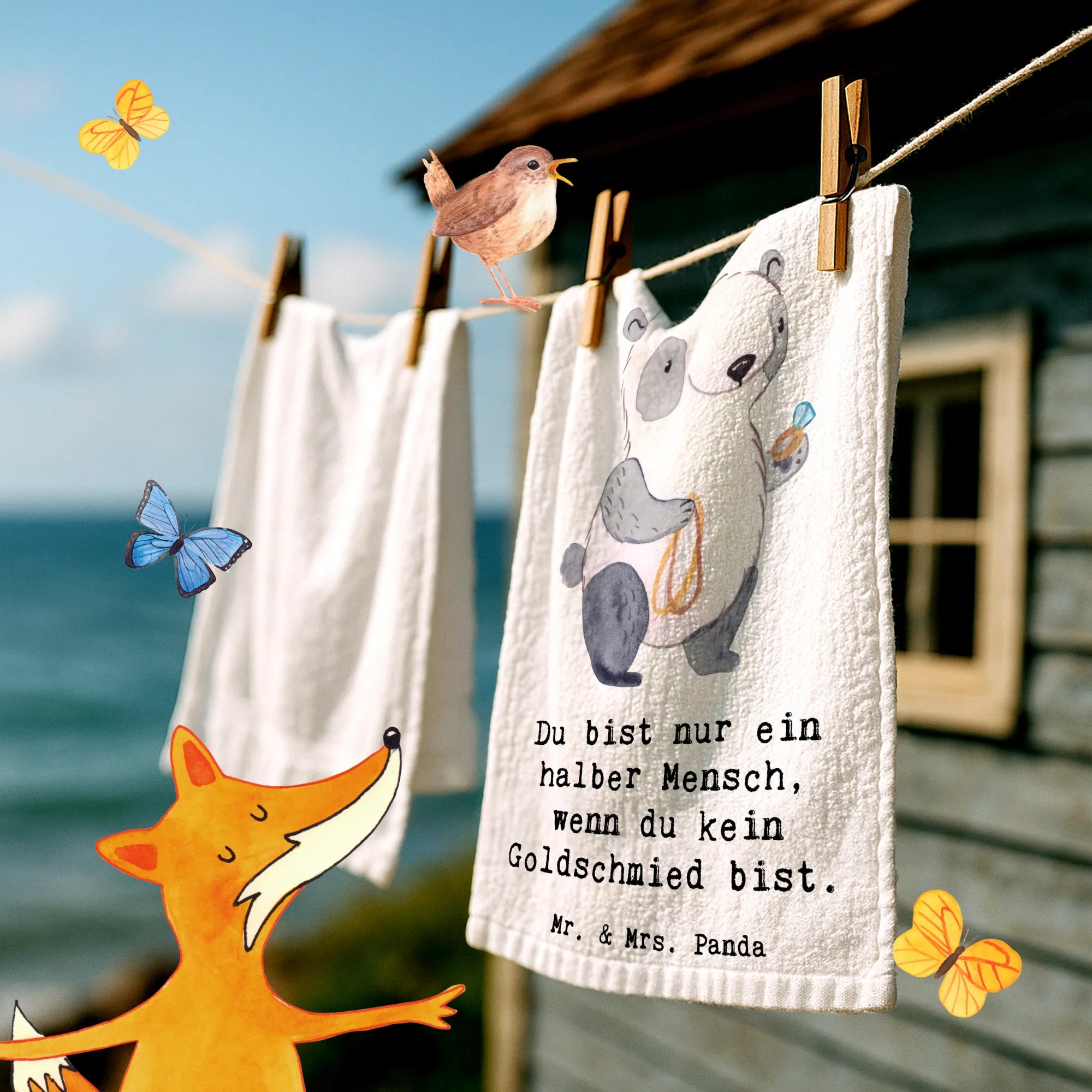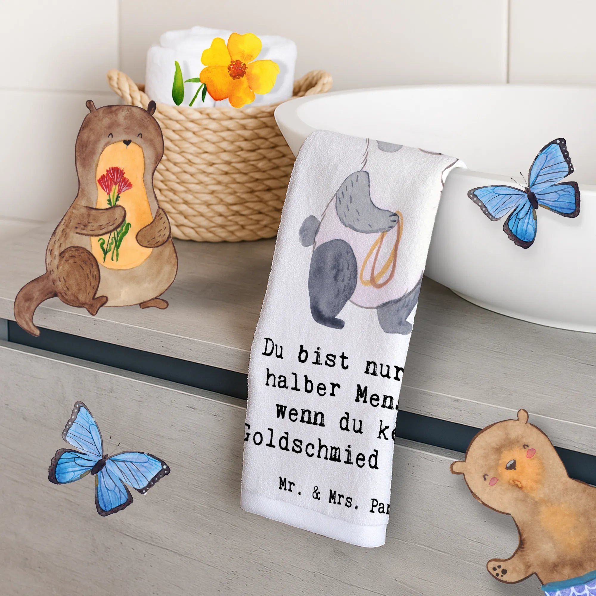Das perfekte Gästehandtuch für Goldschmiede! Mit dem süßen Motiv "Goldschmied mit Herz" von Mr. & Mrs. Panda zaubert dieses hochwertige, flauschige Handtuch ein Lächeln in jedes Badezimmer. Es ist nicht nur ein praktisches Accessoire, sondern auch eine liebevolle Geschenkidee, die jedem Goldschmied eine Freude macht.
