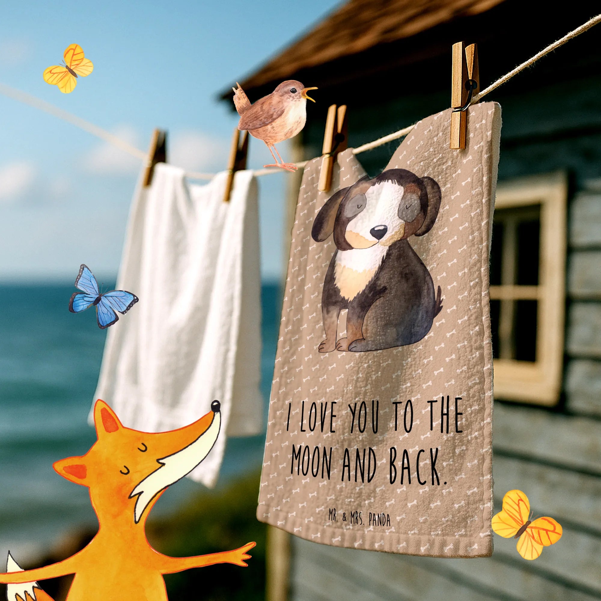 Das 50 x 100 Handtuch "Hund entspannt" von Mr. & Mrs. Panda ist einfach das perfekte Geschenk für alle Hundeliebhaber!