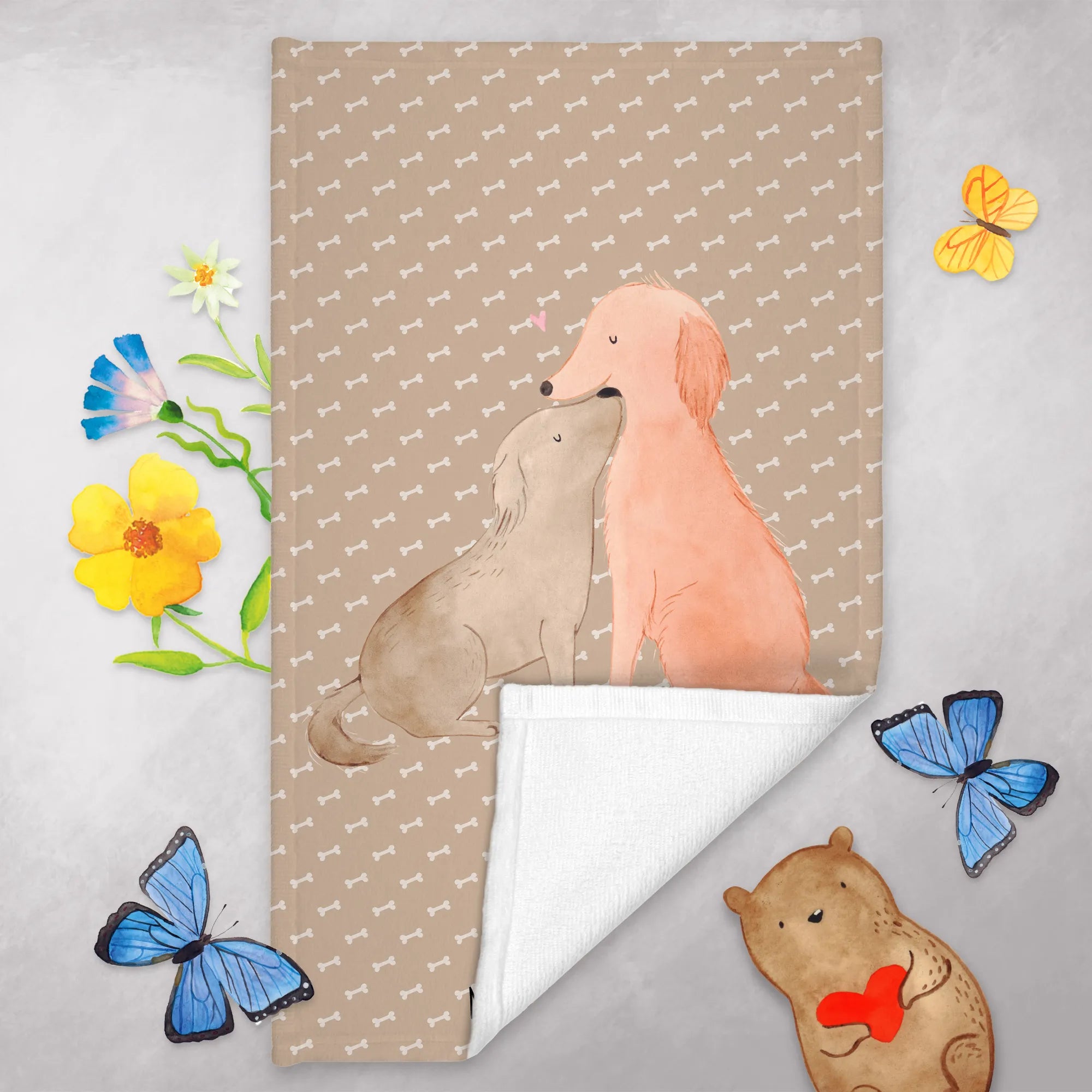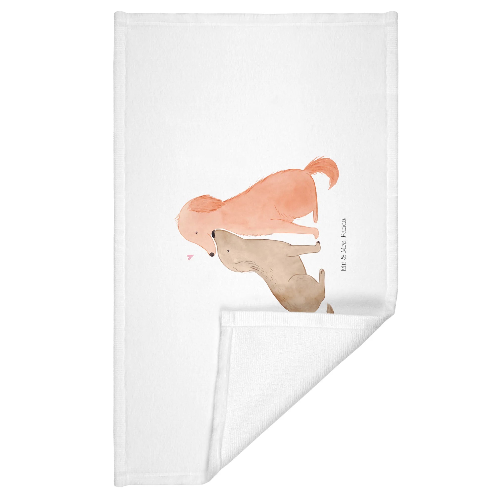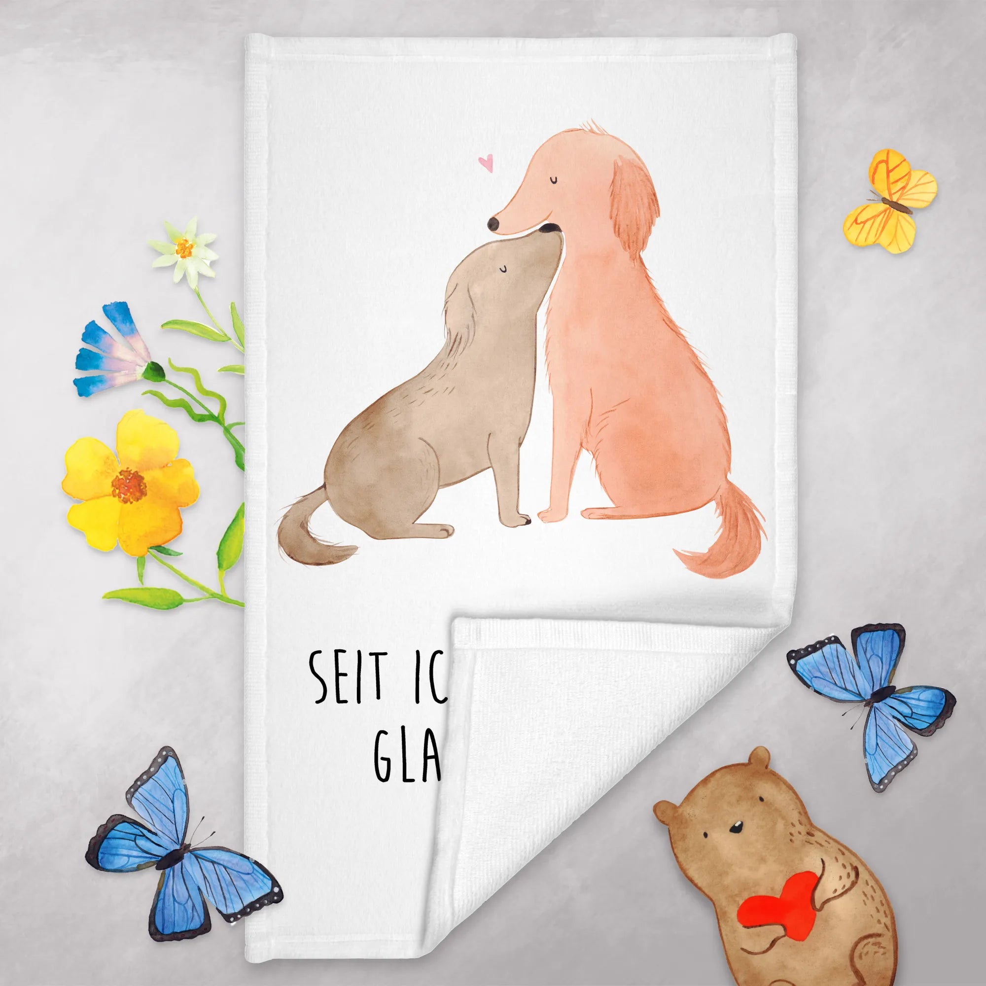 Das Gästetuch "Hunde Liebe" von Mr. & Mrs. Panda ist das perfekte Geschenk für Hundeliebhaber und Hundehalter. Mit der süßen Darstellung von zwei kuschelnden Hunden zaubert dieses hochwertig bedruckte und extra weiche Handtuch ein Lächeln in jedes Gesicht.