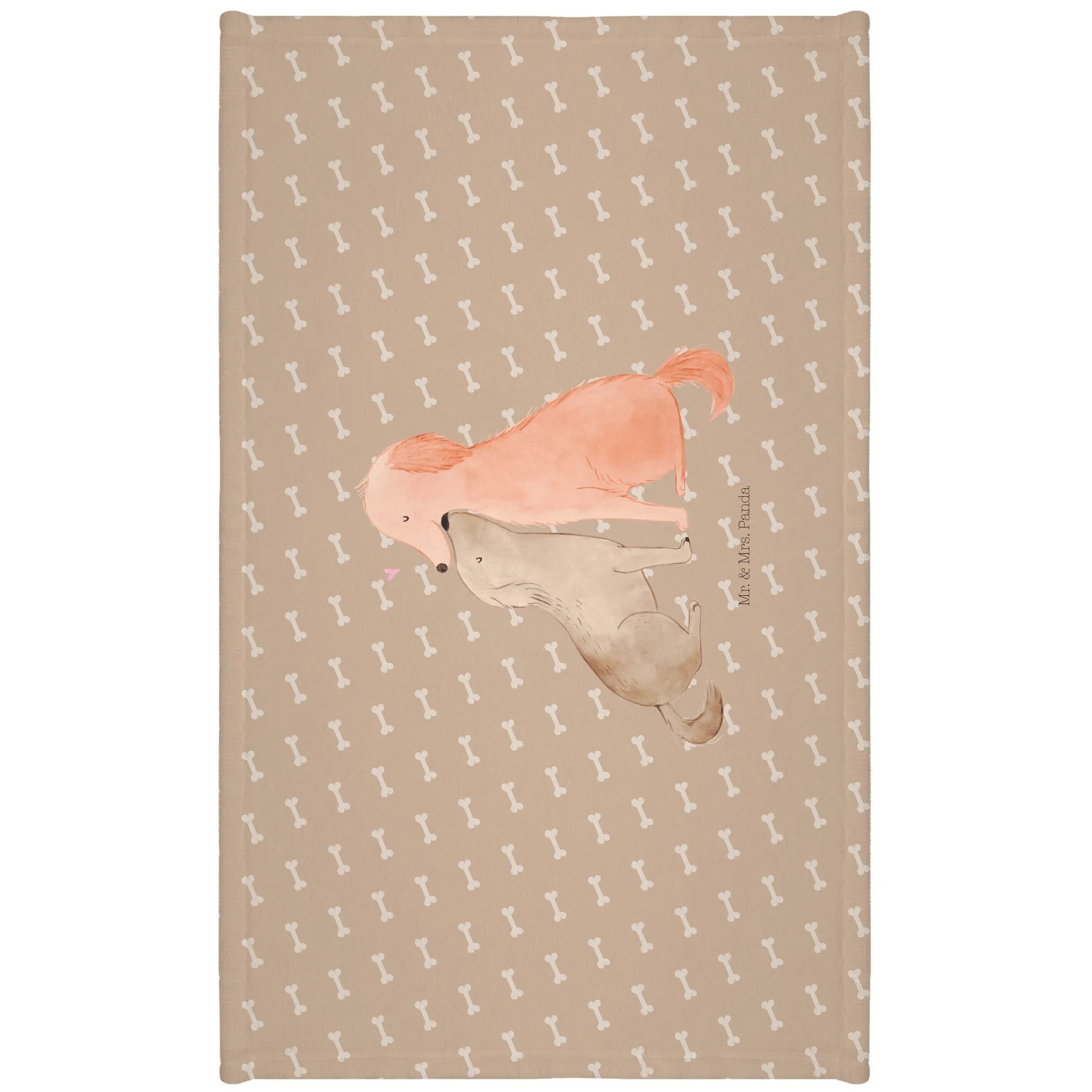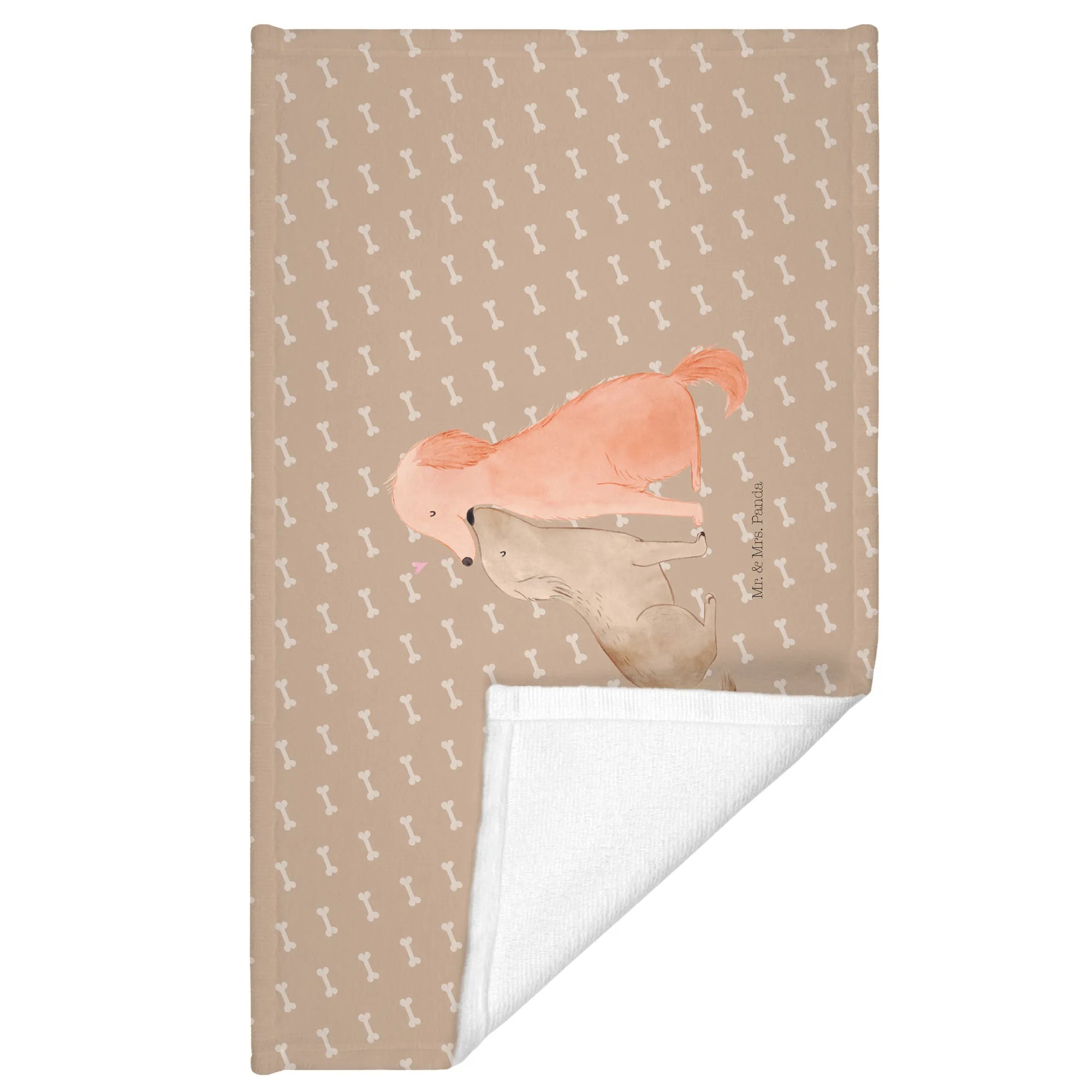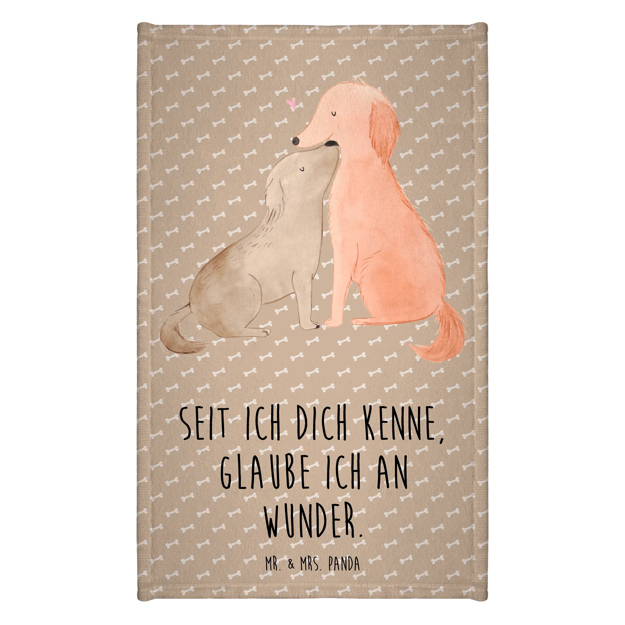 Das Gästetuch "Hunde Liebe" von Mr. & Mrs. Panda ist das perfekte Geschenk für Hundeliebhaber und Hundehalter. Mit der süßen Darstellung von zwei kuschelnden Hunden zaubert dieses hochwertig bedruckte und extra weiche Handtuch ein Lächeln in jedes Gesicht.