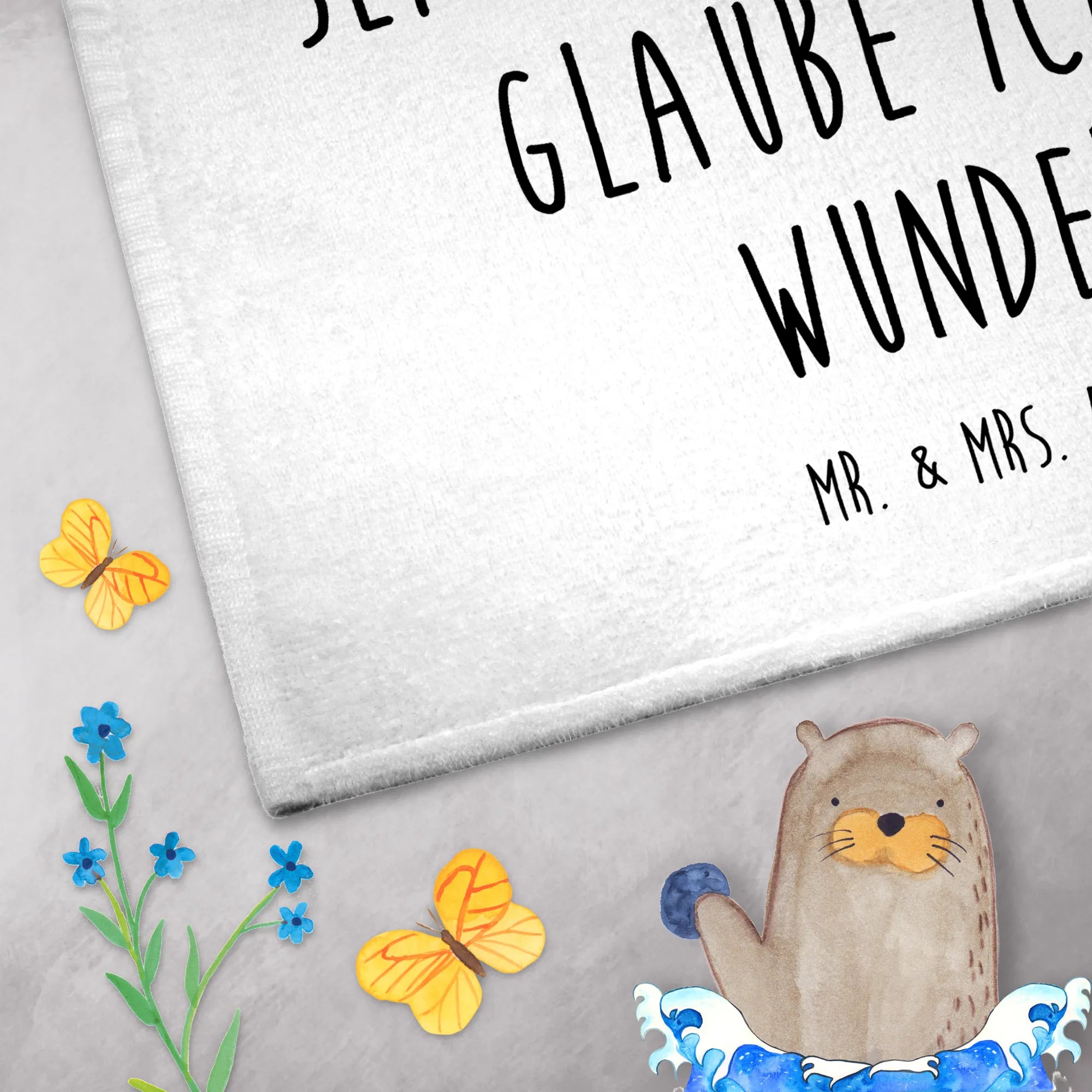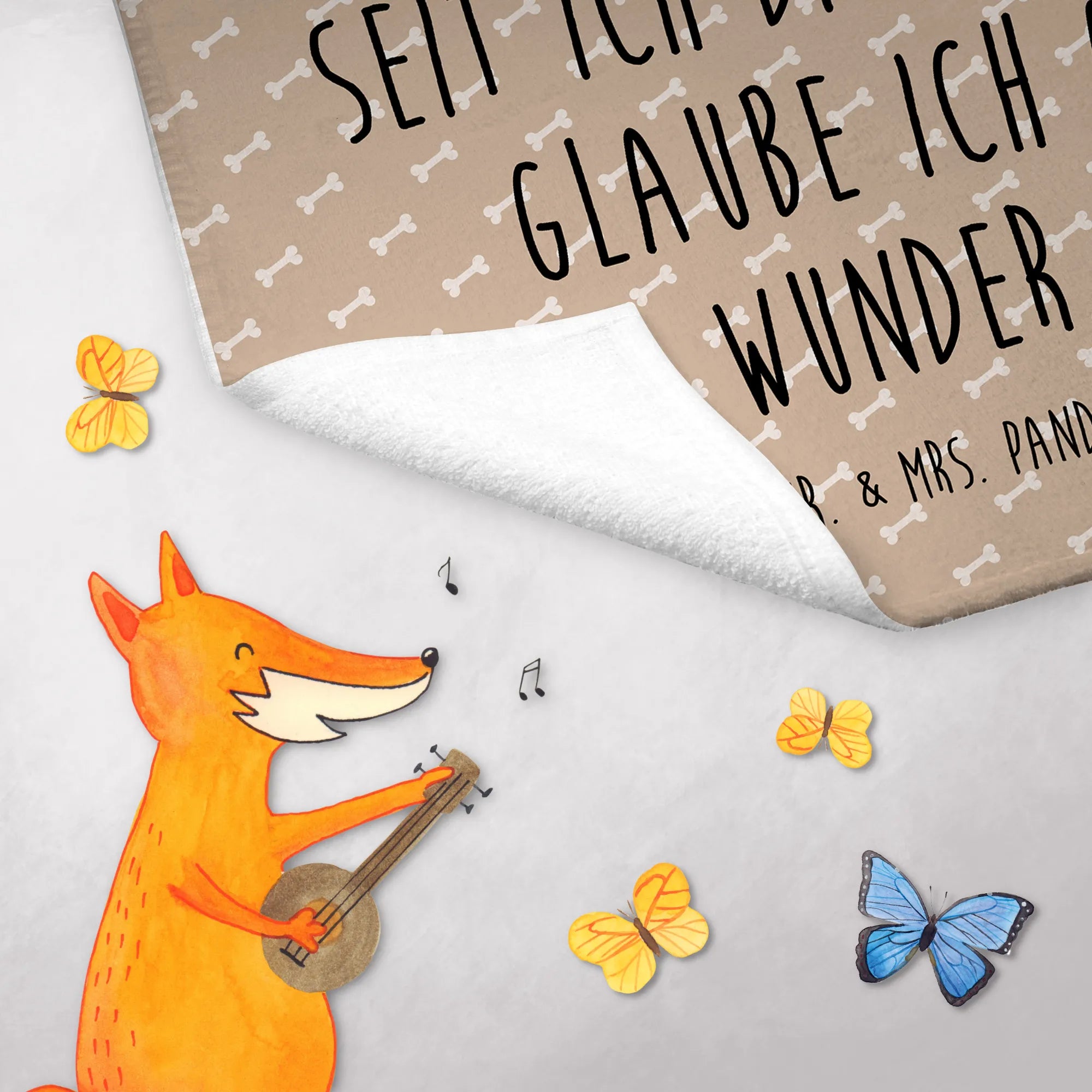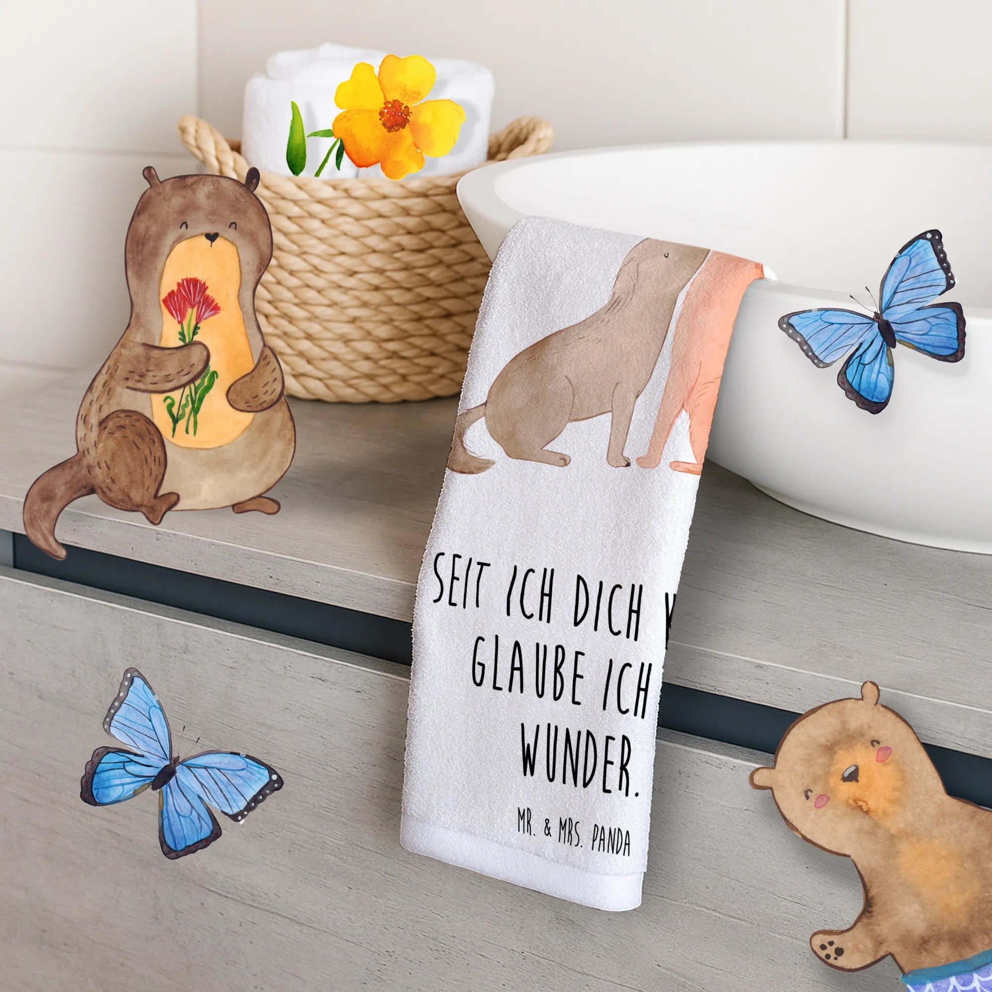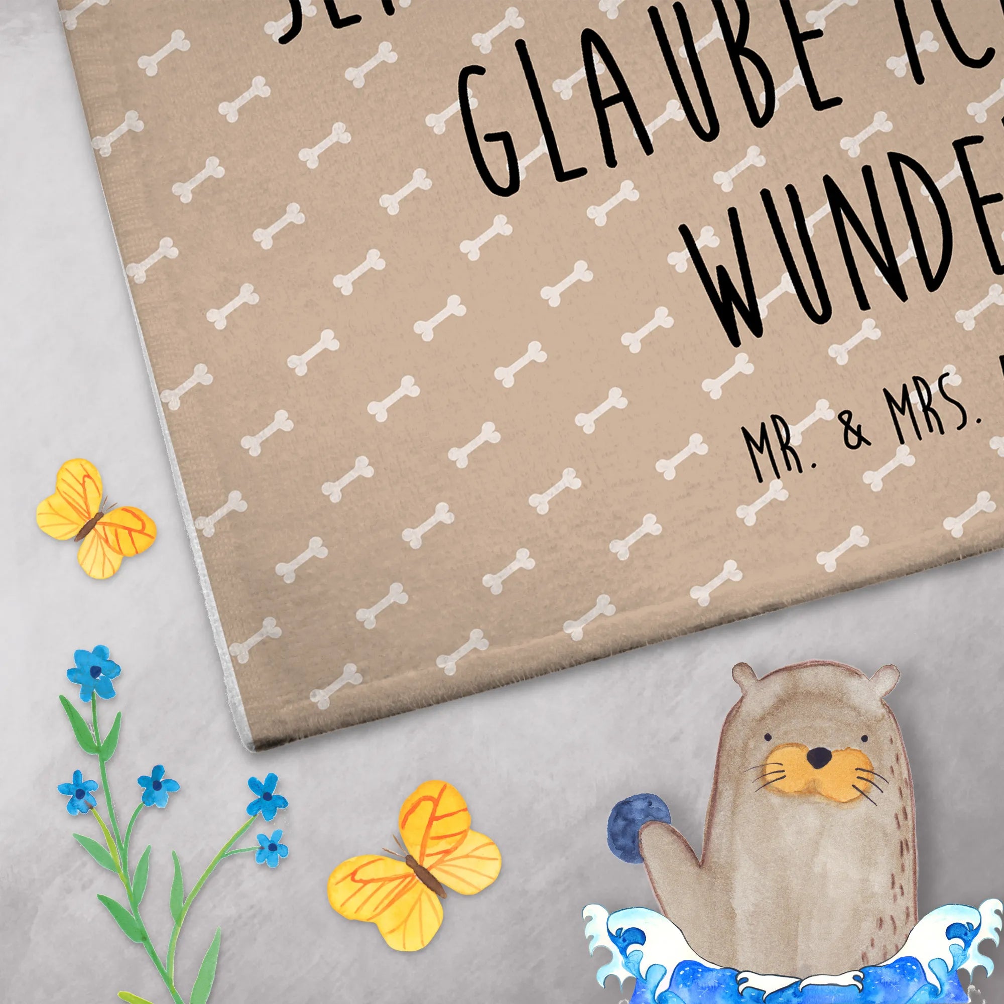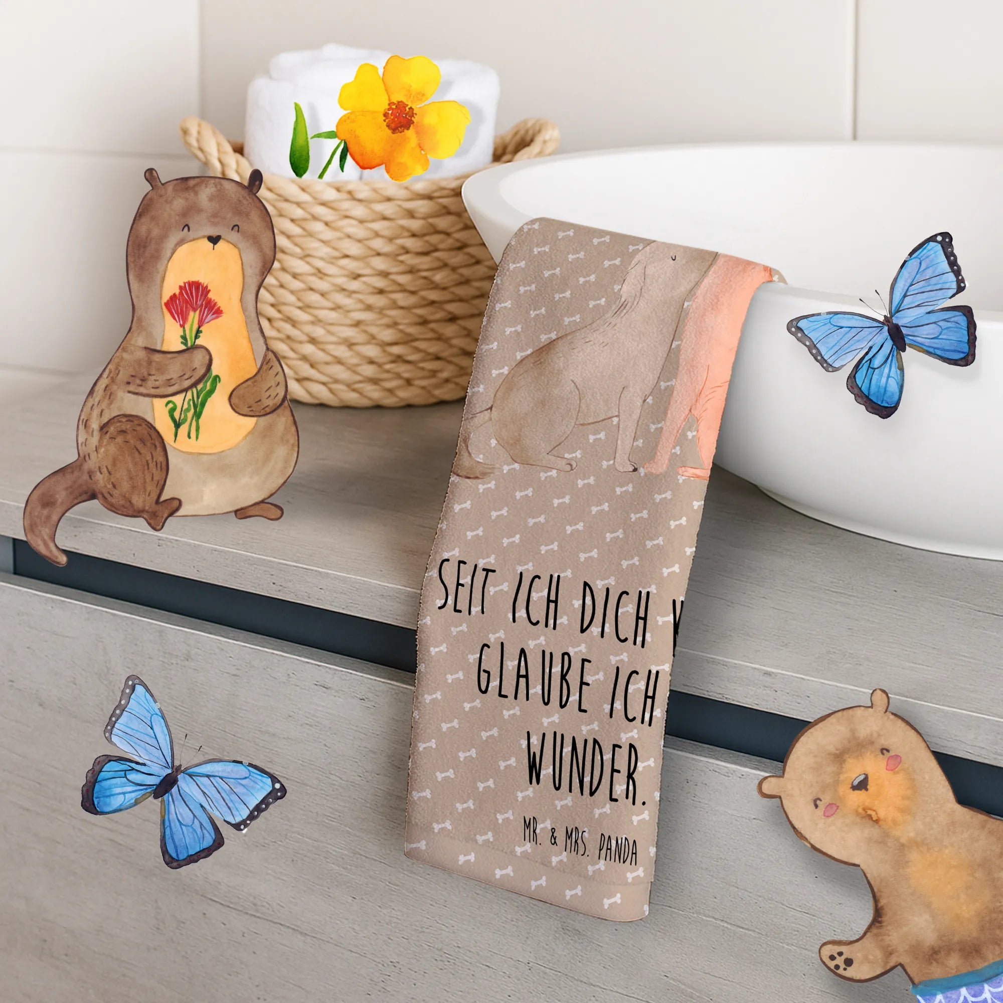 Das Tuch ist allseitig umsäumt, mit einem robusten Saum aus Doppelnaht, was für zusätzliche Langlebigkeit sorgt. Ob als persönliches Geschenk zur Hochzeit, zum Geburtstag oder einfach nur so für treue Freunde – das Gäste-Handtuch von Mr. & Mrs. Panda ist mehr als nur ein praktisches Accessoire; es ist ein liebevolles Statement für alle Hundeliebhaber. Das Motto "Seit ich dich kenne, glaube ich an Wunder" spricht dabei das Herz eines jeden Hundebesitzers an und zaubert ein Lächeln ins Gesicht.