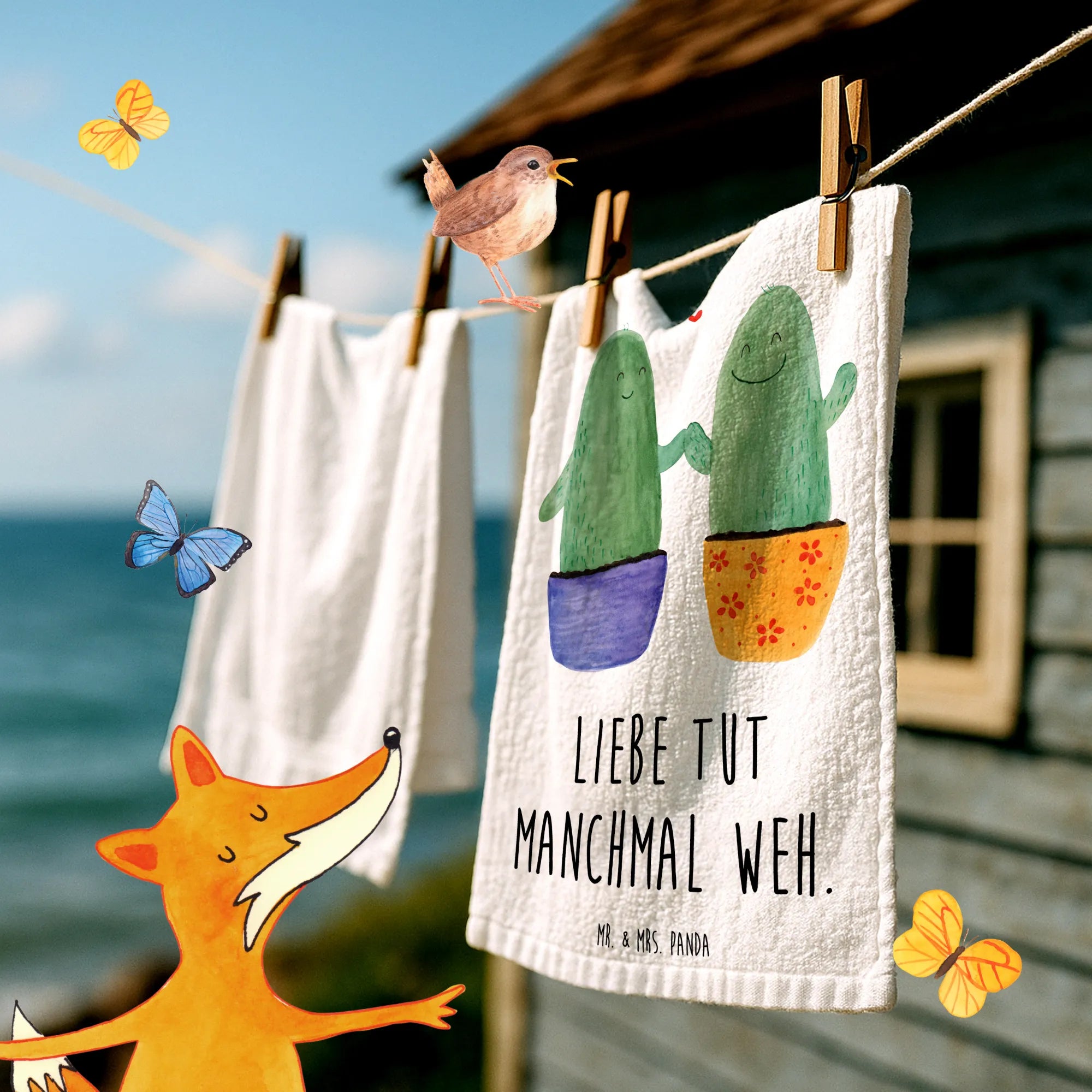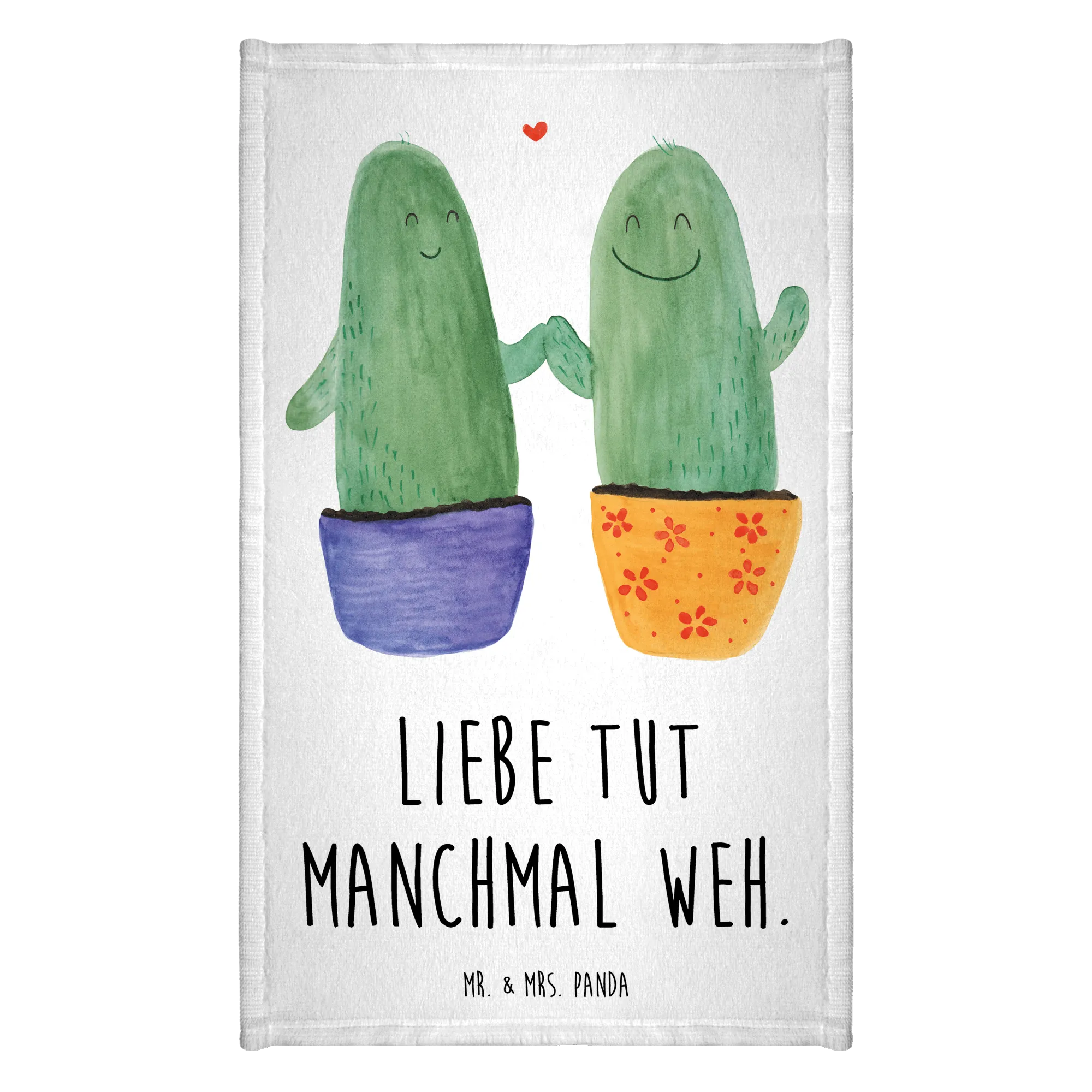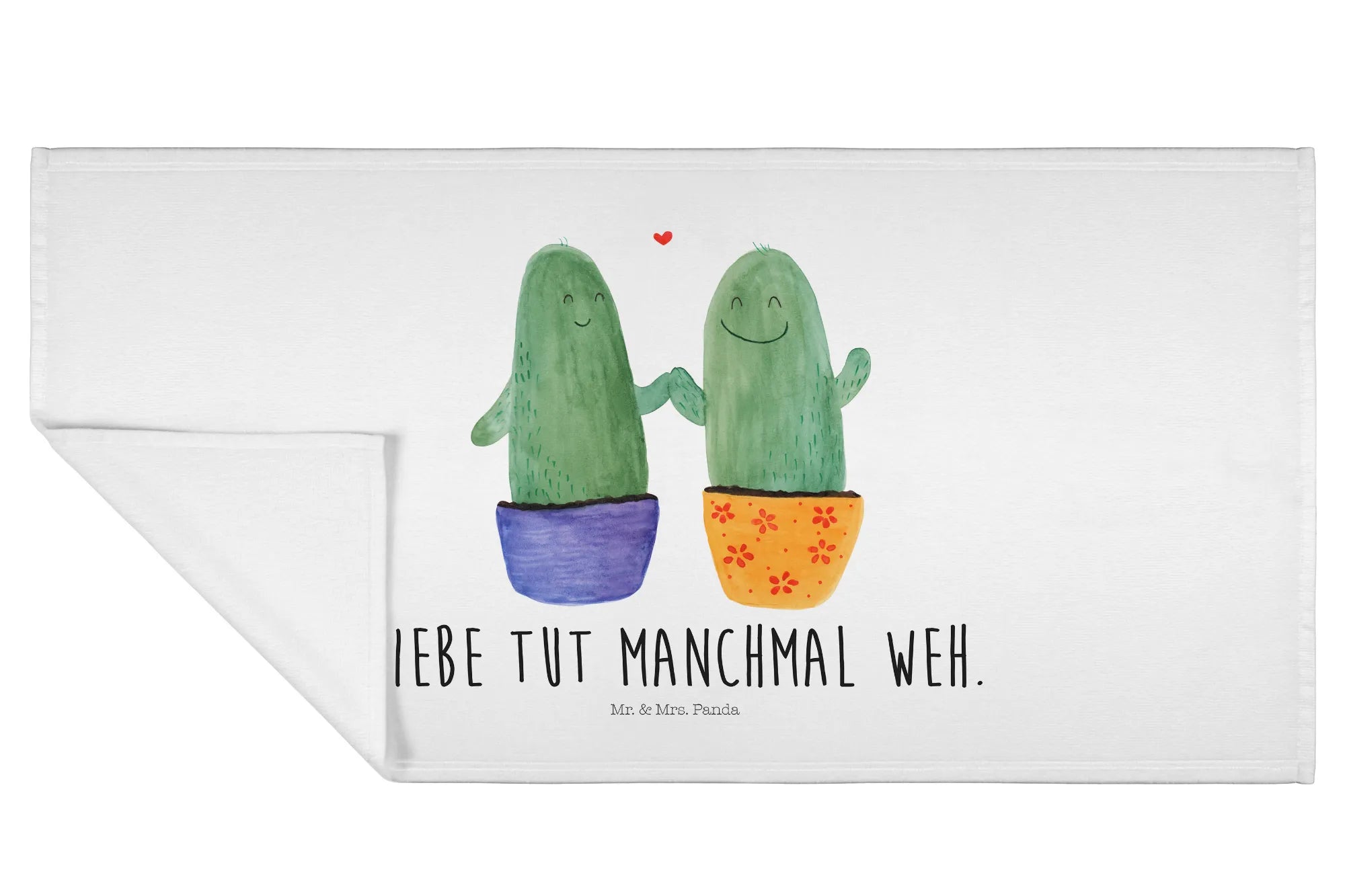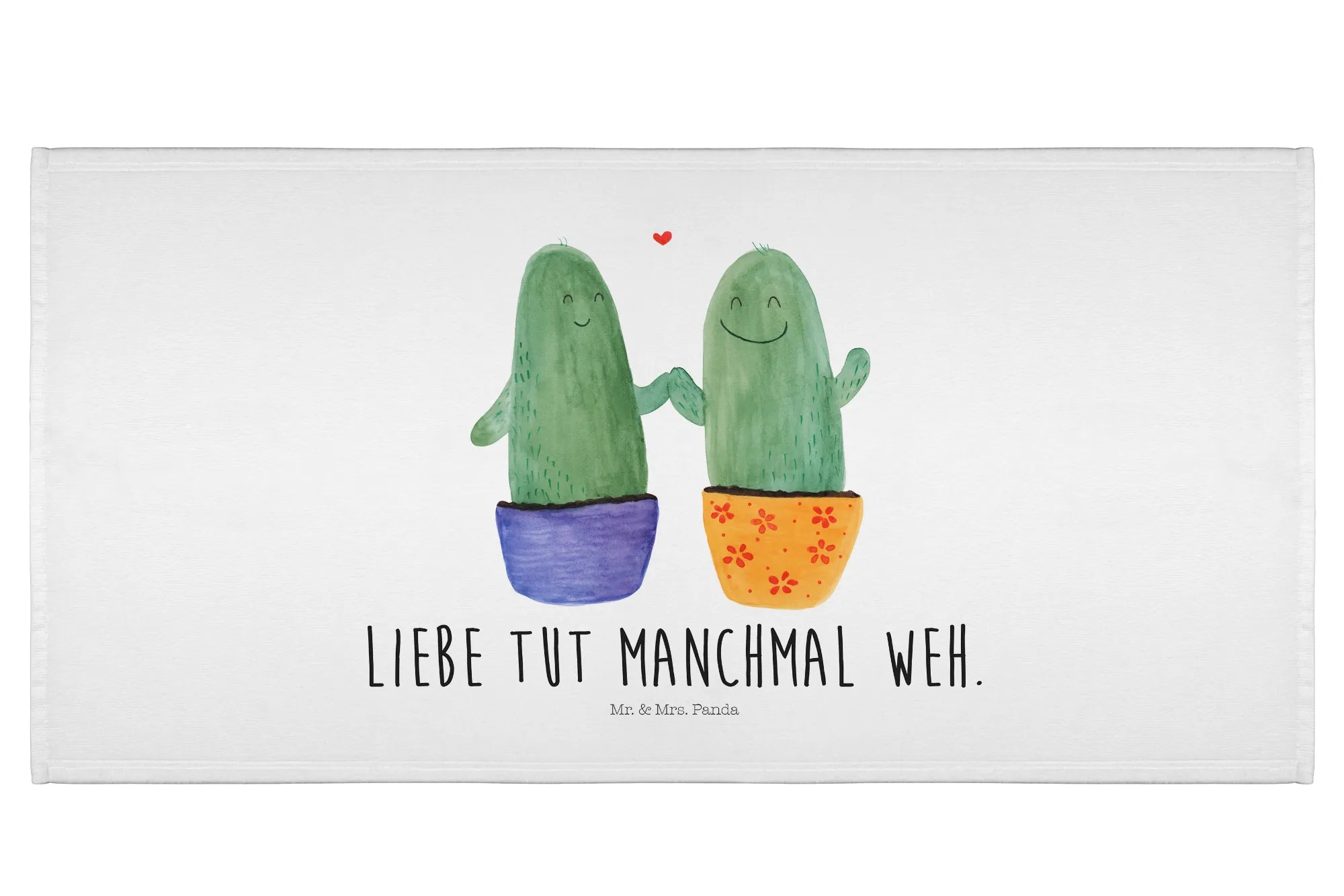 Der Spruch "Liebe tut manchmal weh." verleiht dem Handtuch eine besondere Note und macht es ideal für Pärchen, die nach einem kleinen Trostspender suchen. Es passt perfekt zur Kaktus-Kollektion von Mr. & Mrs. Panda, die lebensfrohe Designs mit positiven Botschaften vereint.