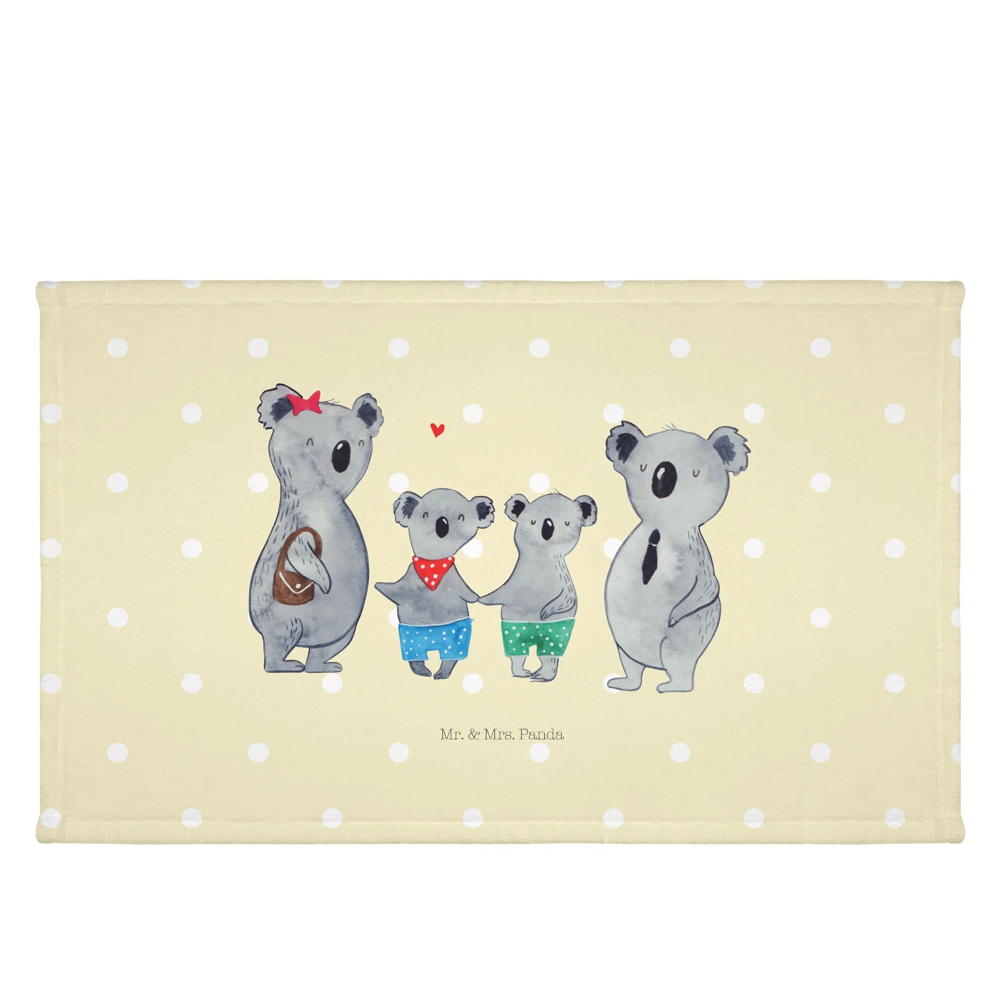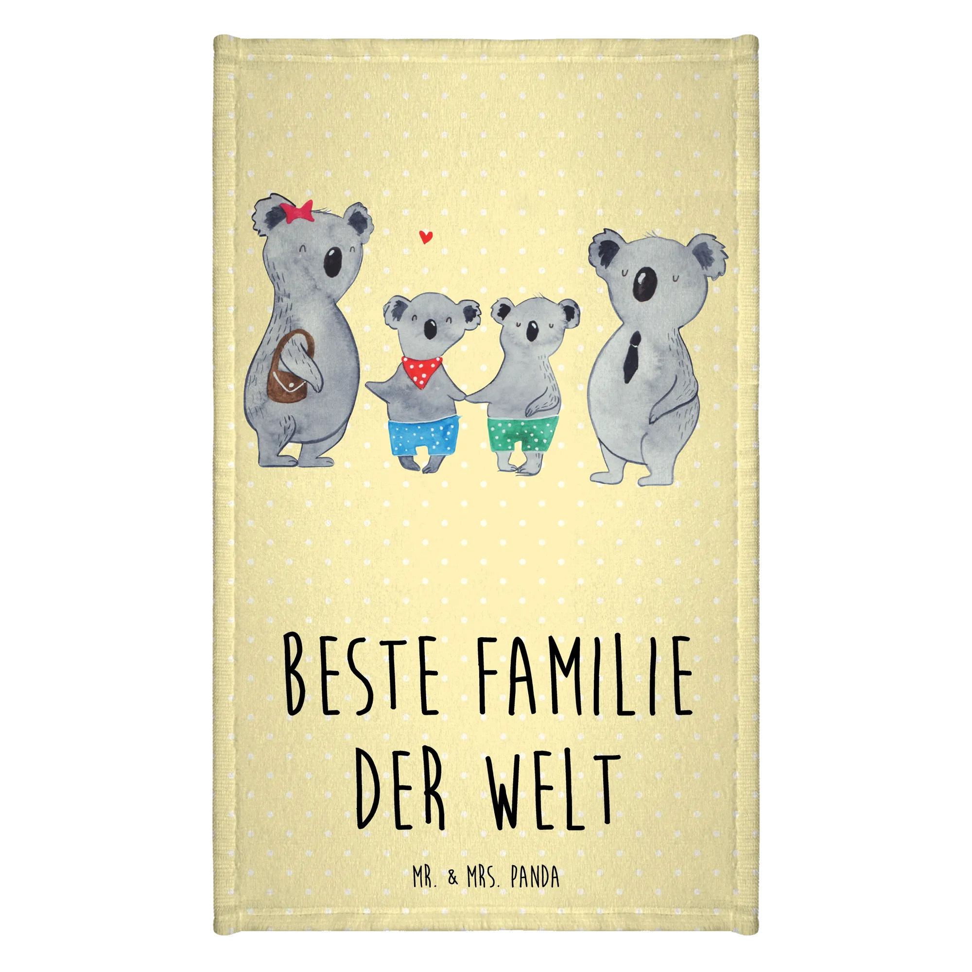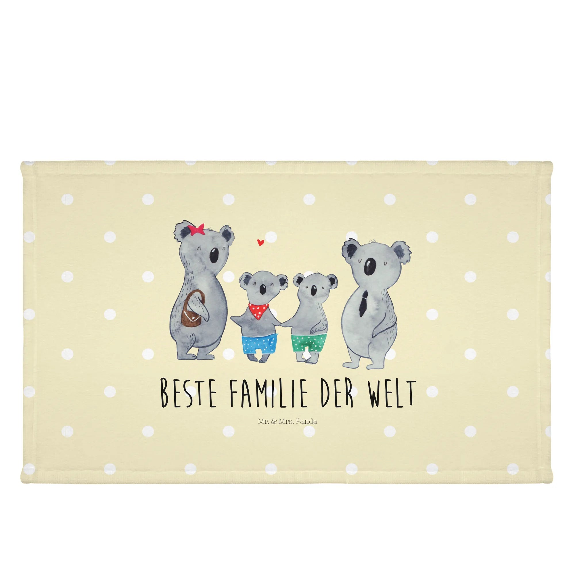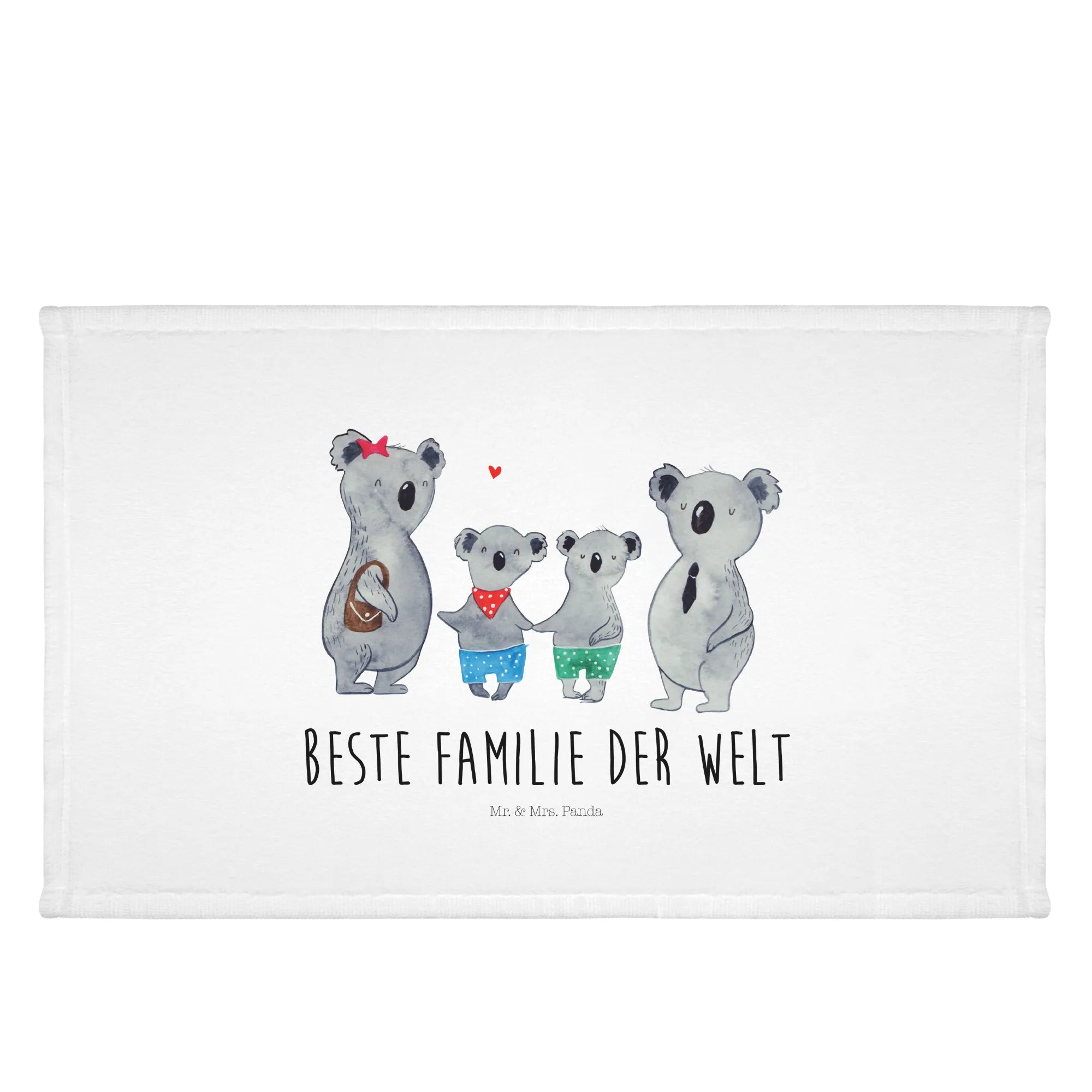 Auf dem Tuch sind vier niedliche Koalas abgebildet, die die Liebe und das Zusammensein einer Familie symbolisieren. Die große Koala-Mama mit ihrem roten Sternchen im Haar und der kleine Koala in den bunten Shorts stehlen definitiv die Show! Es ist nicht nur ein praktisches Accessoire für dein Gästebad, sondern auch ein wunderschönes Dekorationsstück für dein Zuhause.