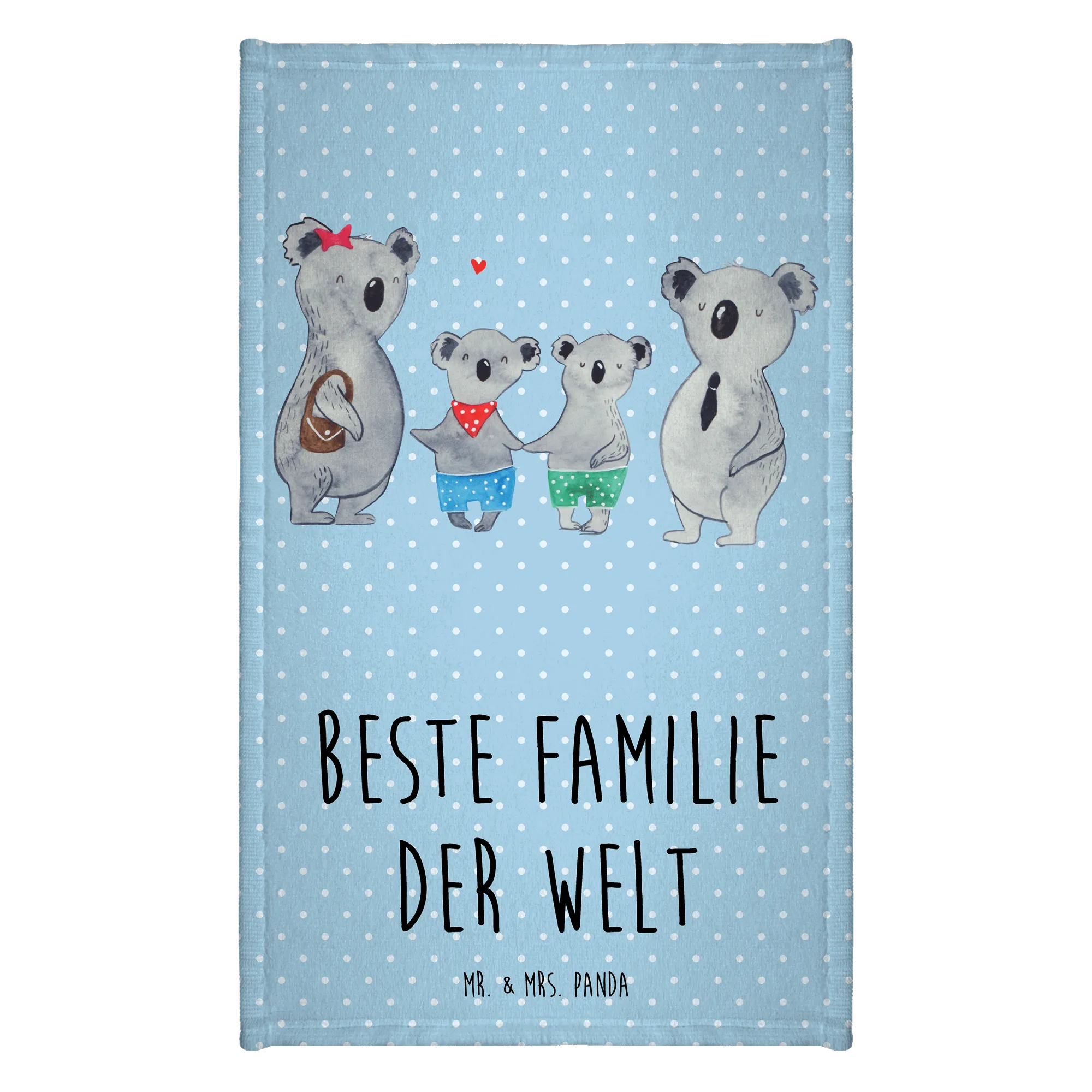 Das 50 x 100 Handtuch "Koala Familie zwei" von Mr. & Mrs. Panda ist das perfekte Geschenk für alle Familienmitglieder! Ob zum Vatertag, Muttertag oder einfach als Überraschung für deine liebsten Verwandten – dieses Handtuch bringt Freude und ein Lächeln in jedes Badezimmer. Mit seinem bunten, liebevoll gestalteten Design zeigt es eine Familie von vier Koalas in einer herzlichen Darstellung, die die innige Verbundenheit innerhalb der Familie symbolisiert.