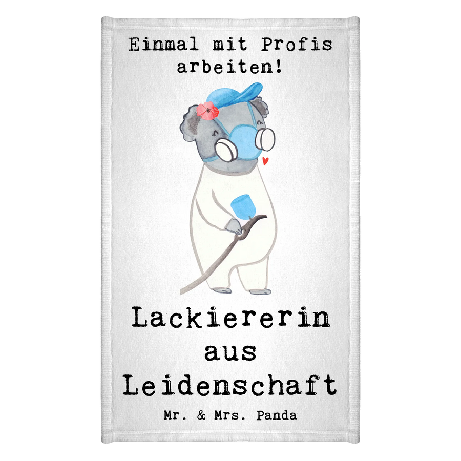 Entdecke das perfekte Gästetuch für jeden Lackierer oder Lackiererin, die ihre Leidenschaft für den Beruf stolz zur Schau stellen möchten! Das liebevoll gestaltete Handtuch mit dem Motiv "Lackiererin aus Leidenschaft" aus unserer einzigartigen Berufe Kollektion von Mr. & Mrs. Panda wird schnell zum absoluten Must-Have in jedem Badezimmer.