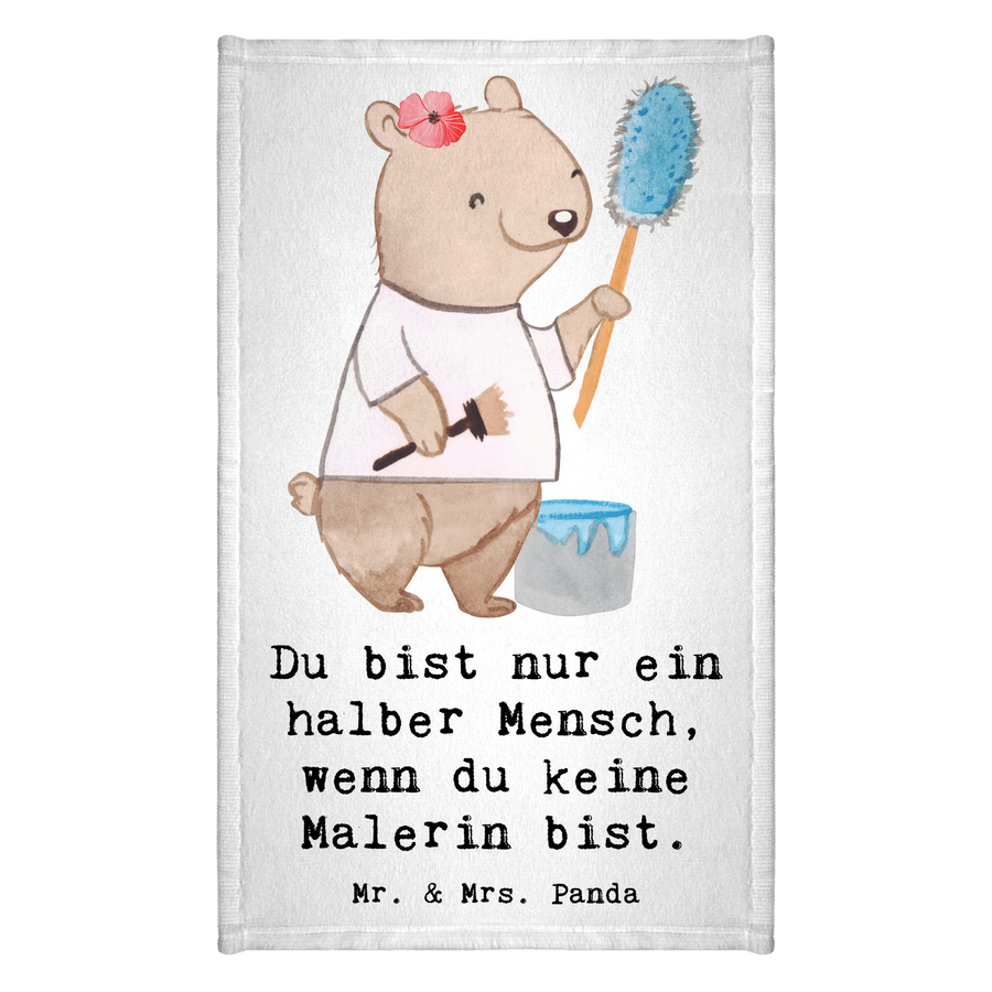 Das Gästehandtuch "Malerin mit Herz" aus der kreativen Kollektion von Mr. & Mrs. Panda ist das perfekte Geschenk für alle Malerinnen, Malermeister und jeden, der mit Herzblut den Pinsel schwingt.