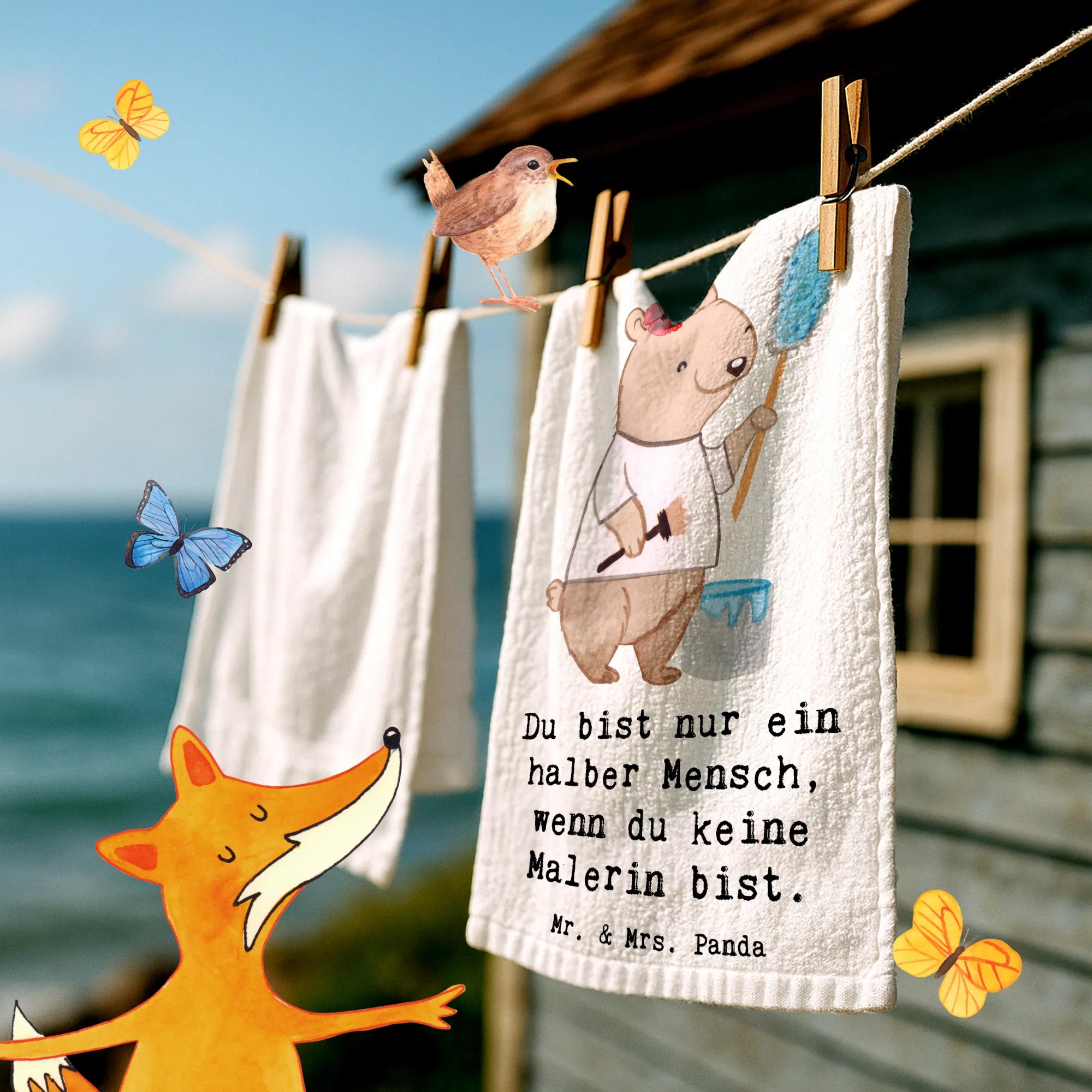 Gästehandtuch Malerin Herz – Mr. & Mrs. Panda
