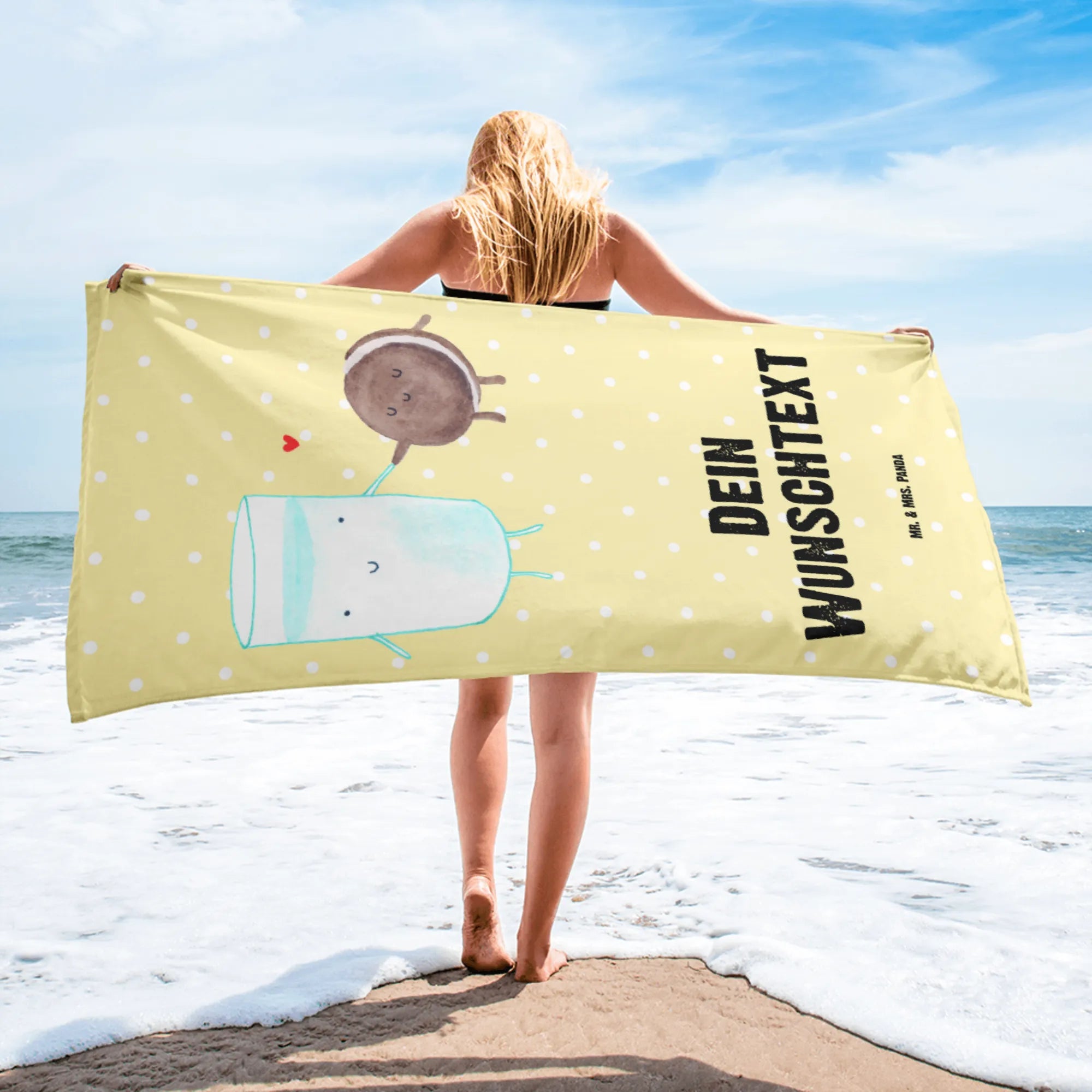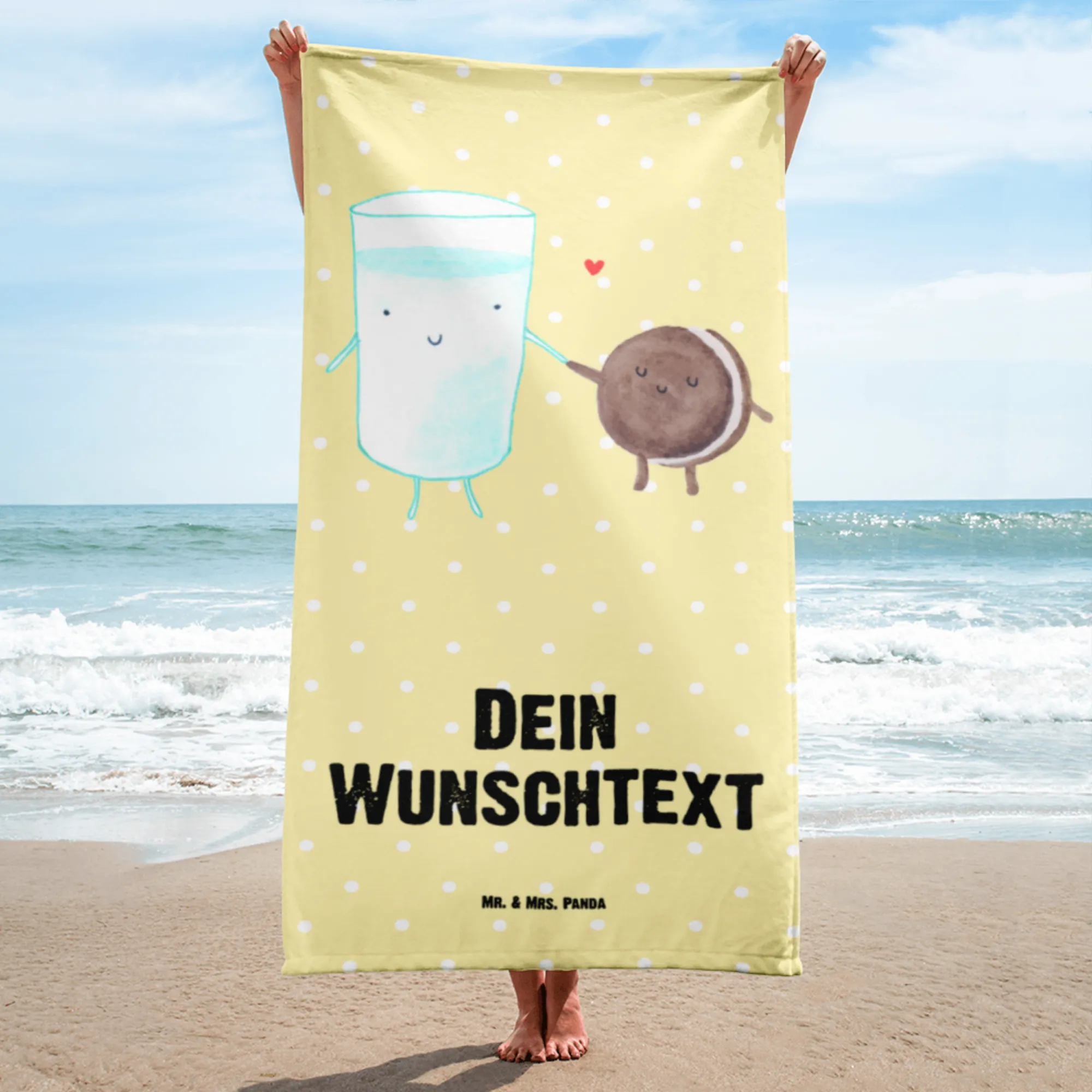 XXL Badehandtuch mit Namen Milch Keks – Mr. & Mrs. Panda