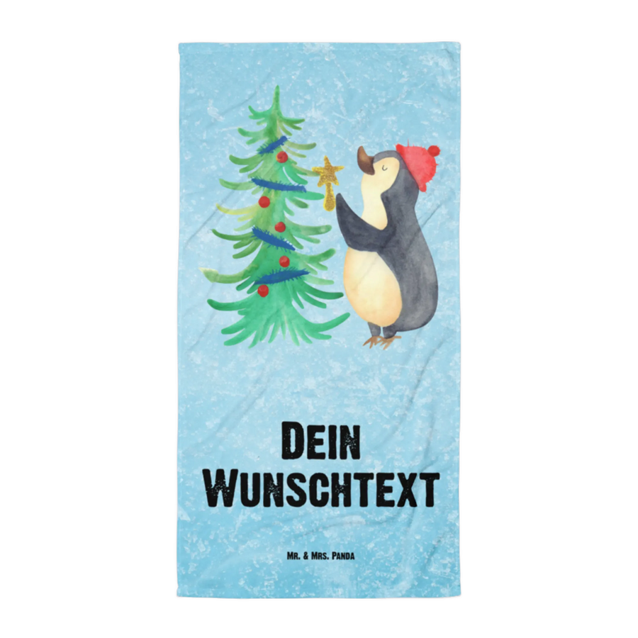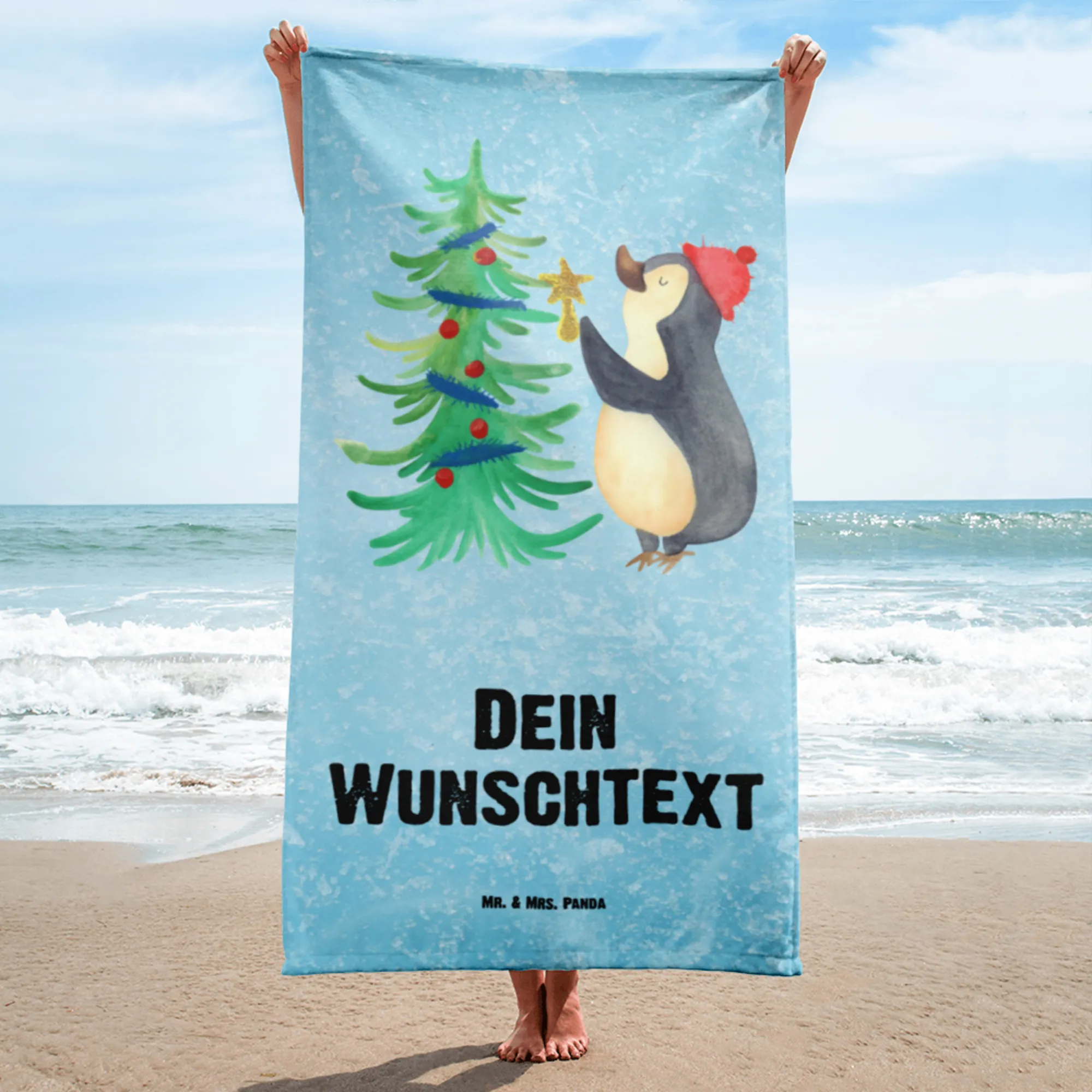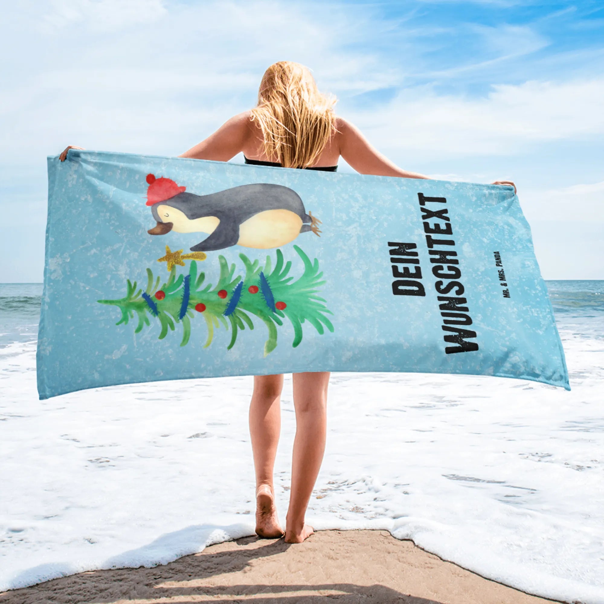XXL Badehandtuch mit Namen Pinguin Weihnachtsbaum