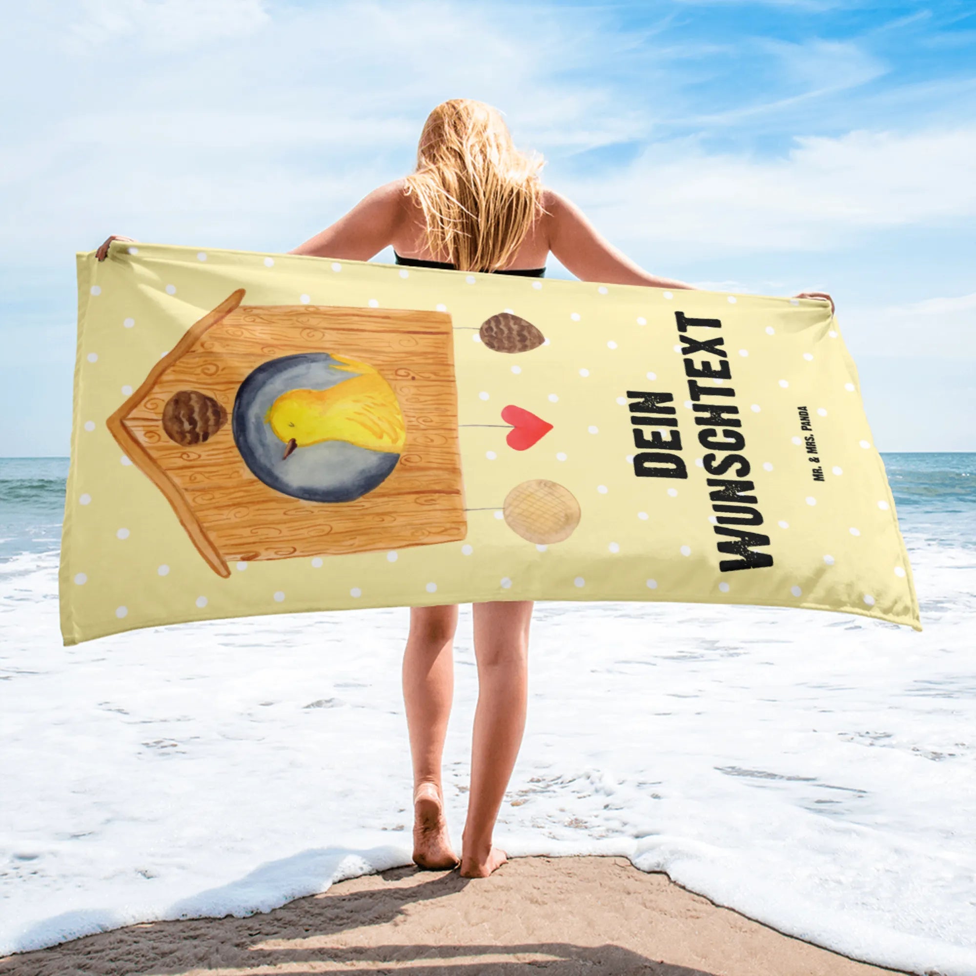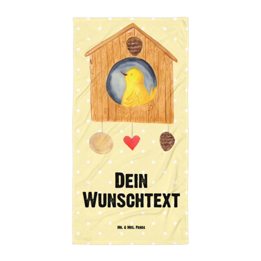 Das personalisierte Handtuch mit dem süßen Motiv Vogelhaus von Mr. & Mrs. Panda ist der perfekte Begleiter für jeden Tag. Egal, ob nach dem Duschen, am Strand oder in der Sauna – dieses Badetuch bietet dir alles, was du brauchst!