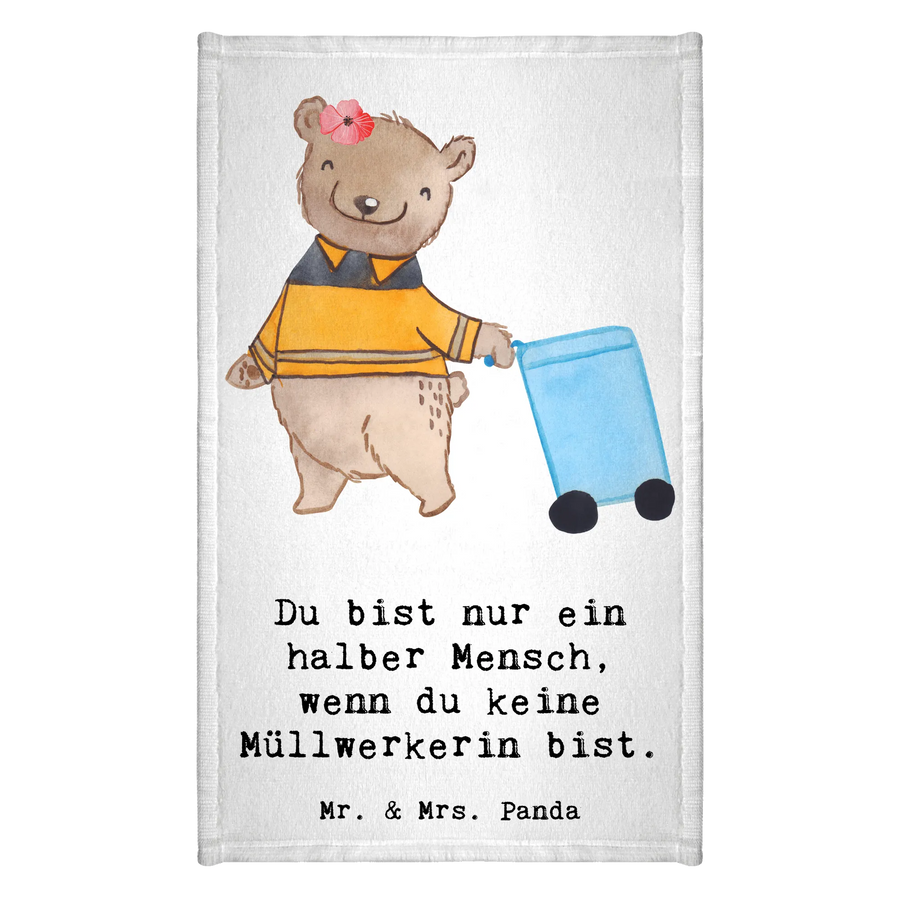 Liebevoll gestaltet, ziert ein niedlicher Bär, der eine Papiertonne hinter sich herzieht, das Design. Dazu kommt der originelle Spruch: 'Du bist nur ein halber Mensch, wenn du keine Müllwerkerin bist.' Dieses Handtuch ist mehr als nur ein Geschenk, es ist ein Zeichen der Anerkennung und Wertschätzung.