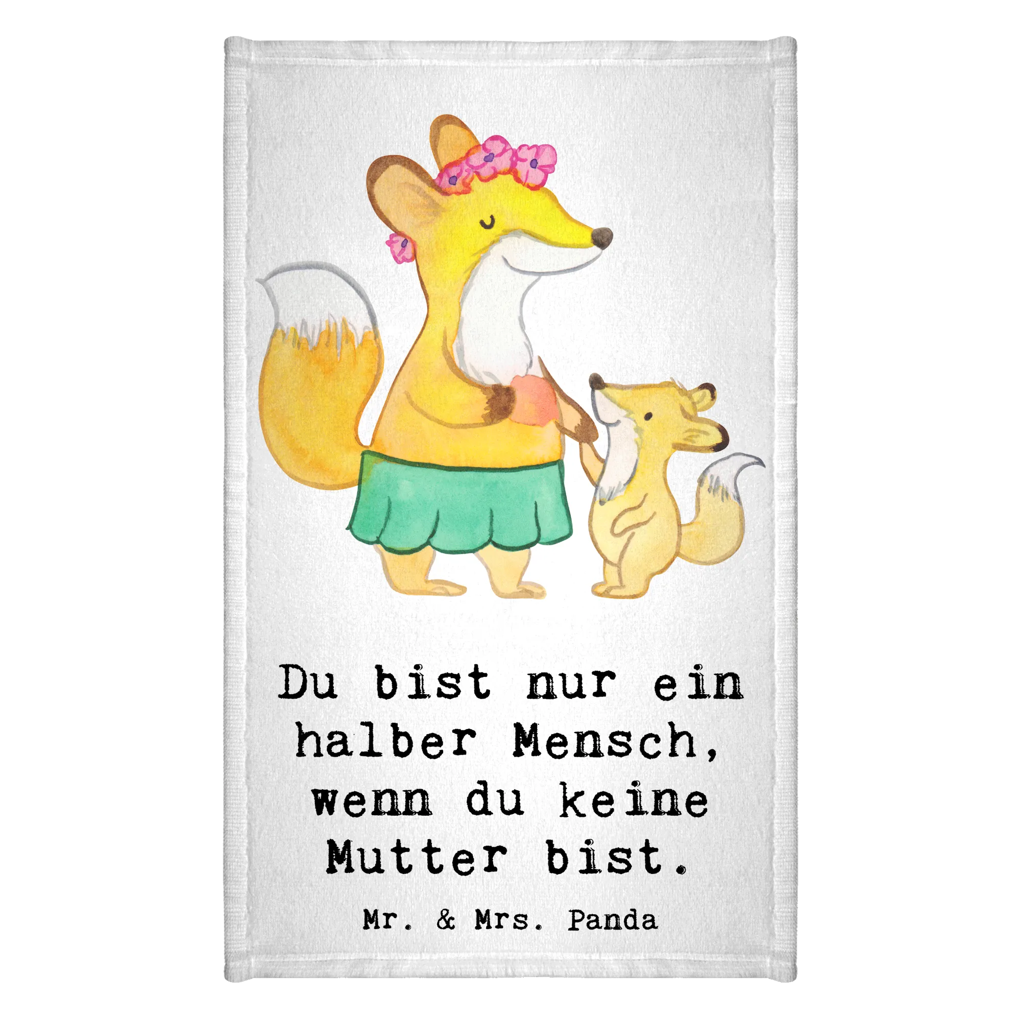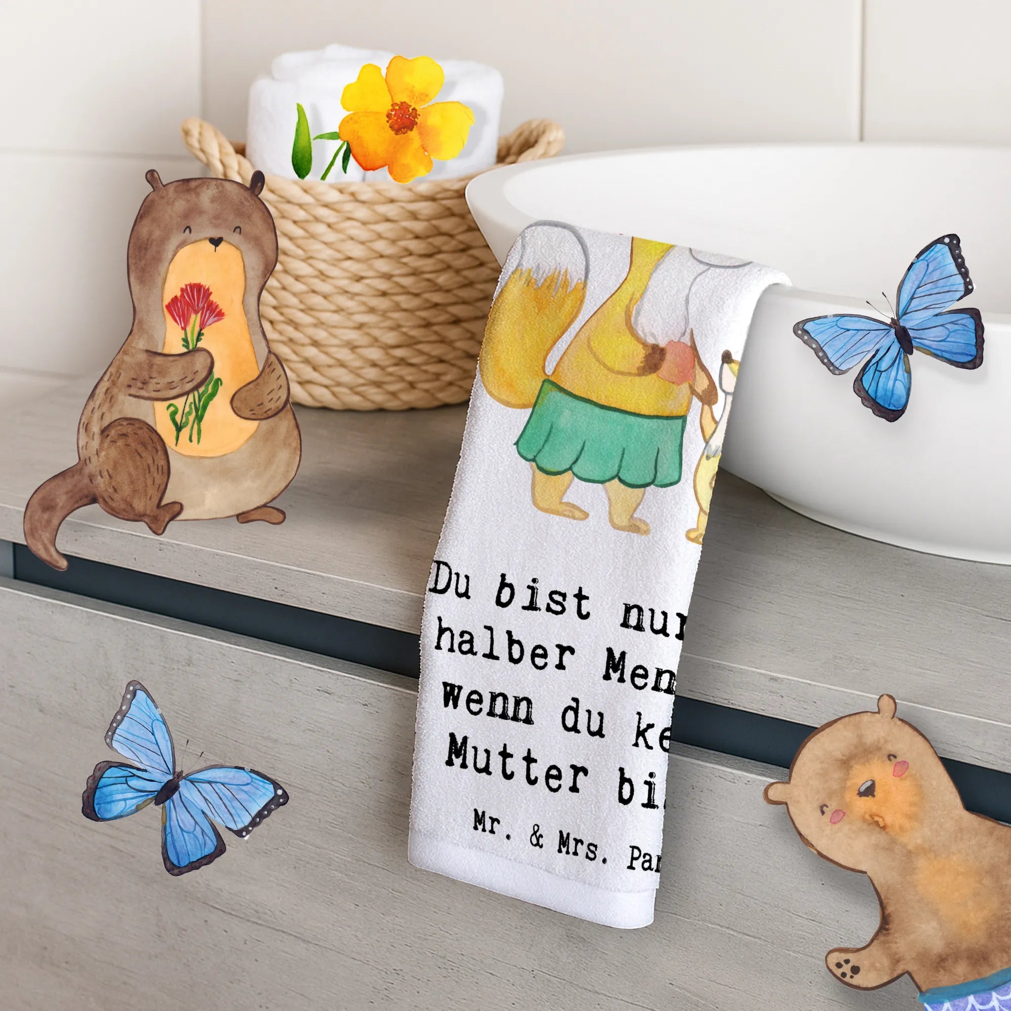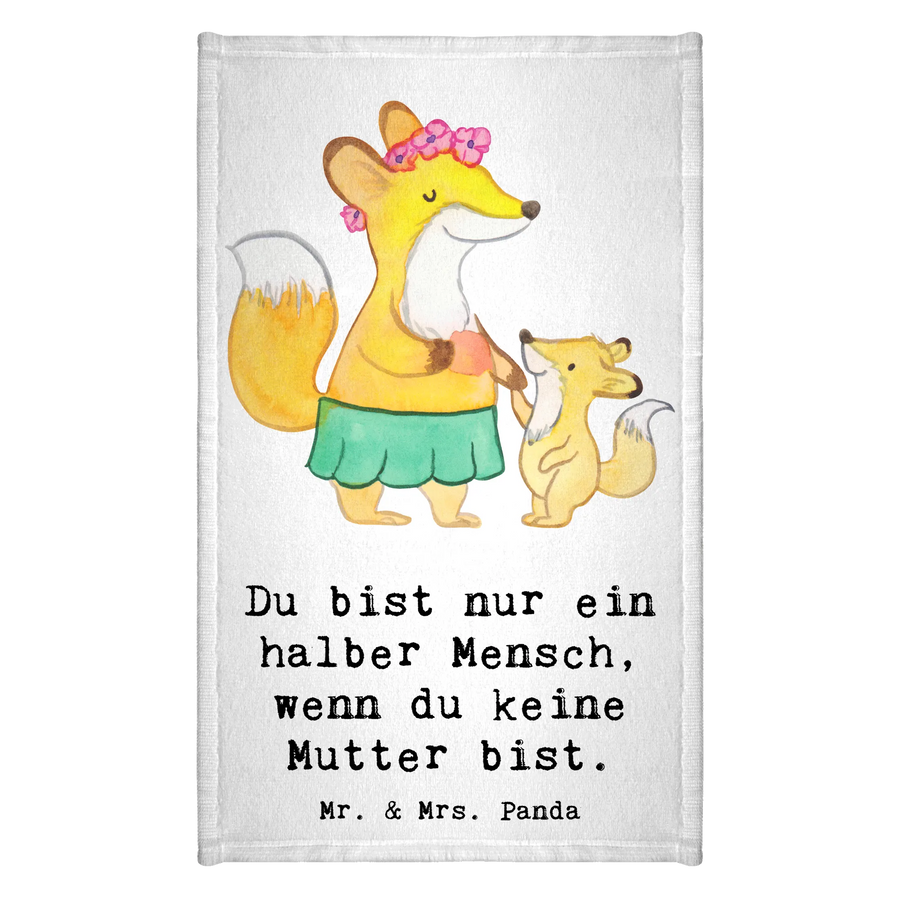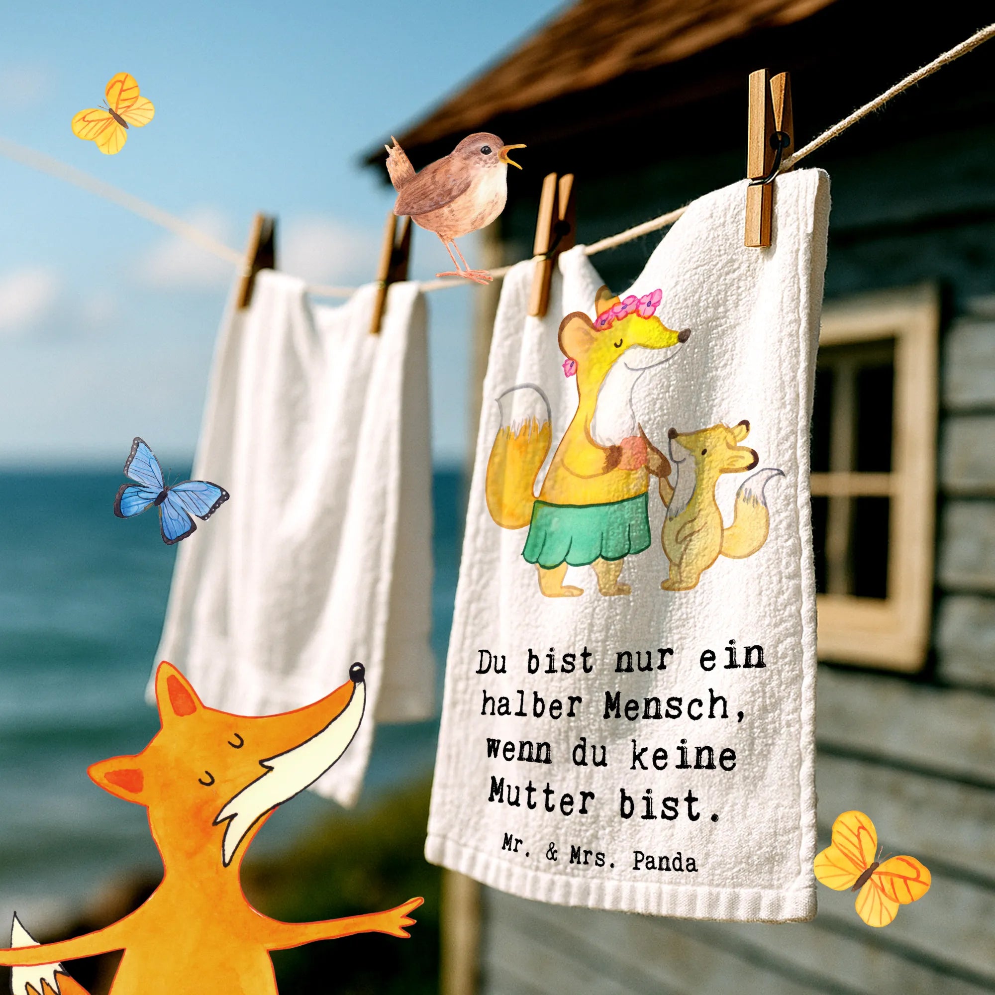Unser Mr. & Mrs. Panda Gästehandtuch "Mutter mit Herz" aus der liebevollen Berufe-Kollektion ist genau das richtige Präsent für Mütter, Kolleginnen oder Mitarbeiterinnen. Das Motiv zeigt einen süßen Fuchs mit Blumenkranz, der ein fröhliches Fuchskind an der Hand hält, und wird ergänzt durch den herzlichen Spruch: „Du bist nur ein halber Mensch, wenn du keine Mutter bist.“