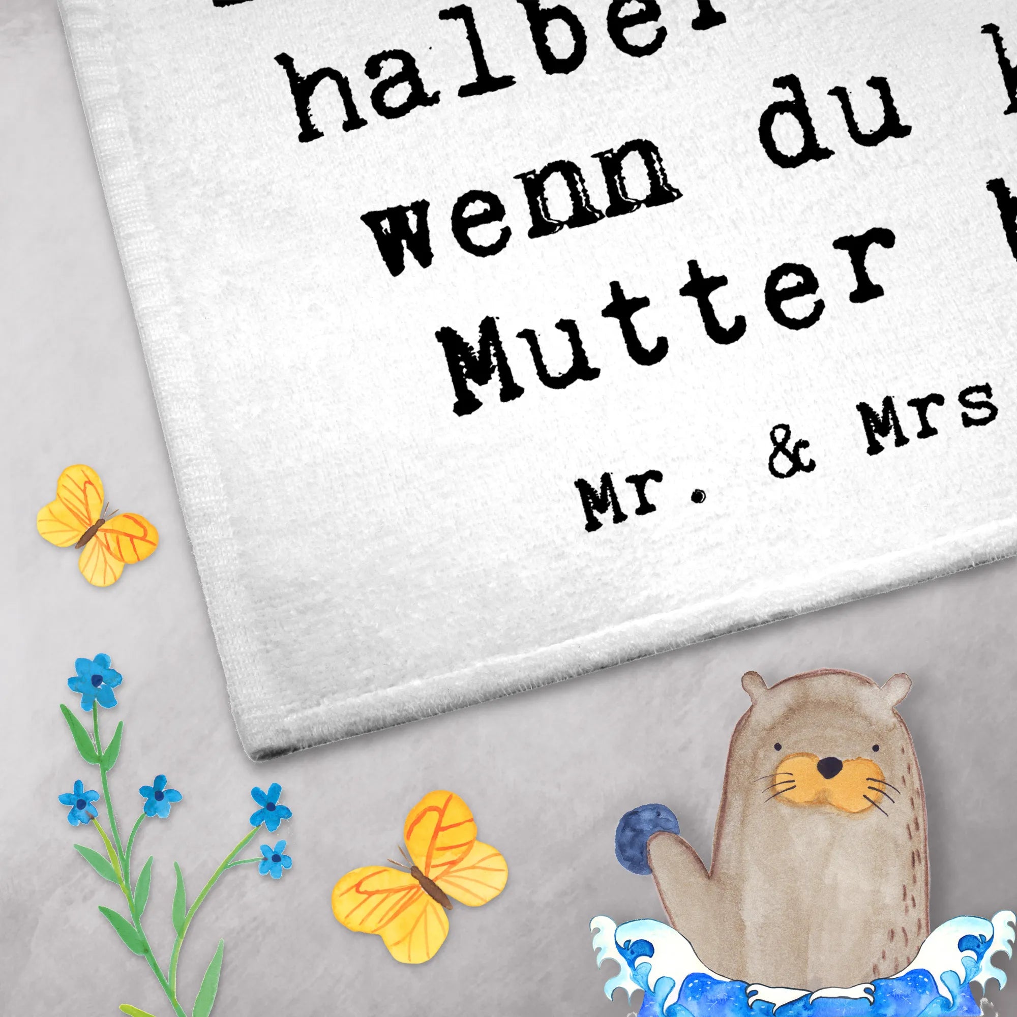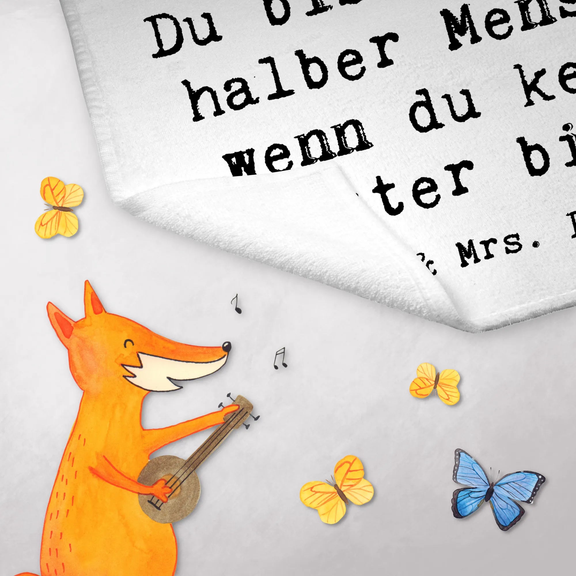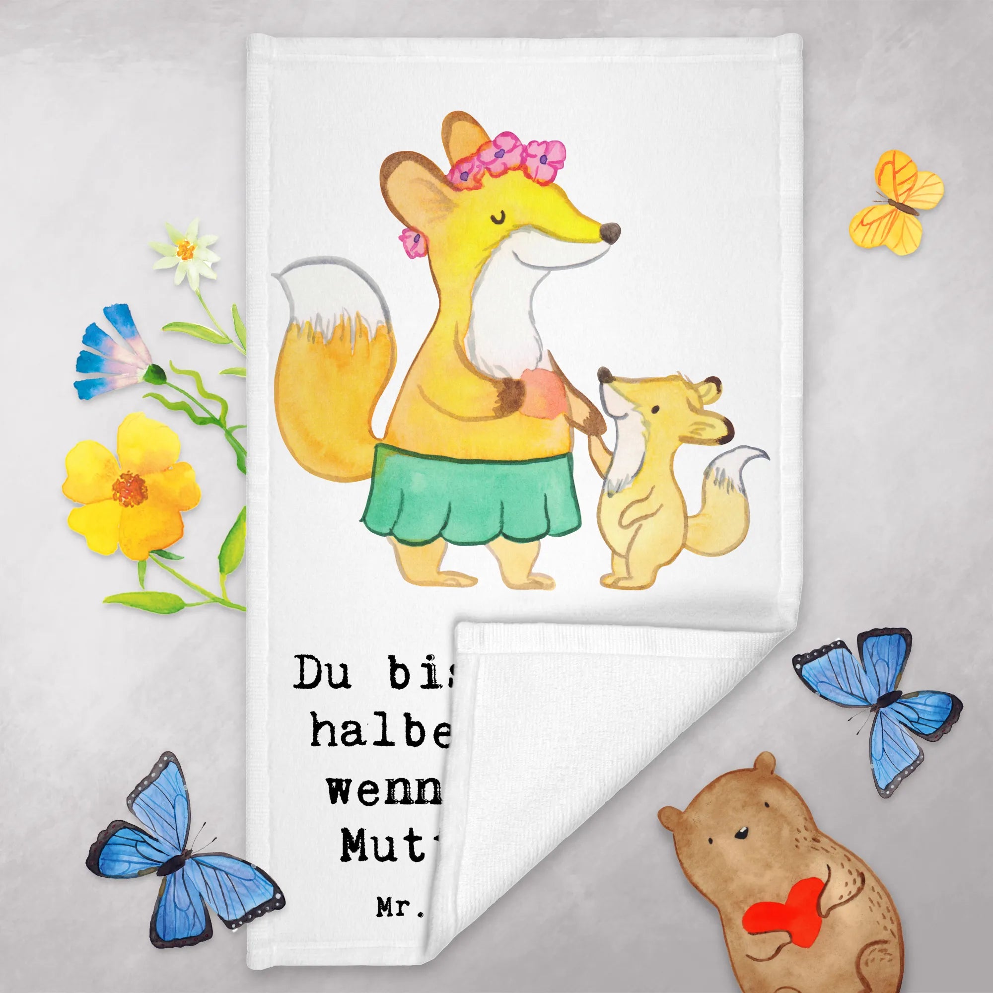 Unser Mr. & Mrs. Panda Gästehandtuch "Mutter mit Herz" aus der liebevollen Berufe-Kollektion ist genau das richtige Präsent für Mütter, Kolleginnen oder Mitarbeiterinnen. Das Motiv zeigt einen süßen Fuchs mit Blumenkranz, der ein fröhliches Fuchskind an der Hand hält, und wird ergänzt durch den herzlichen Spruch: „Du bist nur ein halber Mensch, wenn du keine Mutter bist.“