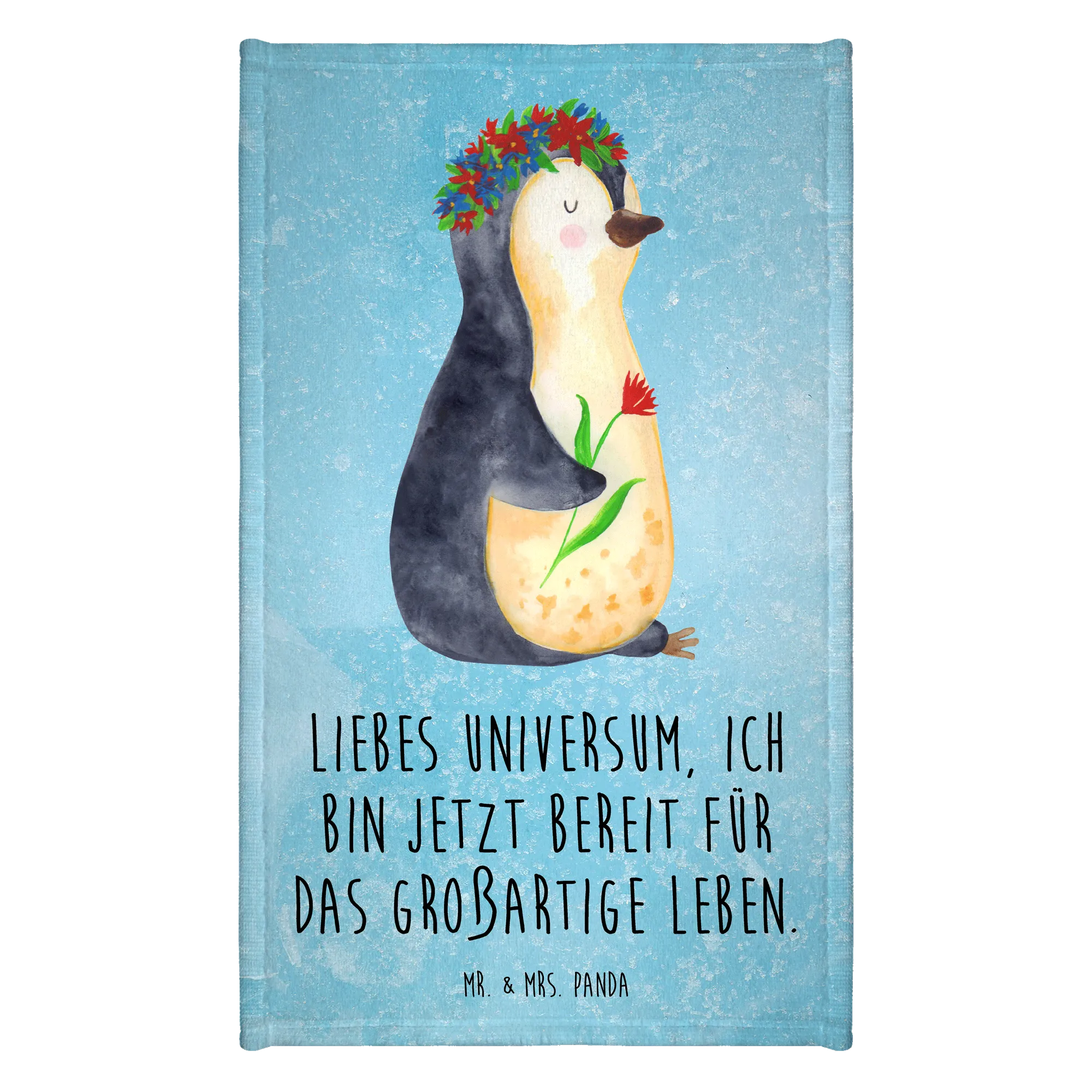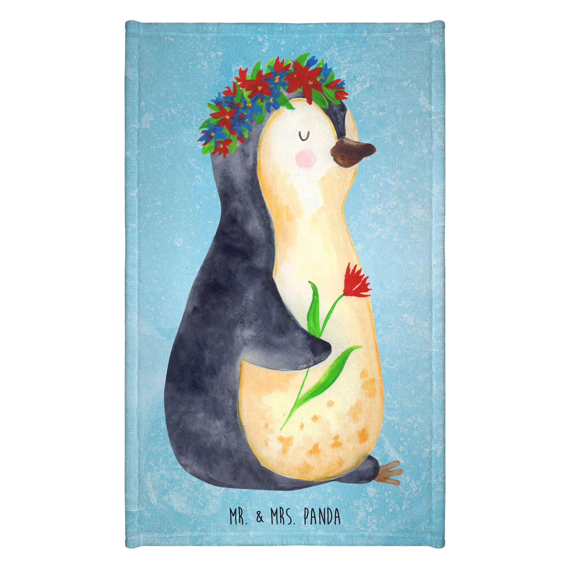 Das süße Gästehandtuch mit dem bezaubernden Pinguin-Motiv Blumenkranz von Mr. & Mrs. Panda ist der ideale Begleiter für dein Badezimmer. Mit seinen bunten, strahlenden Farben bringt es Lebensfreude und eine fröhliche Atmosphäre in jeden Raum.