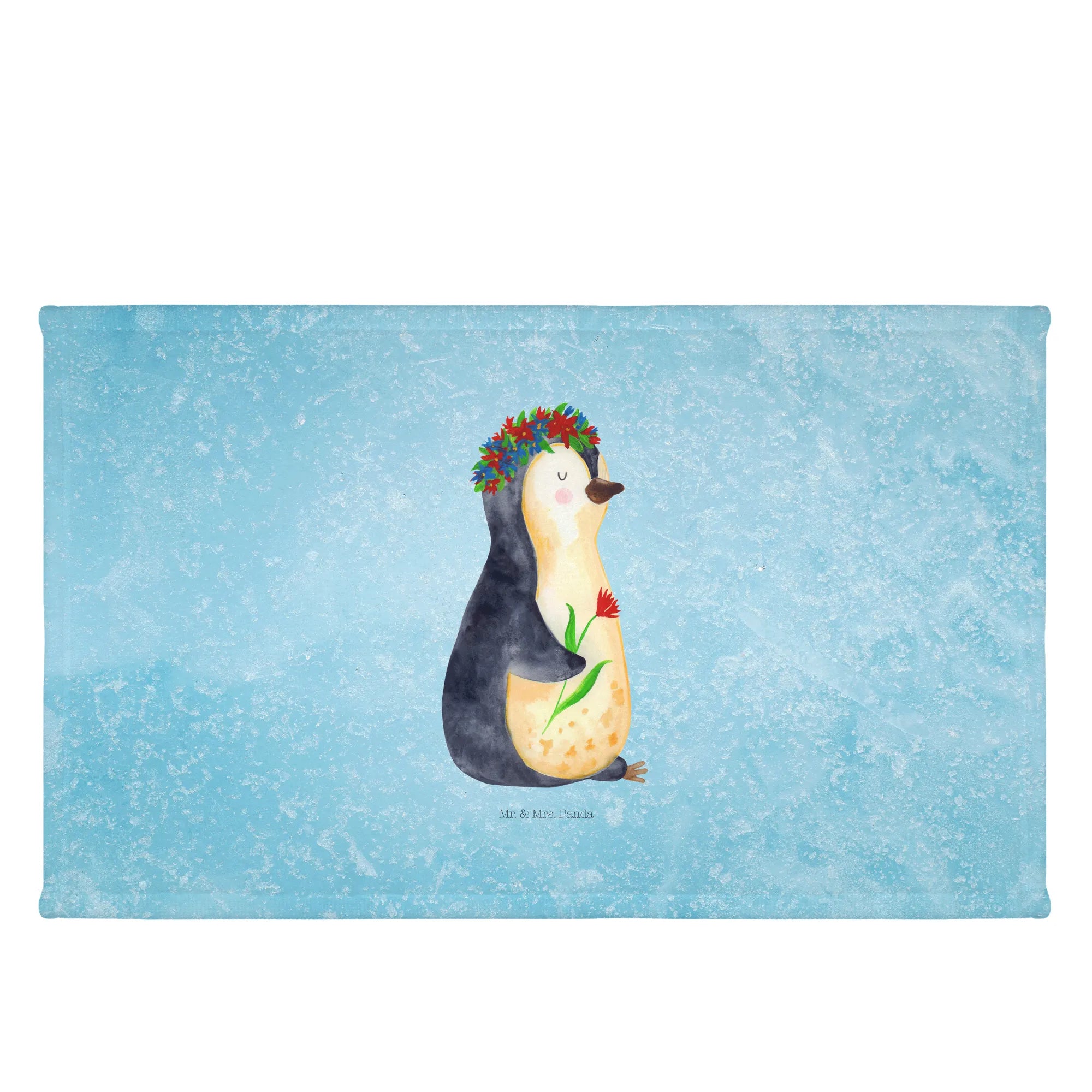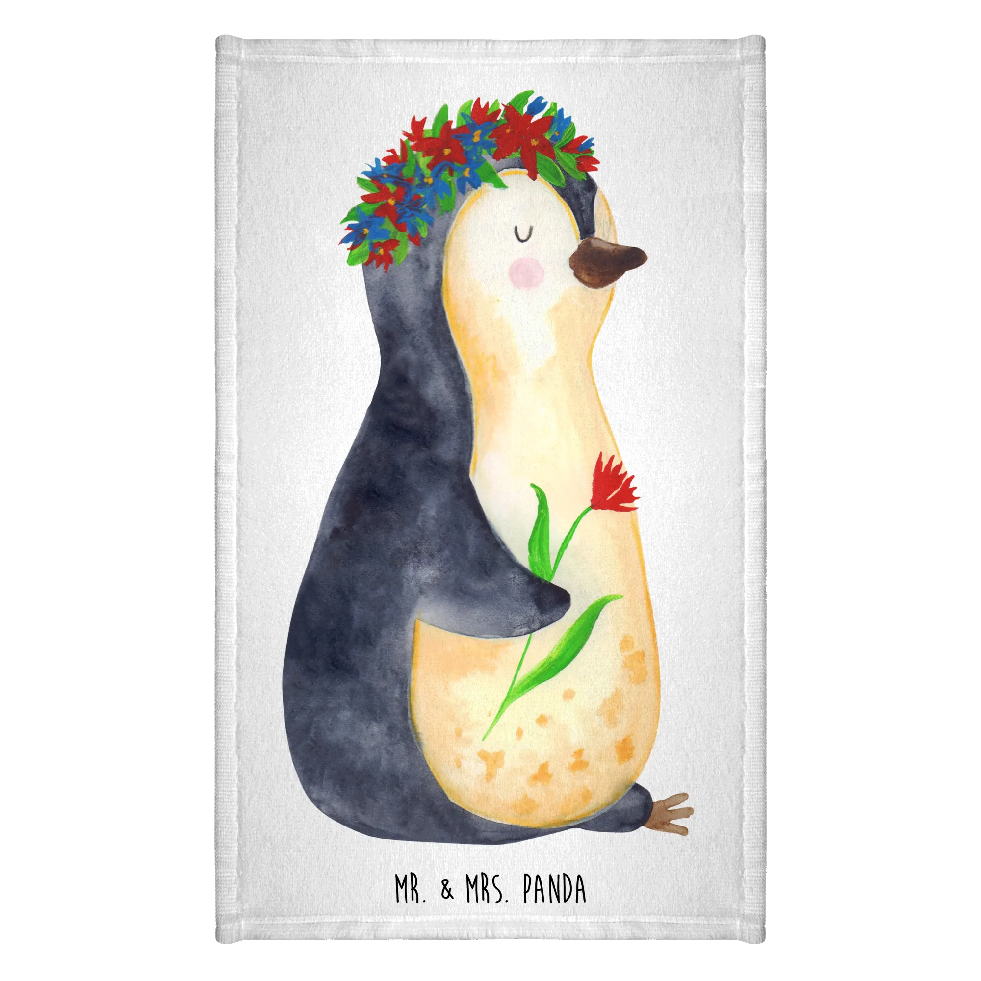 Entdecke unser bezauberndes 50 x 100 cm Handtuch mit dem süßen Pinguin Blumenkranz-Motiv aus der Pinguin - Kollektion von Mr. & Mrs. Panda!