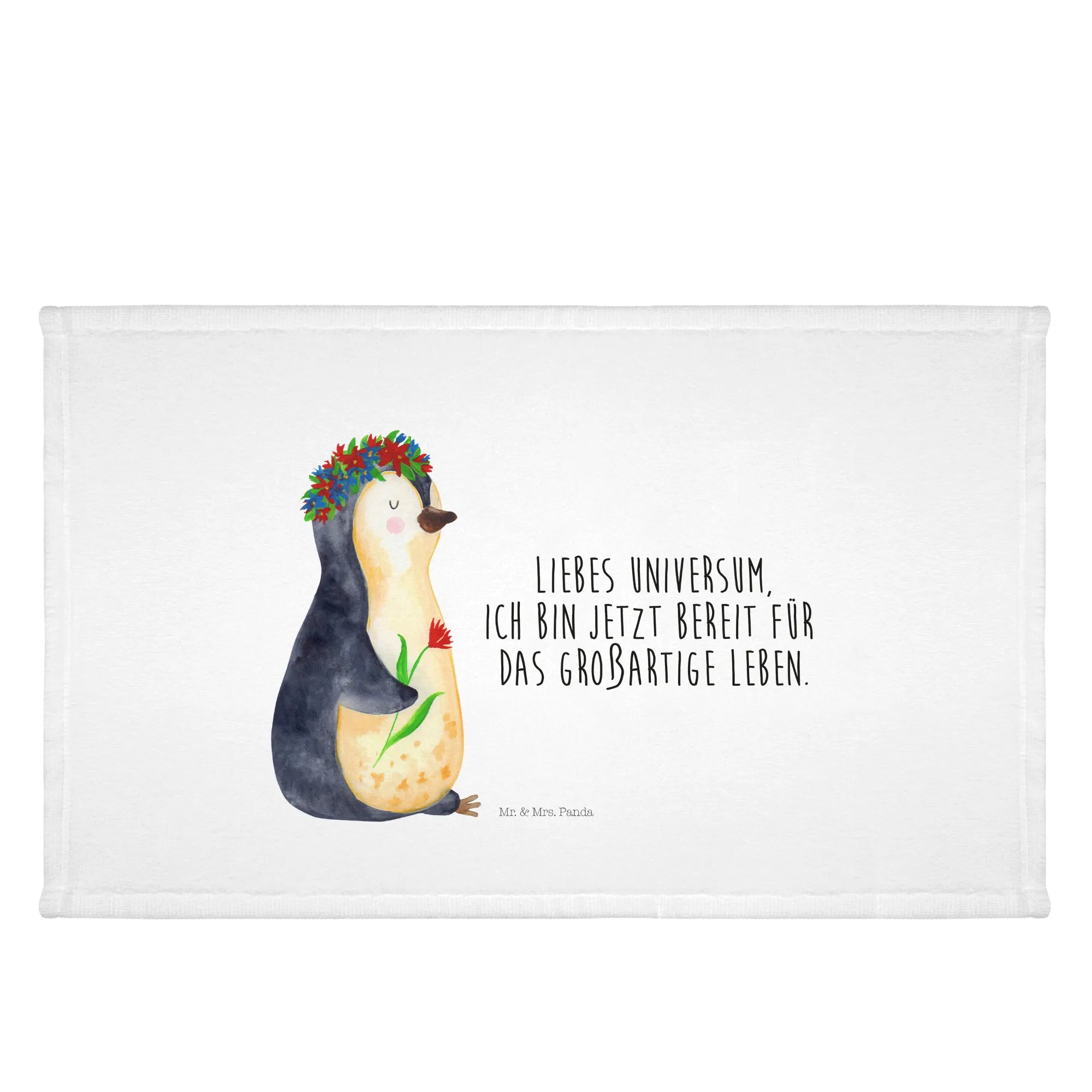 Gästehandtuch Pinguin Blumen - 50 x 100 Handtuch - mit Spruch - Weiß