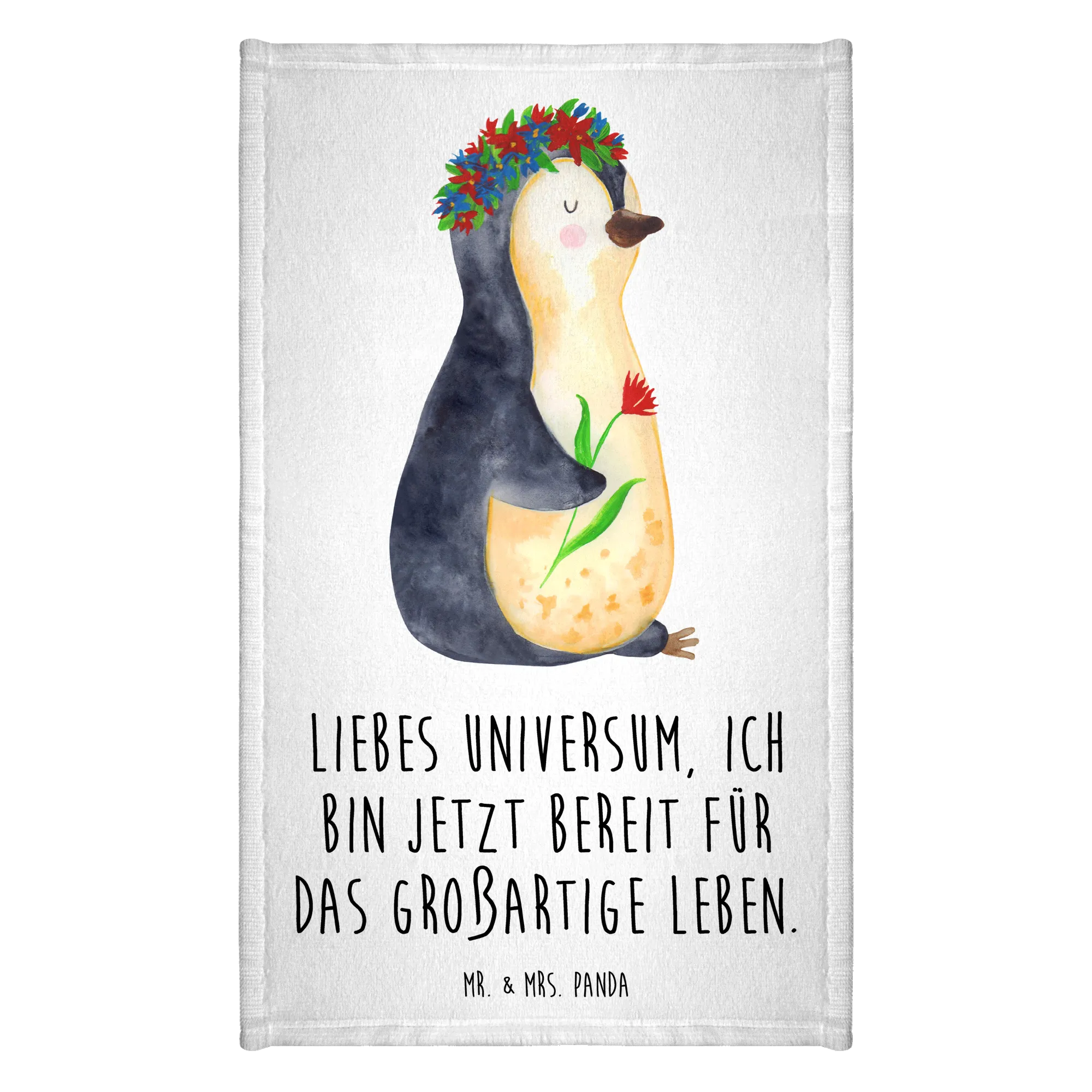Das Gästetuch mit dem süßen Pinguin Blumenkranz von Mr. & Mrs. Panda ist das perfekte Geschenk für jeden Anlass. Ob für das eigene Badezimmer oder als liebevolles Präsent für Freunde und Familie, dieses Handtuch vereint praktische Verwendung mit einem niedlichen Design, das garantiert für gute Laune sorgt.