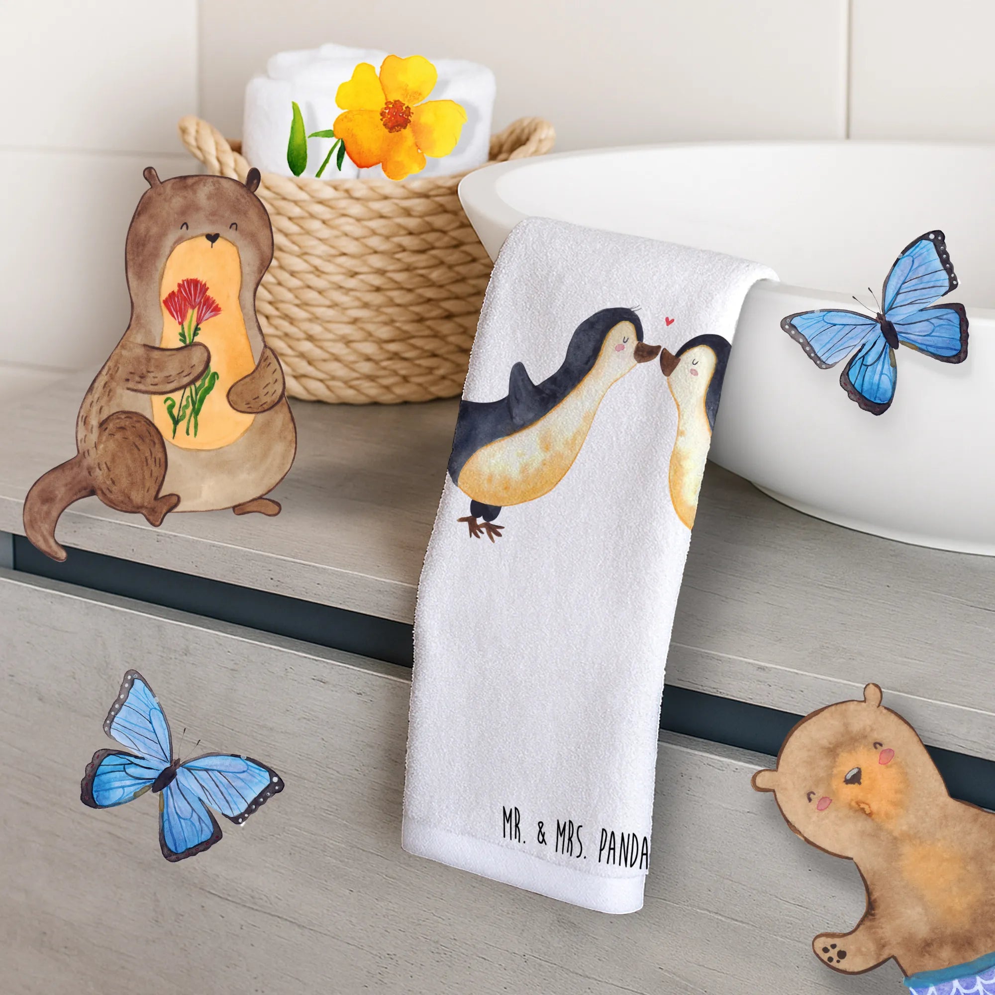 Mit dem Gästehandtuch „Pinguin Liebe" schenkst du ein Stück Zuneigung, das im Alltag auffällt. Ein kleines Detail mit großer Wirkung – von Mr. & Mrs. Panda.