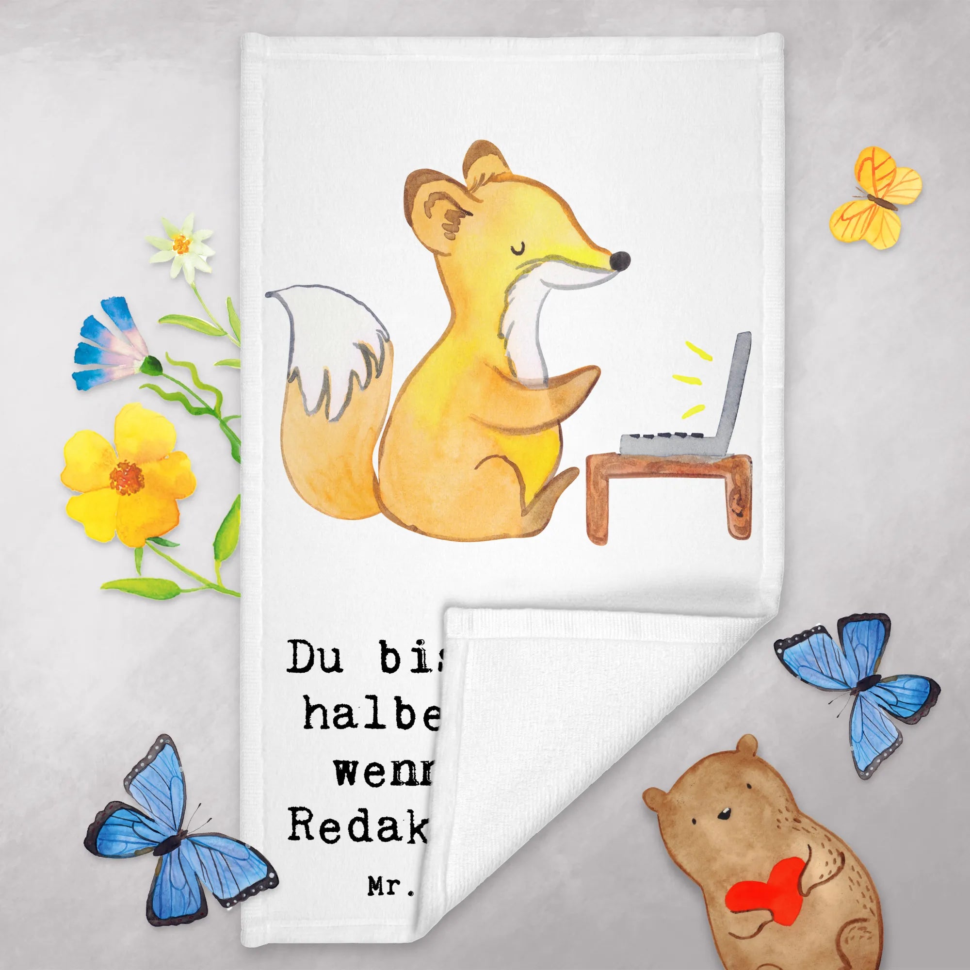 Dieses flauschige Handtuch aus hochwertiger Baumwollmischung bringt Farbe in jedes Badezimmer und sorgt dafür, dass sich deine Gäste sofort wohlfühlen. Der süße Fuchs, der an einer Schreibmaschine sitzt, symbolisiert die Leidenschaft der Redakteure und wird jeden, der in der Redaktion arbeitet, zum Schmunzeln bringen.
