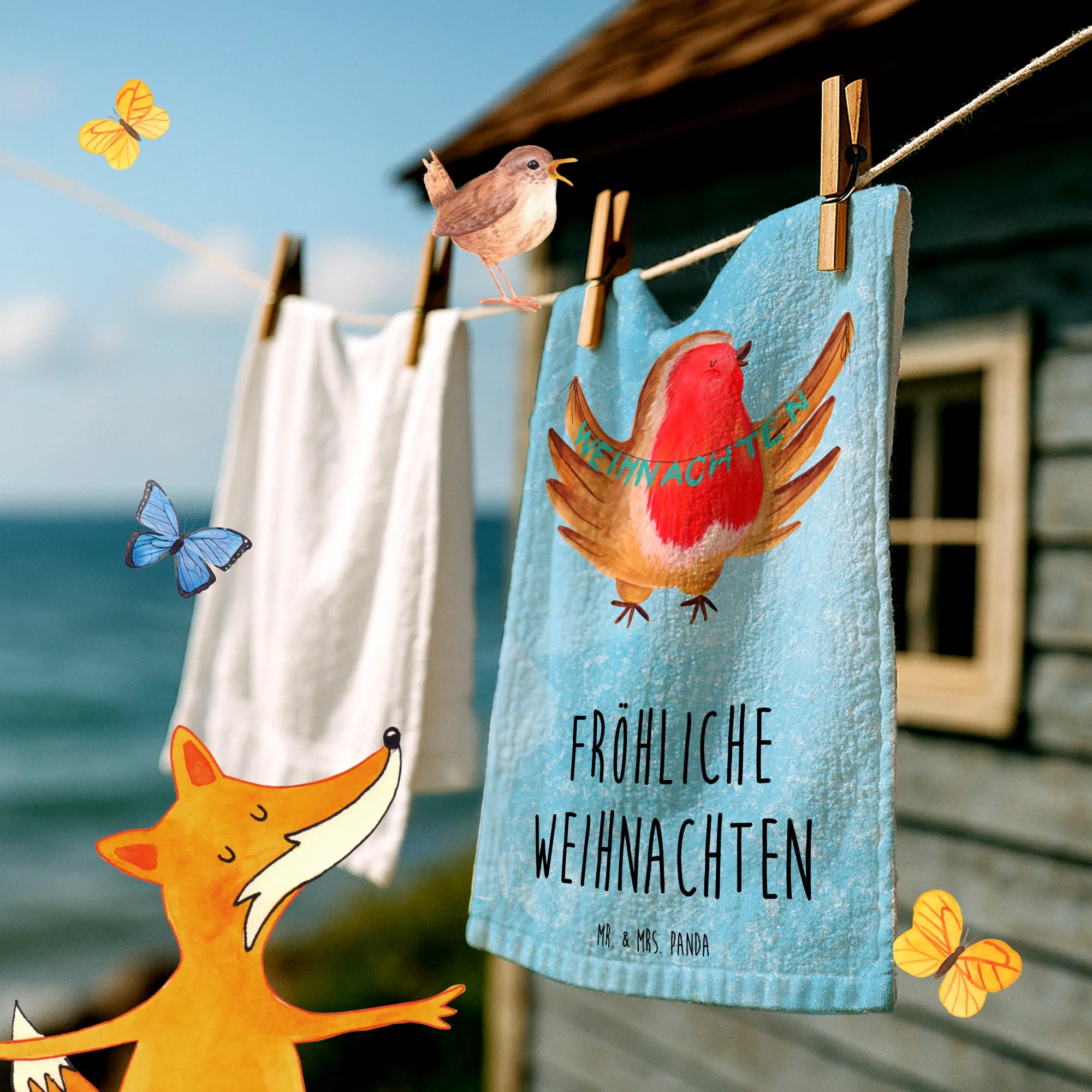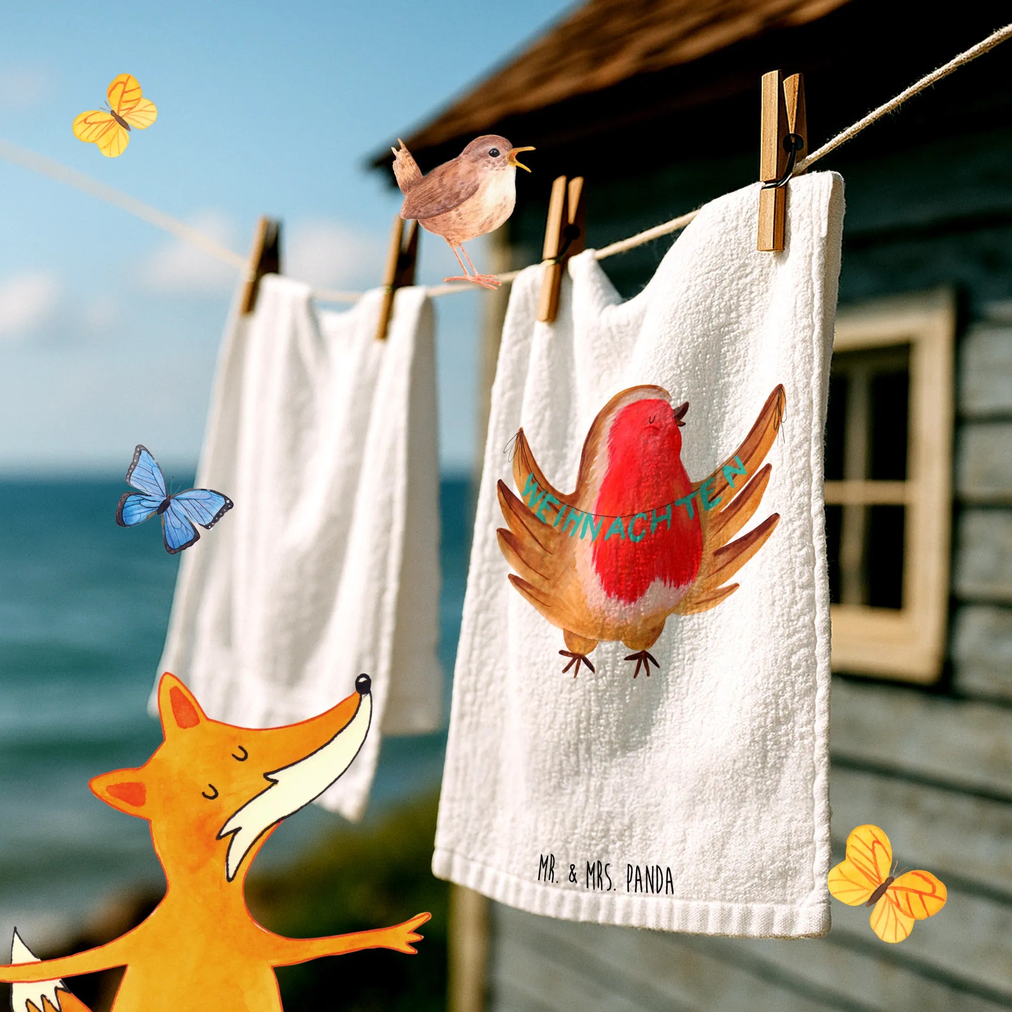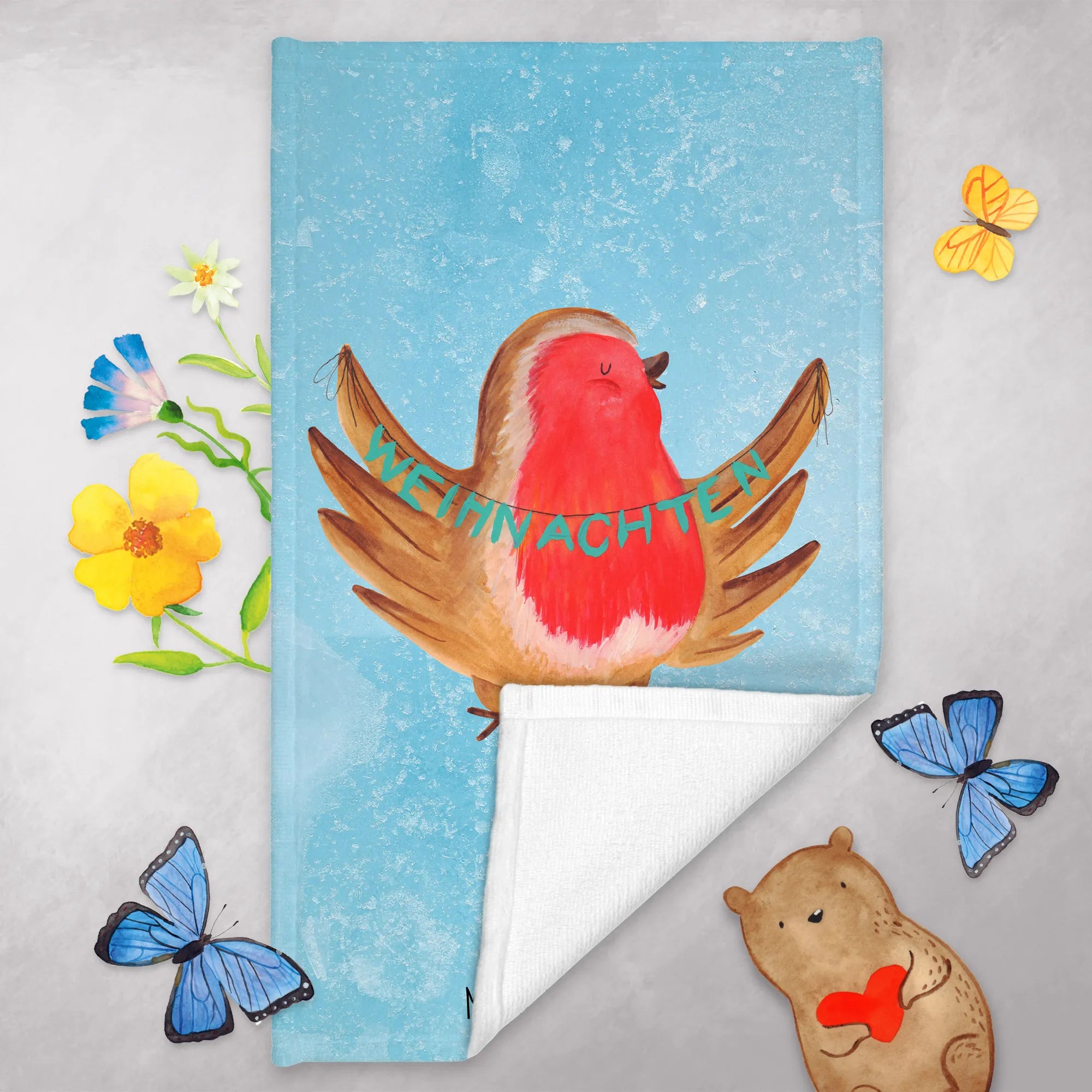 Weihnachten steht vor der Tür und was gibt es Schöneres, als seinen Gästen mit einem wundervollen Gästehandtuch ein Lächeln ins Gesicht zu zaubern? Das Gäste Handtuch mit dem süßen Rotkehlchen-Motiv von Mr. & Mrs. Panda ist das perfekte Geschenk für die Vorweihnachtszeit.