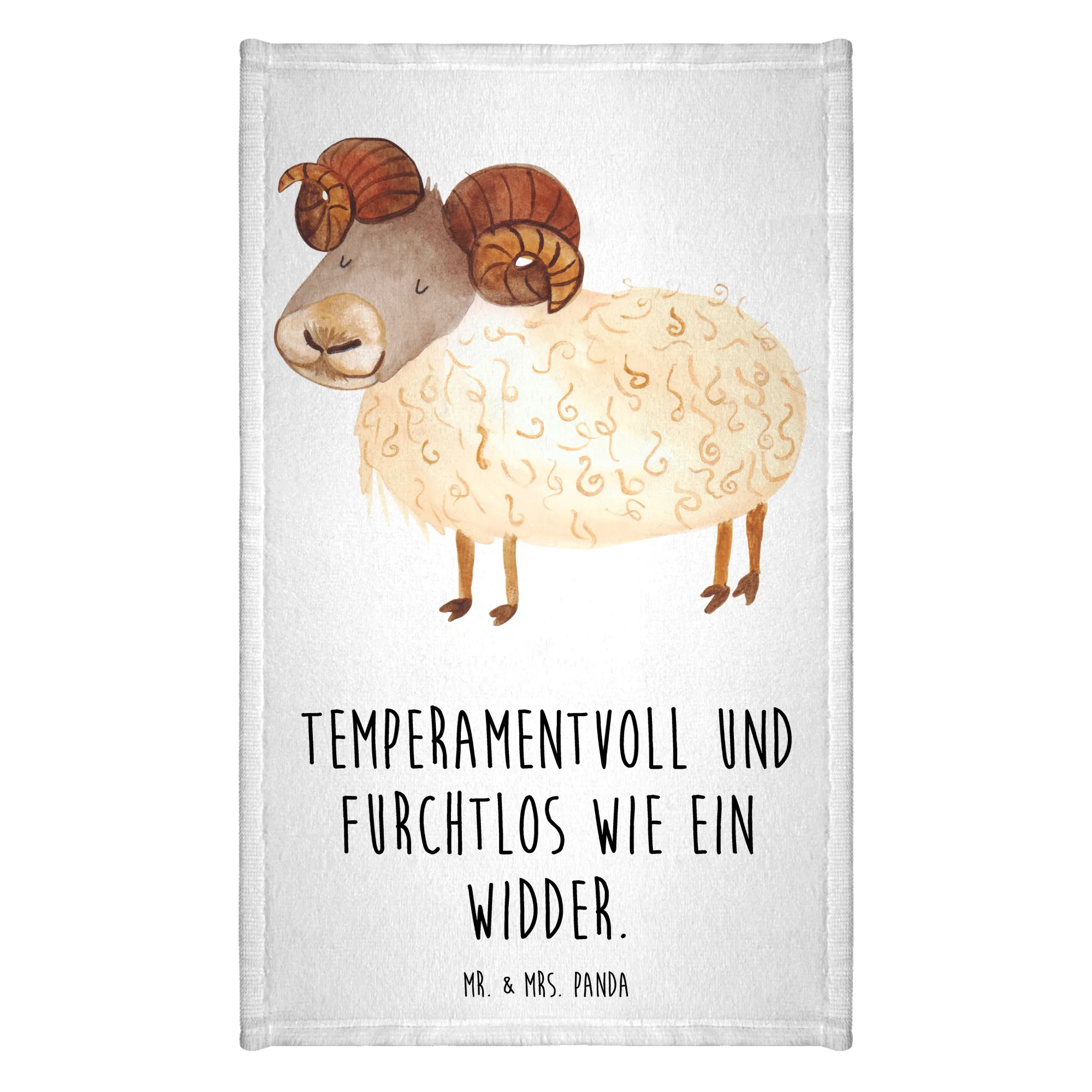 Das Gästehandtuch im wunderschönen Design des Sternzeichens Widder von Mr. & Mrs. Panda ist das perfekte Geschenk für alle, die im März oder April geboren sind und die kleinen Geheimnisse ihrer Sternzeichen lieben. Dieses hochwertige Gästehandtuch mit einer Größe von 300 mm x 500 mm ist nicht nur praktisch, sondern auch ein farbenfroher Blickfang in jedem Badezimmer. Die flauschige Baumwollmischung sorgt dafür, dass es extra weich und angenehm auf der Haut ist.