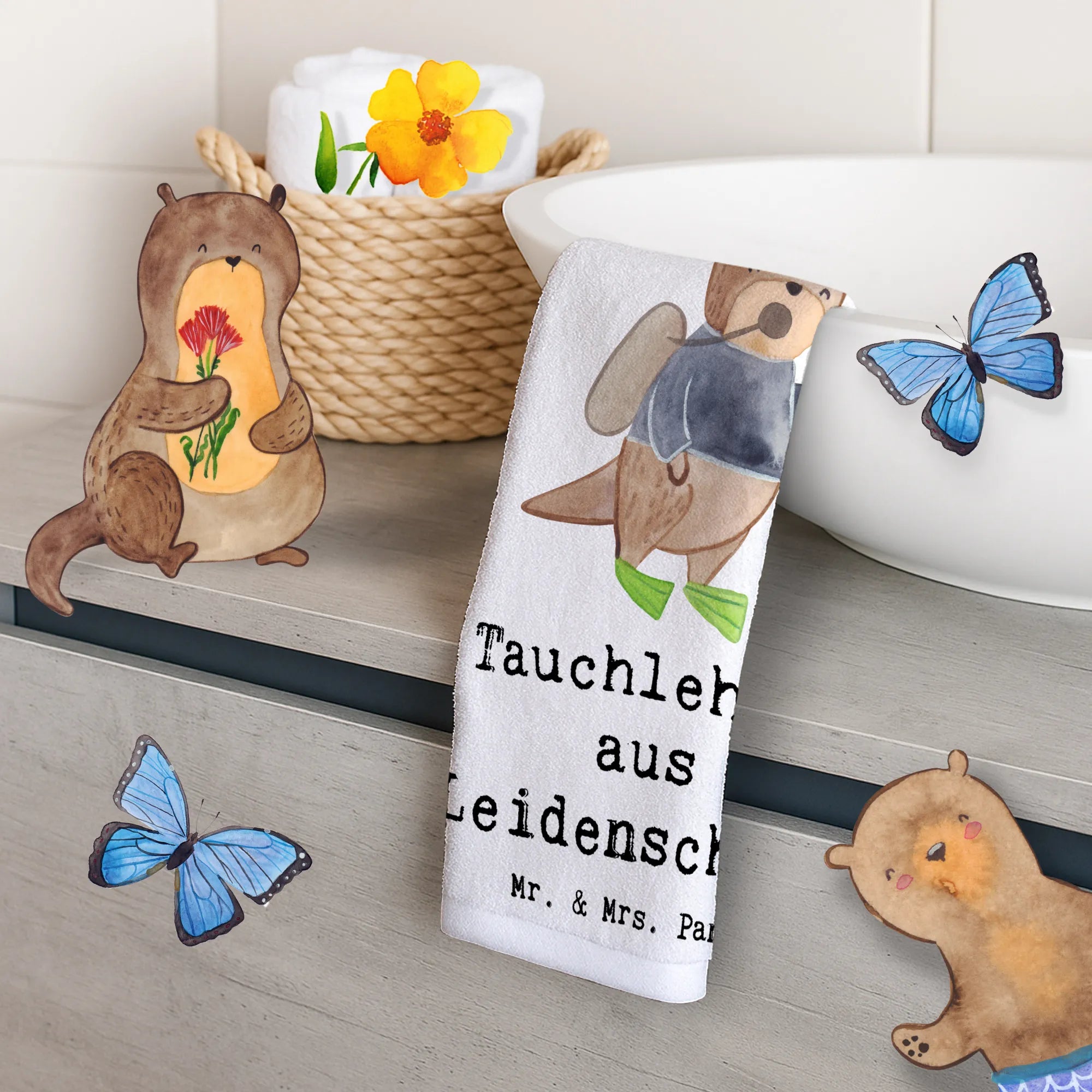 Das perfekte Geschenk für alle Tauchlehrer oder Taucher! Unser wunderschönes Gästehandtuch "Tauchlehrer aus Leidenschaft" aus der Berufe-Kollektion von Mr. & Mrs. Panda ist mehr als nur ein Handtuch – es ist ein Ausdruck von Wertschätzung und Dankbarkeit. Mit seinem süßen Motiv eines Otters in einem Neoprenanzug und einer Sauerstoffflasche wird es jedes Badezimmer aufhellen und zeigt, wie sehr du den Beruf oder das Hobby eines Tauchlehrers schätzt.