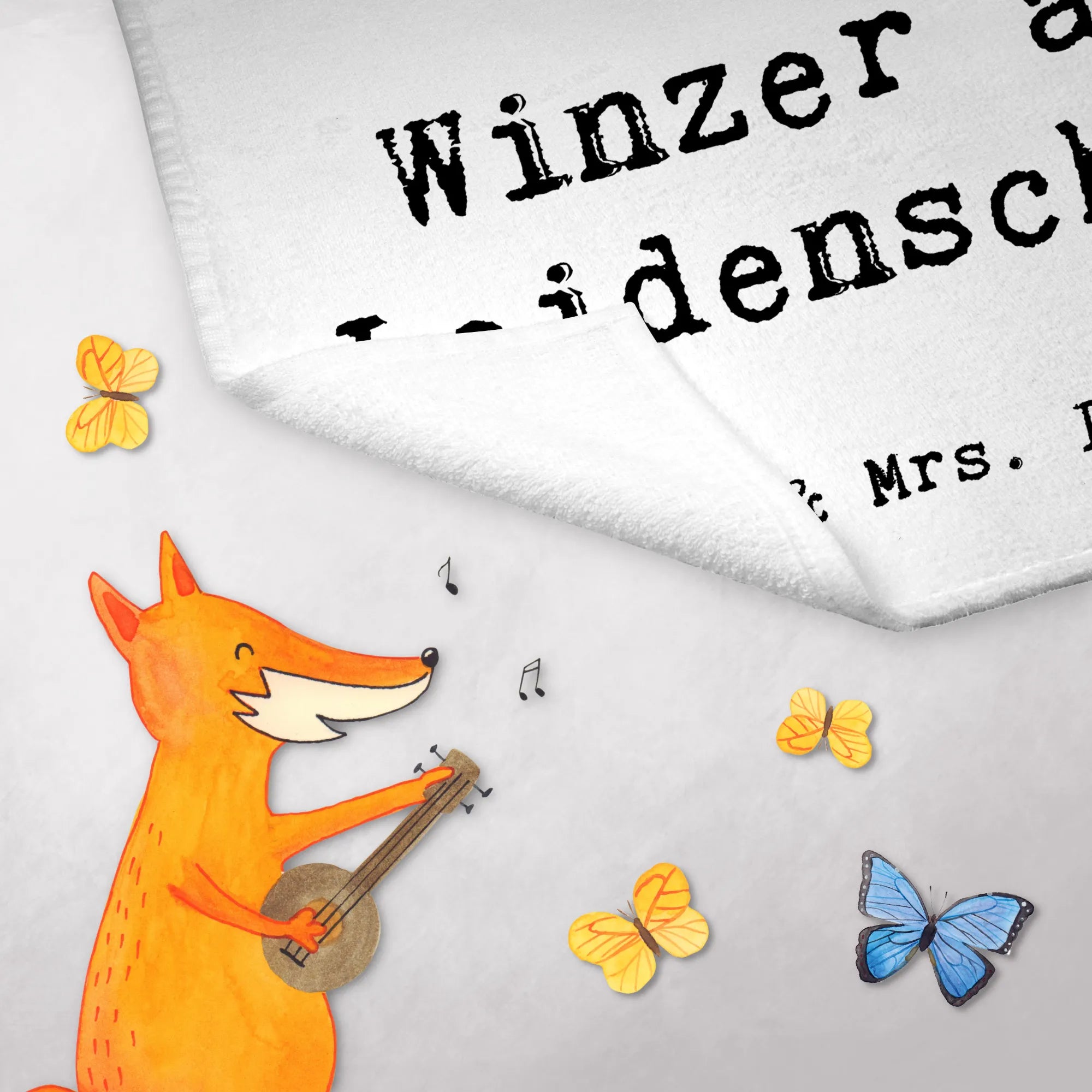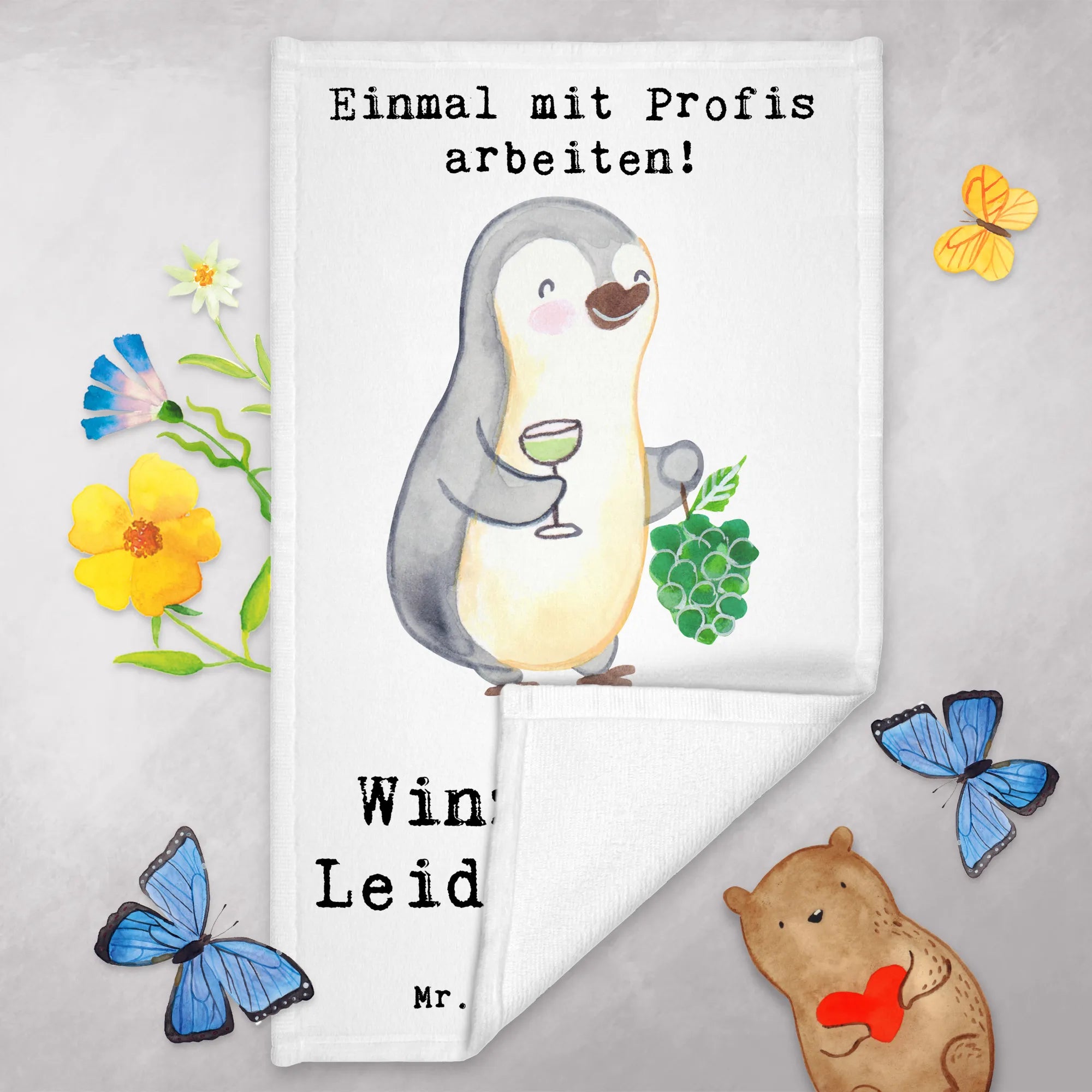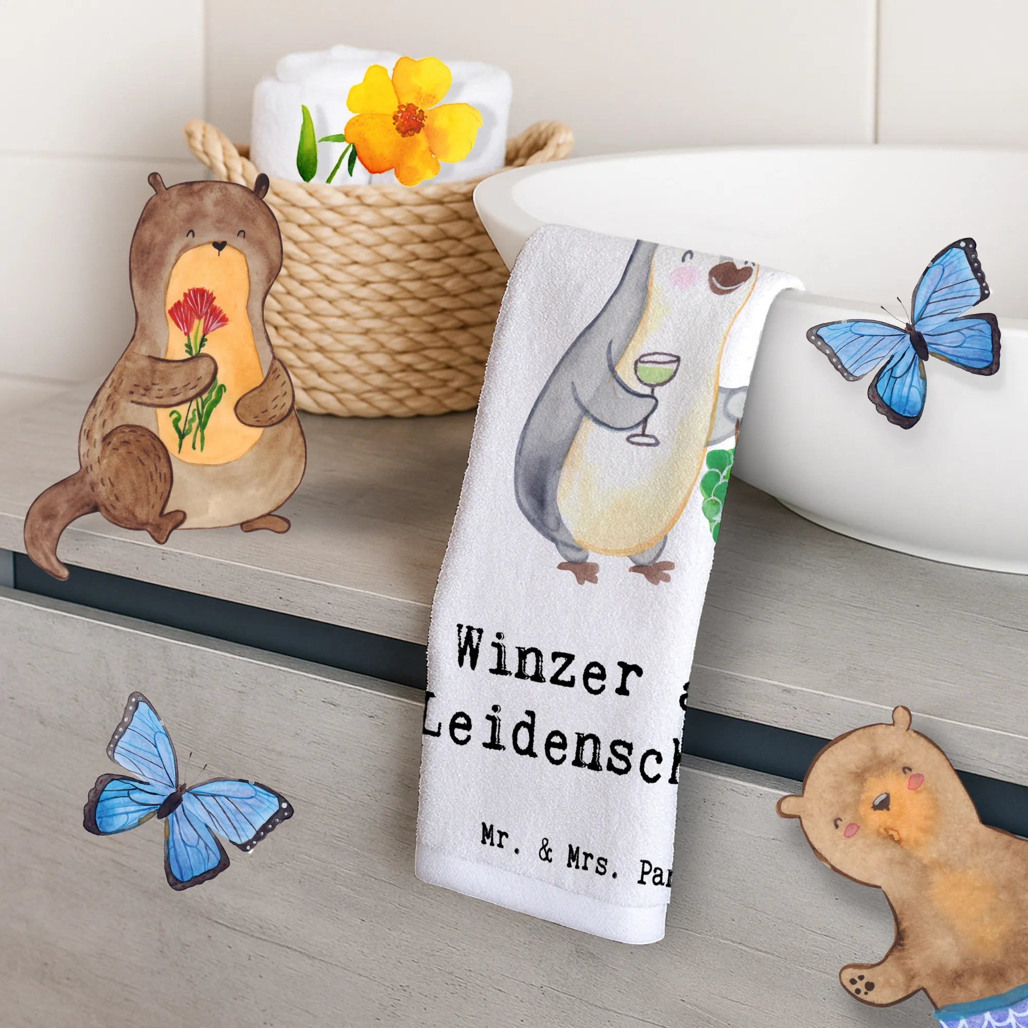 Das Gästetuch "Winzer aus Leidenschaft" aus der exklusiven Berufe-Kollektion von Mr. & Mrs. Panda ist das perfekte Geschenk für alle Weinliebhaber und Winzer. Mit einem fröhlichen Pinguin, der Weintrauben in einer Hand hält und ein gefülltes Glas Wein in der anderen, zieht dieses hochwertig bedruckte Handtuch alle Blicke auf sich.