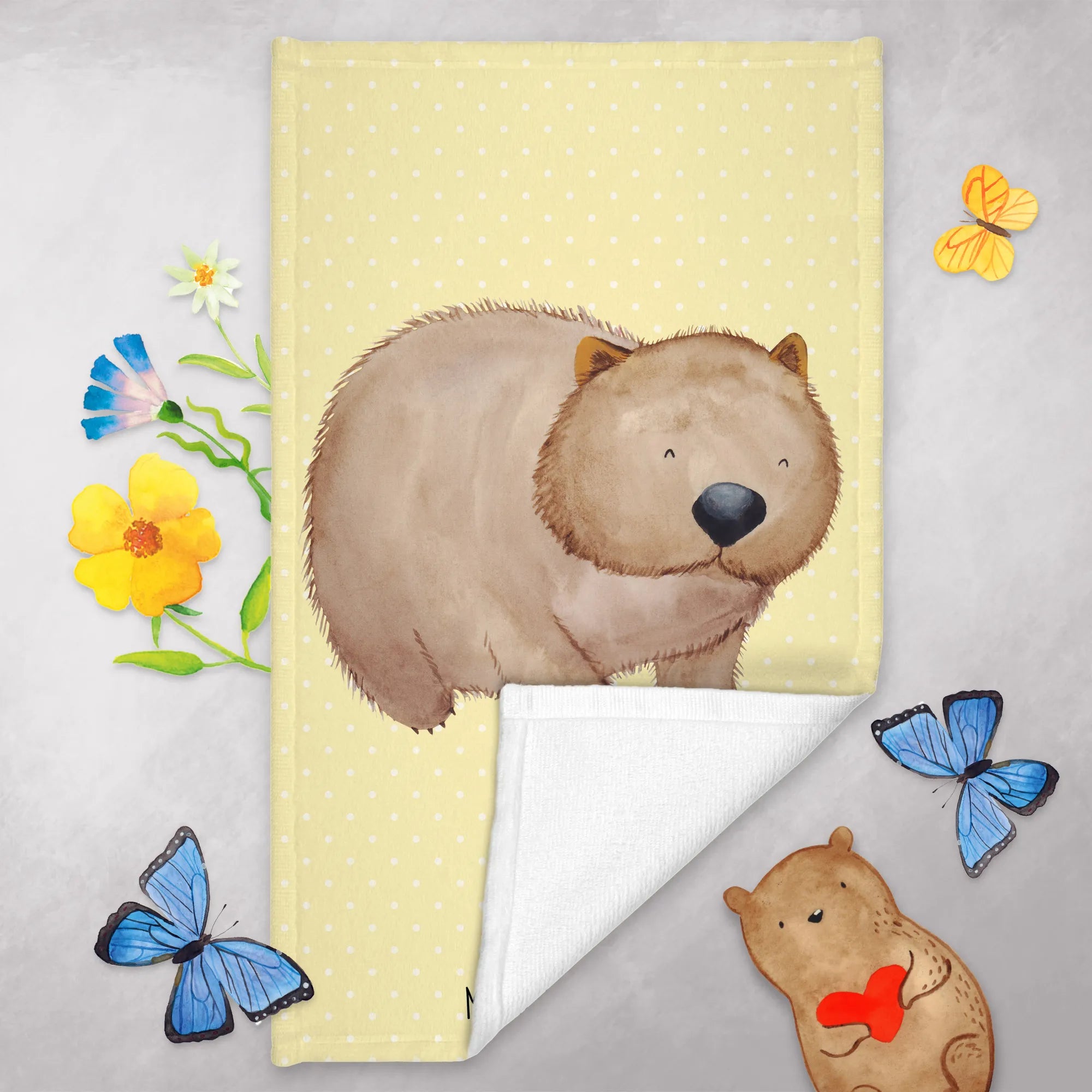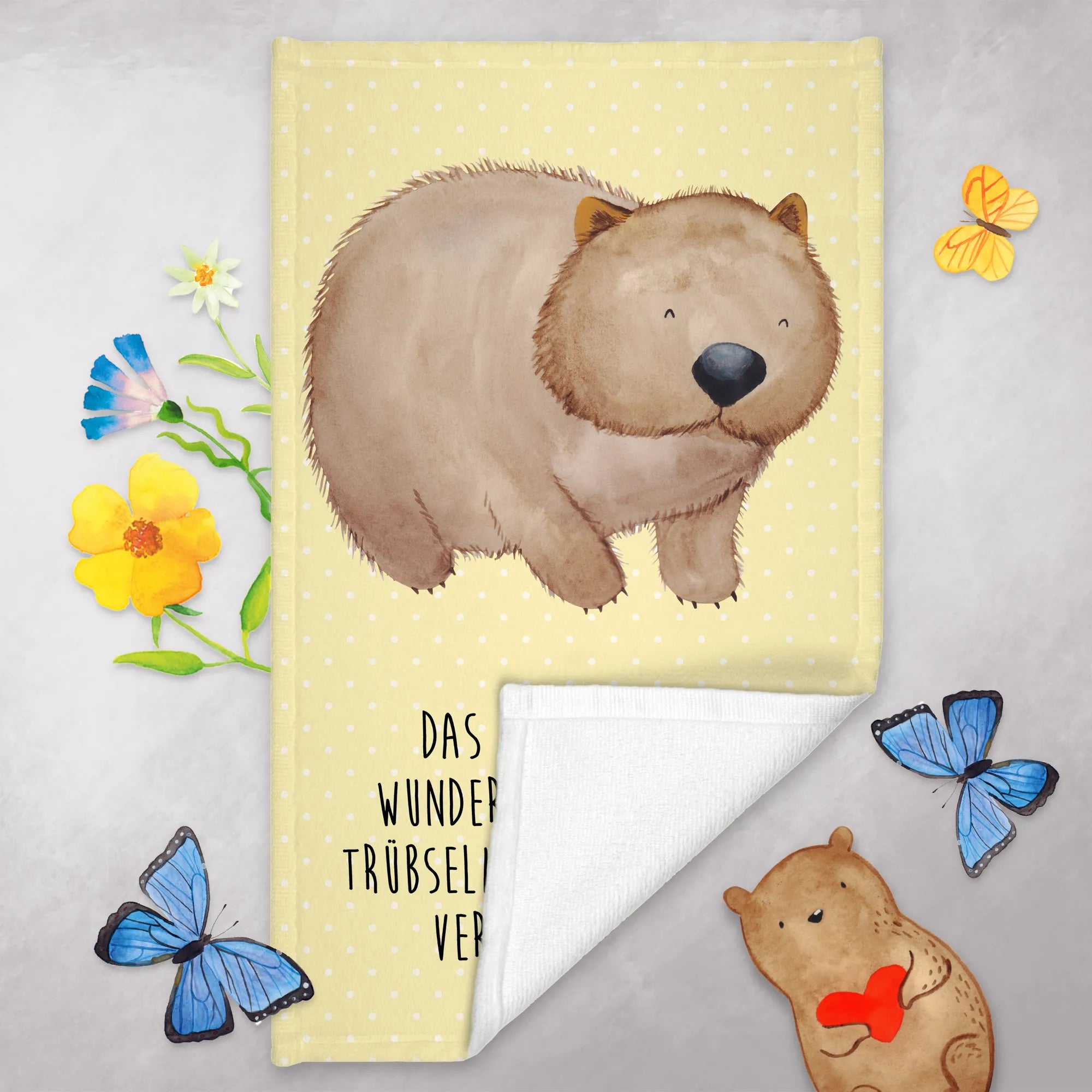 Handtuch Wombat - mit Spruch - Gelb Pastell