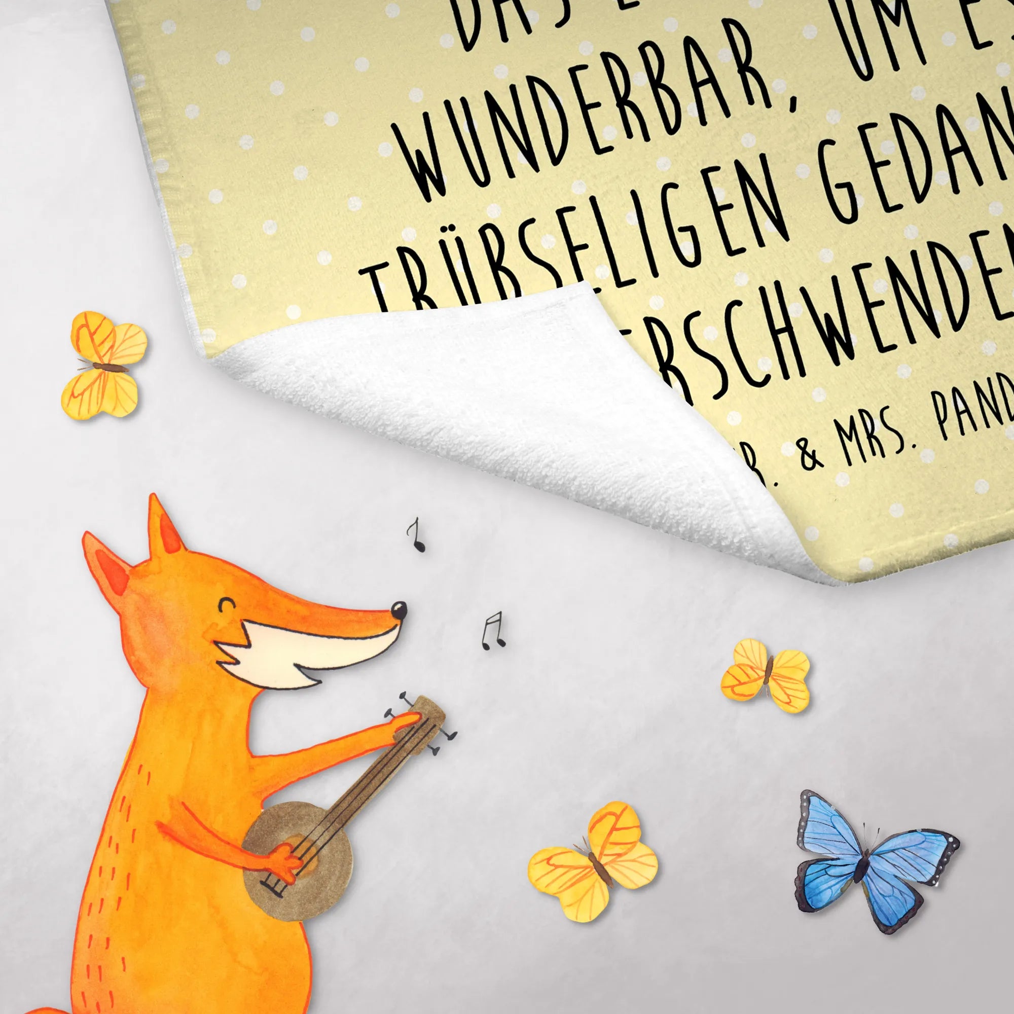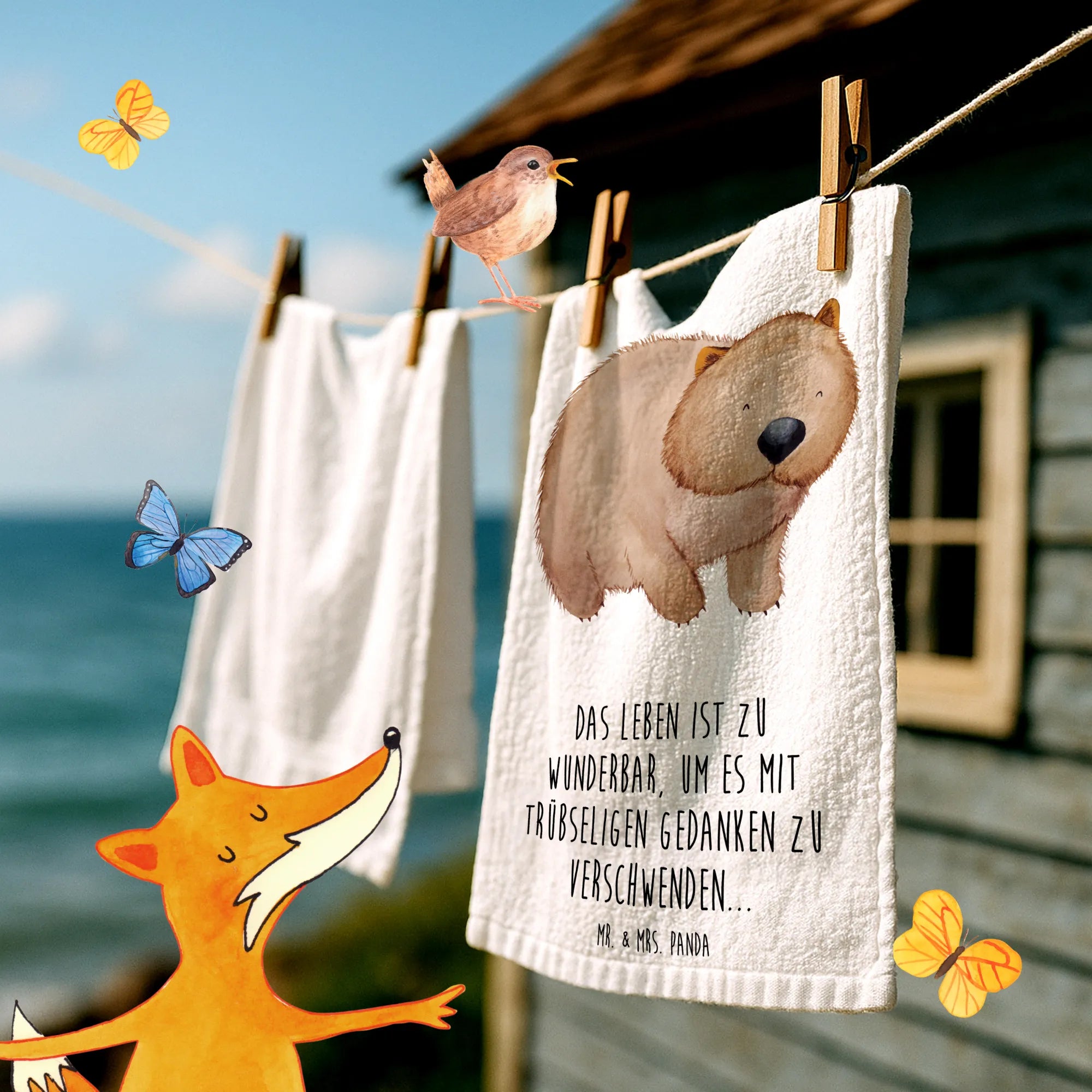 Die Botschaft "Das Leben ist zu wunderbar, um es mit trübseligen Gedanken zu verschwenden..." ist treffend und positiv. Mit diesem Handtuch bringst du nicht nur einen neuen Hingucker ins Badezimmer, sondern unterstützt auch eine positive Einstellung. Die Small World Kollektion umfasst viele weitere niedliche Motive, die das Herz erwärmen. Lass dich von der bunten Vielfalt inspirieren und kreiere eine Wohlfühloase in deinem Zuhause mit diesen zauberhaften Produkten von Mr. & Mrs. Panda.